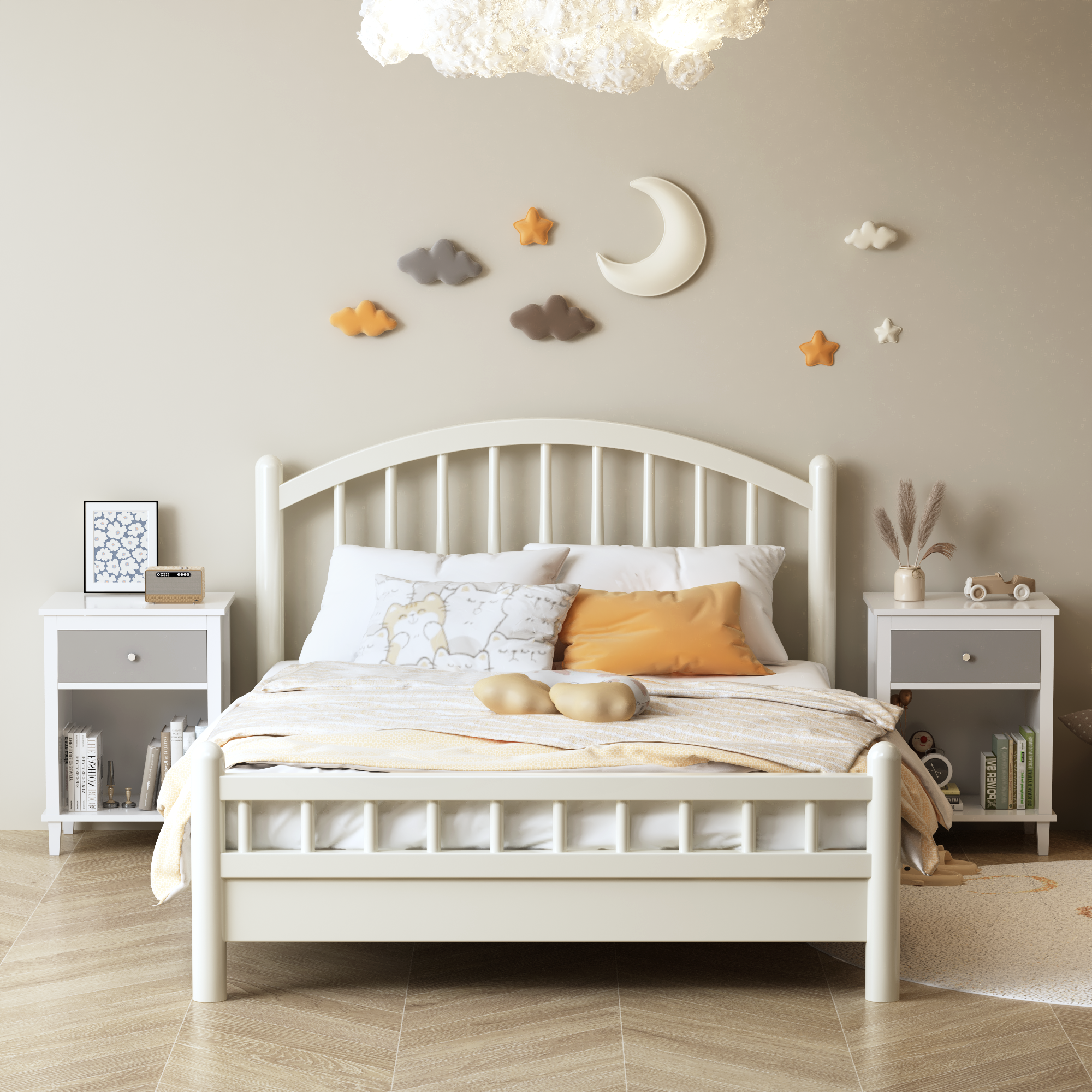 Gray+Silver handle wooden bedside table with drawers and storage cabinets