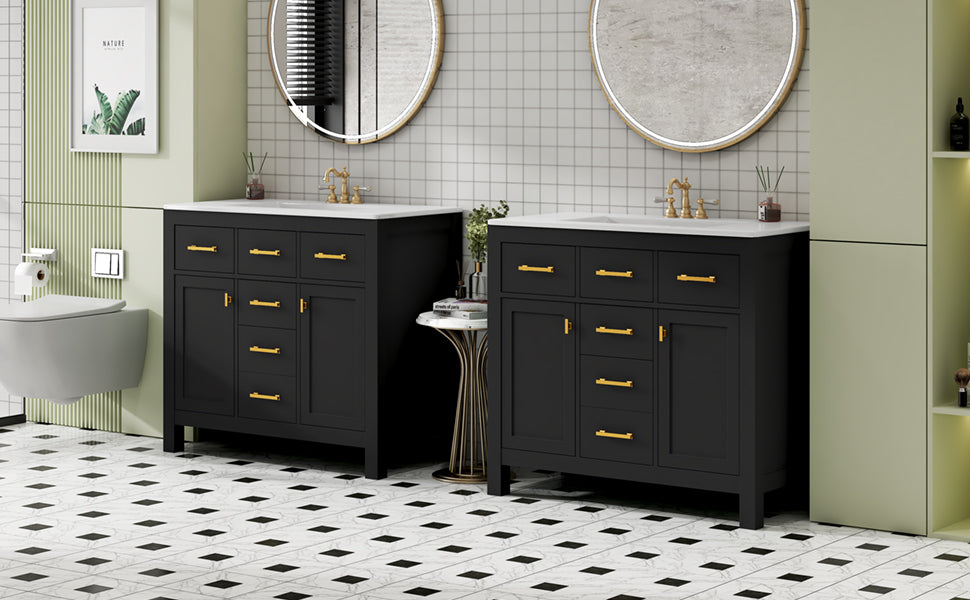 - [Modern Minimalist Style] This bathroom vanity has a simple and clean design.This sink is made of ceramic and is easy to clean. The cabinet features a traditional shaker style design with a painted finish to bring a modern and luxurious look to your bathroom. Complements a variety of bathroom styles!