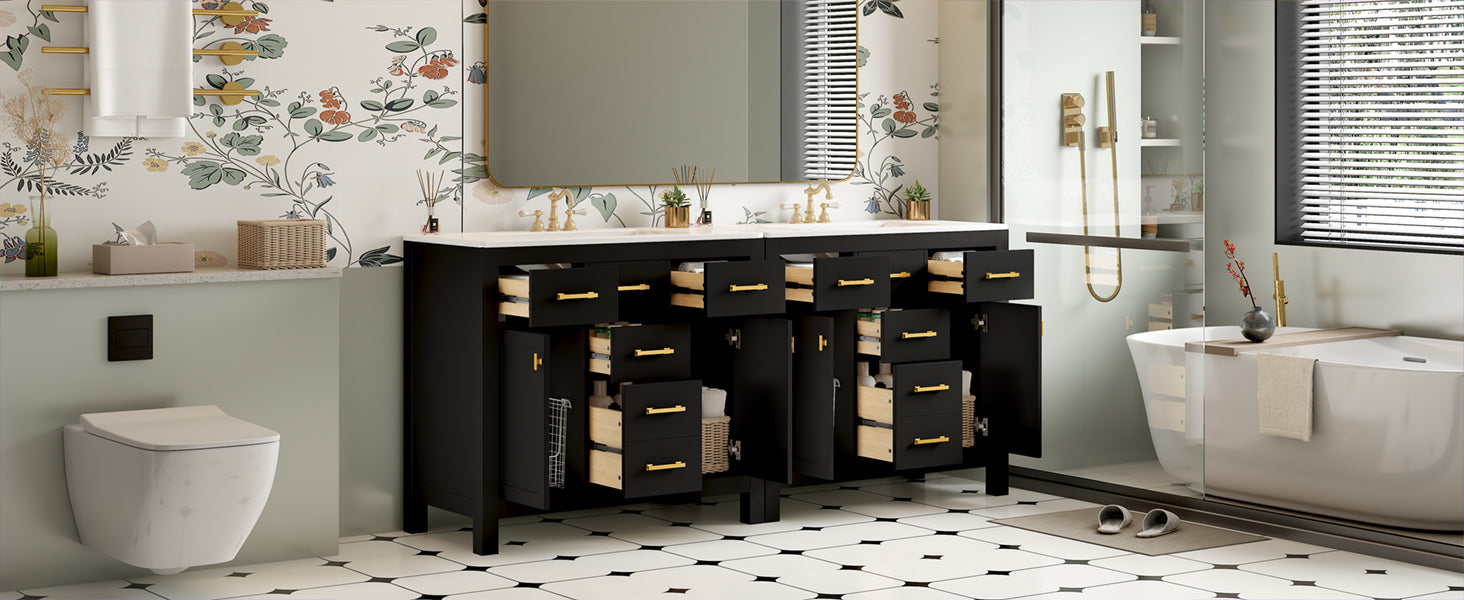 - [Perfect Storage Solution for Bathroom] Considering the humid environment of the bathroom, this bathroom cabinet comes with 4 large cabinets with soft closing doors. You can store your bathroom favorites inside, protecting them from water damage and dust. In addition, we have also designed 4 drawers of different sizes so that you can store different items in an orderly manner according to their size.