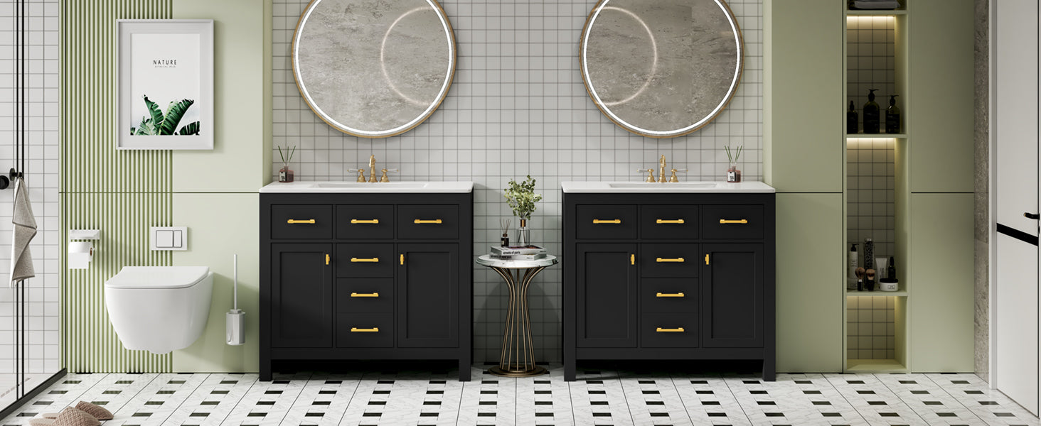 - [High Quality Hardware]The doors are equipped with high quality adjustable hinges that can prevent the doors from slamming shut and allows them to close with gentle automation. The exquisite handle not only has good quality but also makes your bathroom look very elegant.