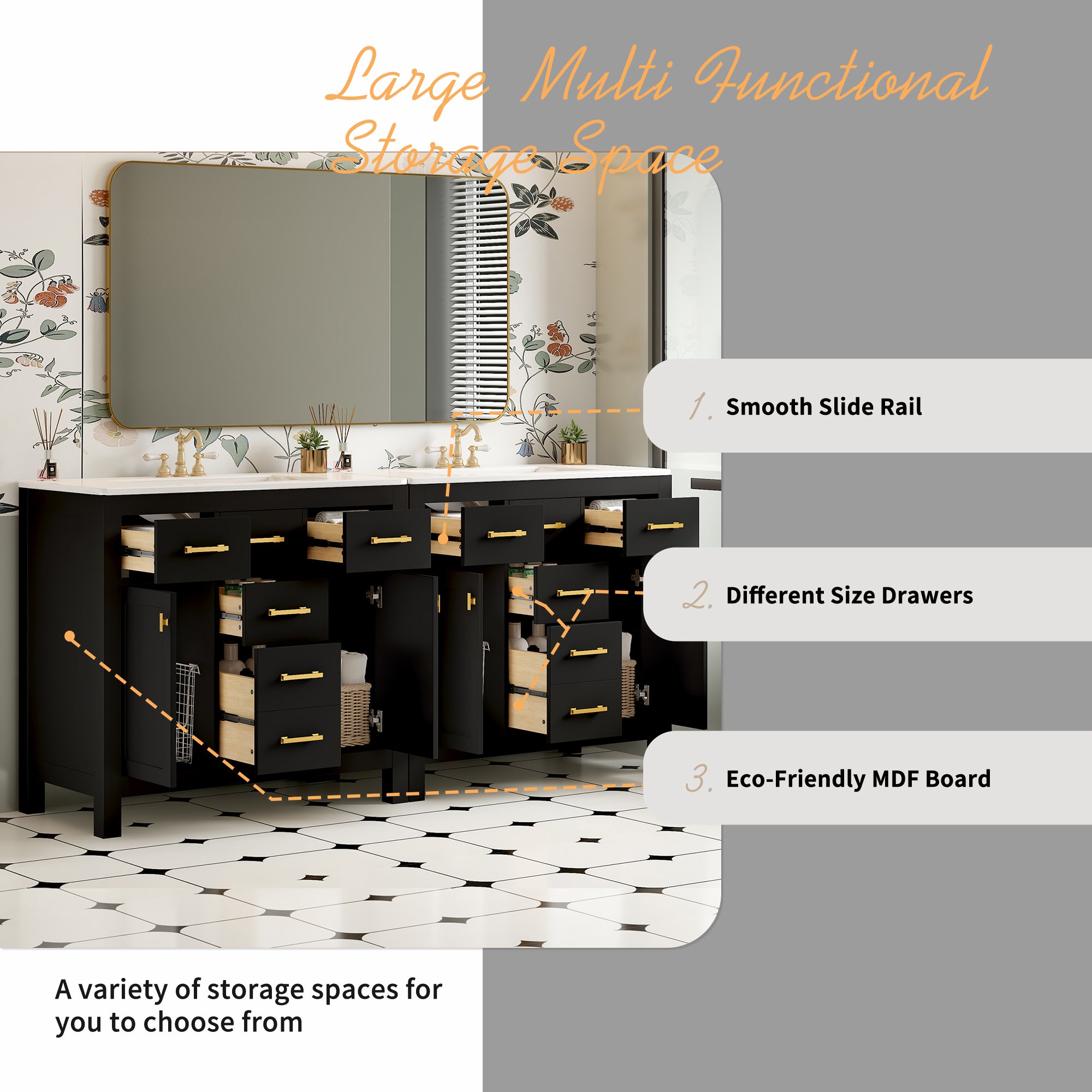 72 "Solid Wood Frame Ceramic Sink Bathroom Dressing Table set(black)