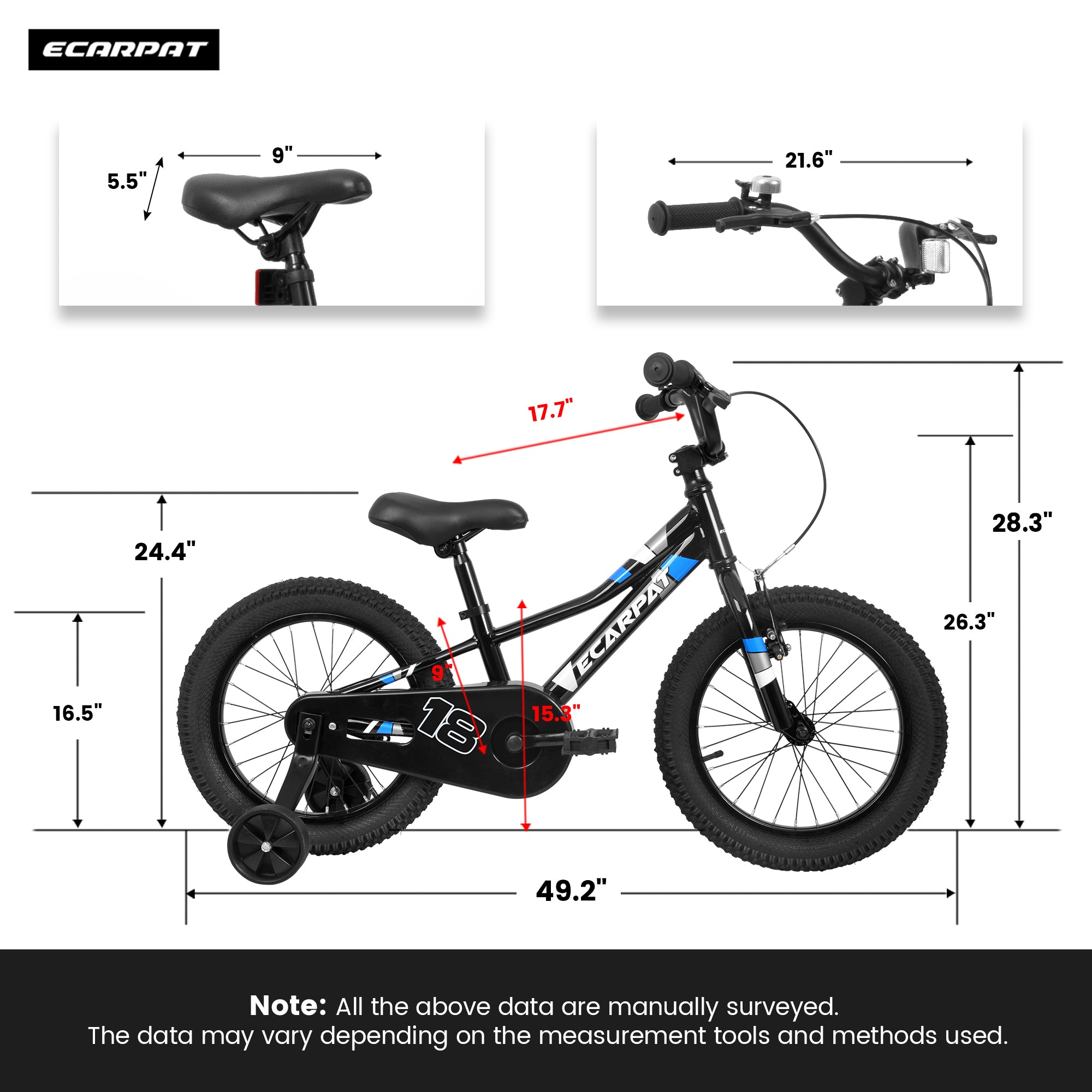 · This bicycle is specially designed for children aged 3 to 5 or those with a height of 3'1" to 3'6" (95-110 cm). Its 18× 2.35-inch tire size and overall frame ratio are perfectly matched with the physical characteristics of children in this age group, allowing them to control it easily while riding and have their feet touch the ground steadily. Providing them with sufficient security makes it an ideal companion for children to embark on a cycling journey and accompany them through their happy childhood.