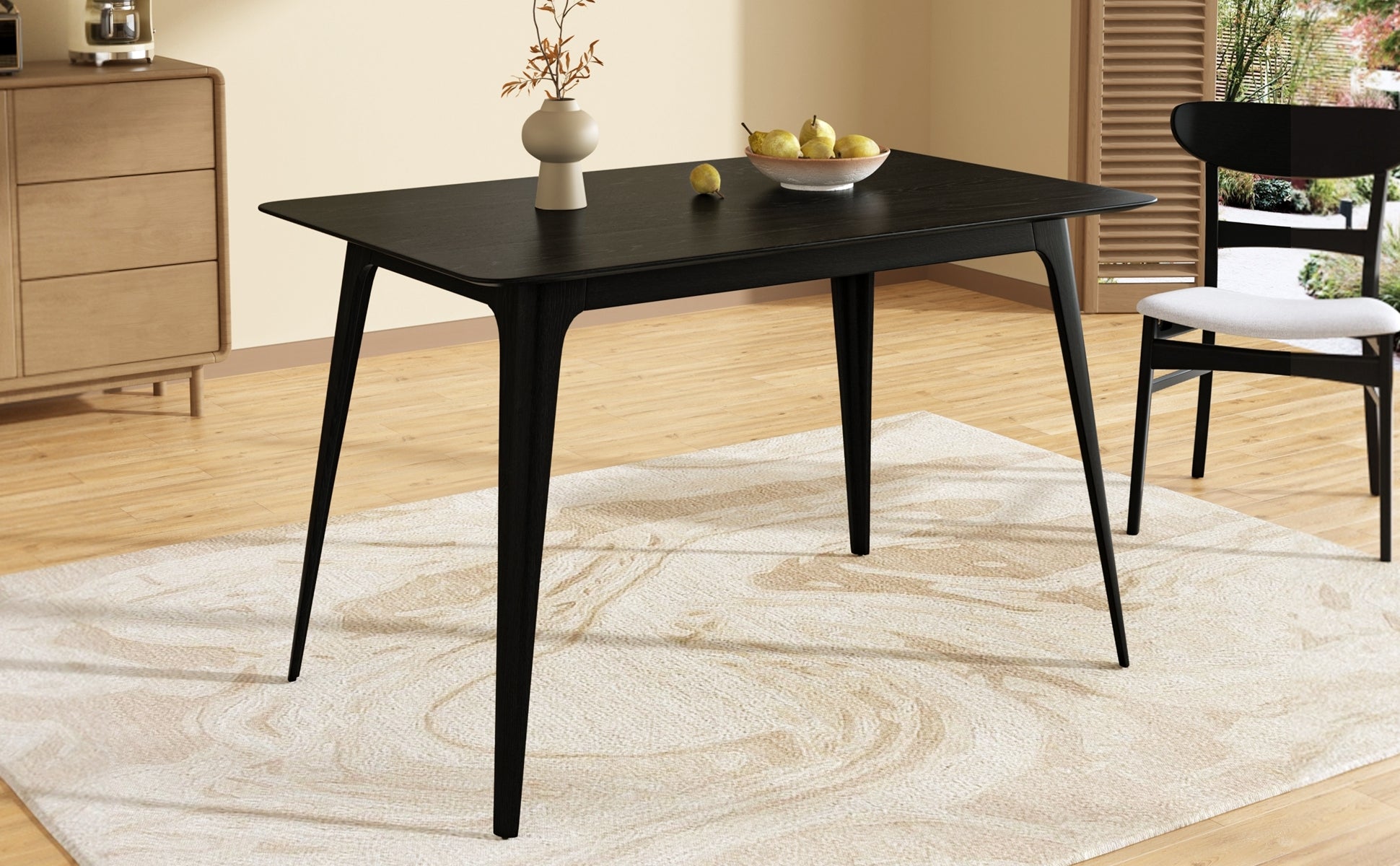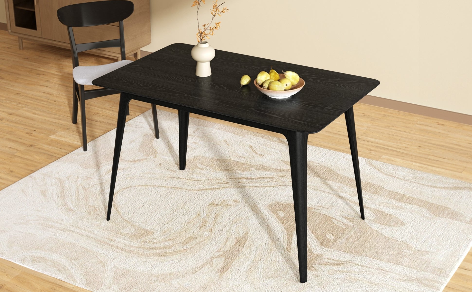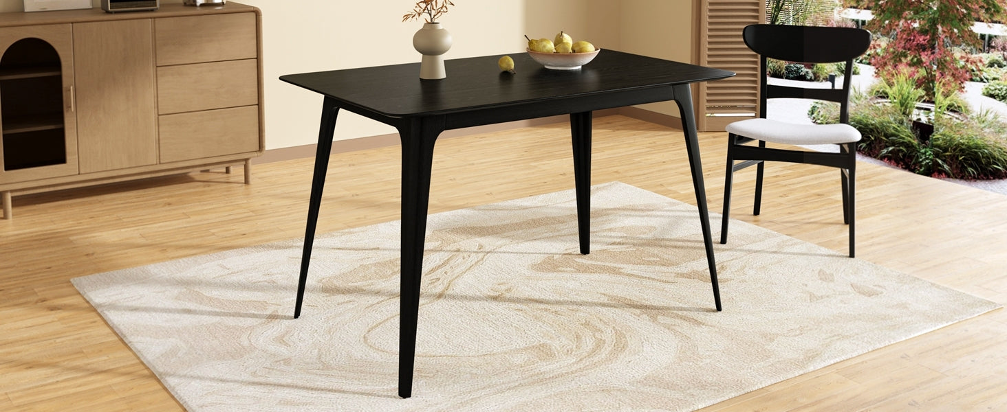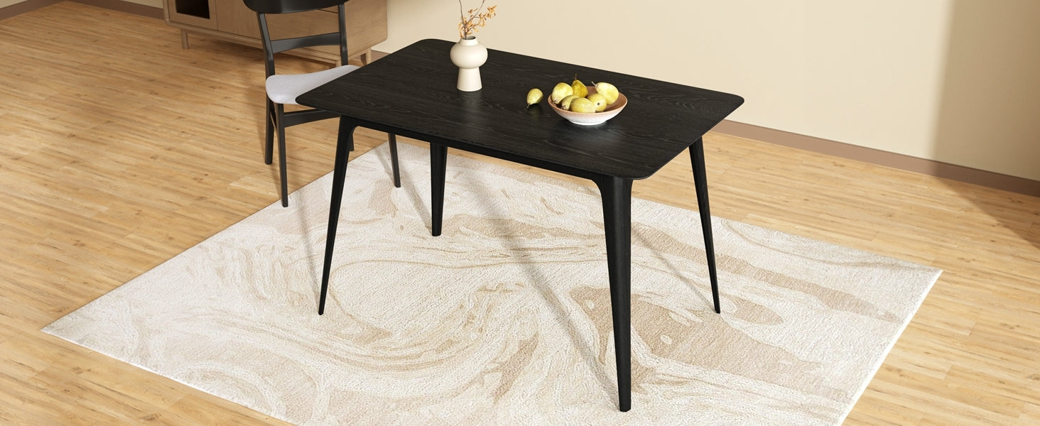 MID-CENTURY MODERN STYLE: With iconic splayed legs and a stunning wood frame, this dining table uses new materials to reimagine a traditional design. RUBBERWOOD FRAME: This sustainable hardwood features a beautiful natural-grain look and outstanding durability. FAUX WOOD TABLETOP: This wood alternative is engineered from real wood, heat, pressure, and resin, giving the appearance of wood without the high upkeep.