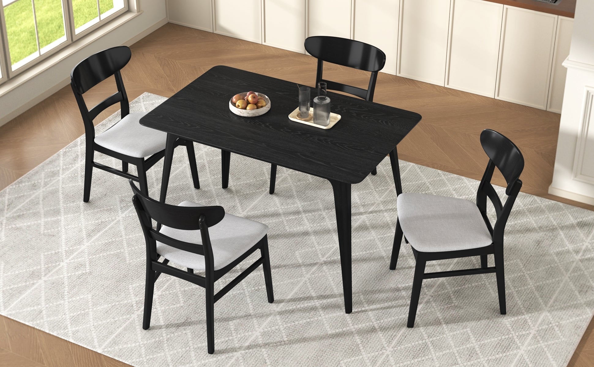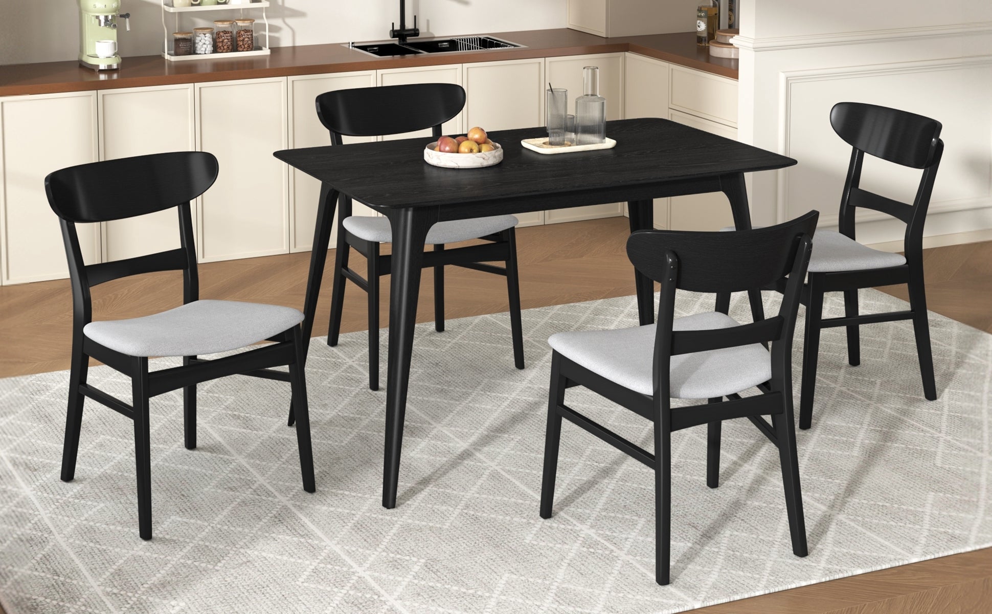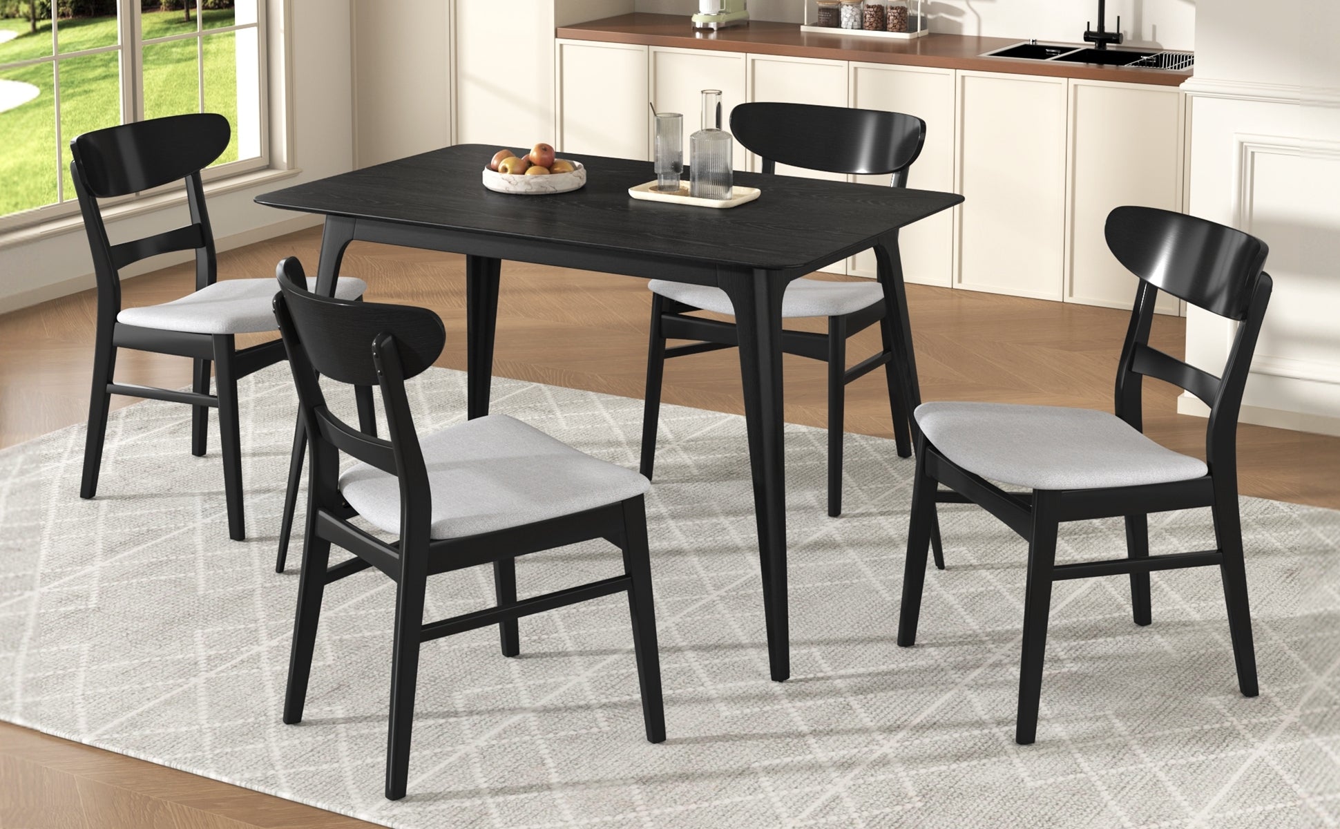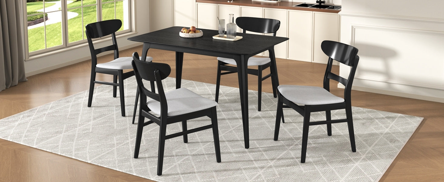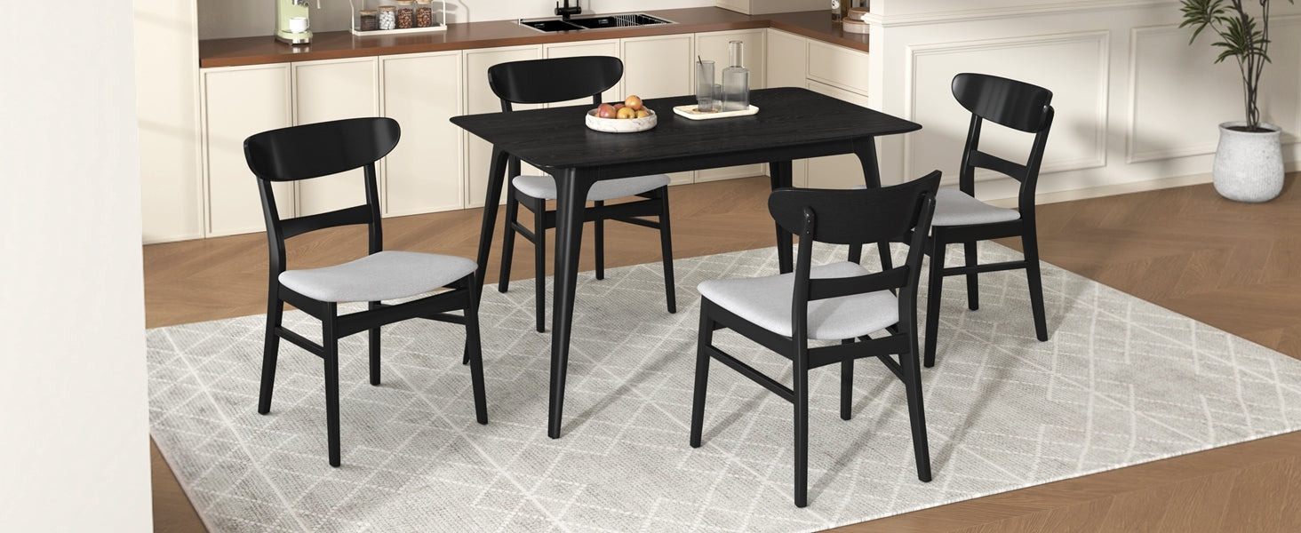 Mid-Century 5-Piece Dining Set Rubberwood & Upholstered
