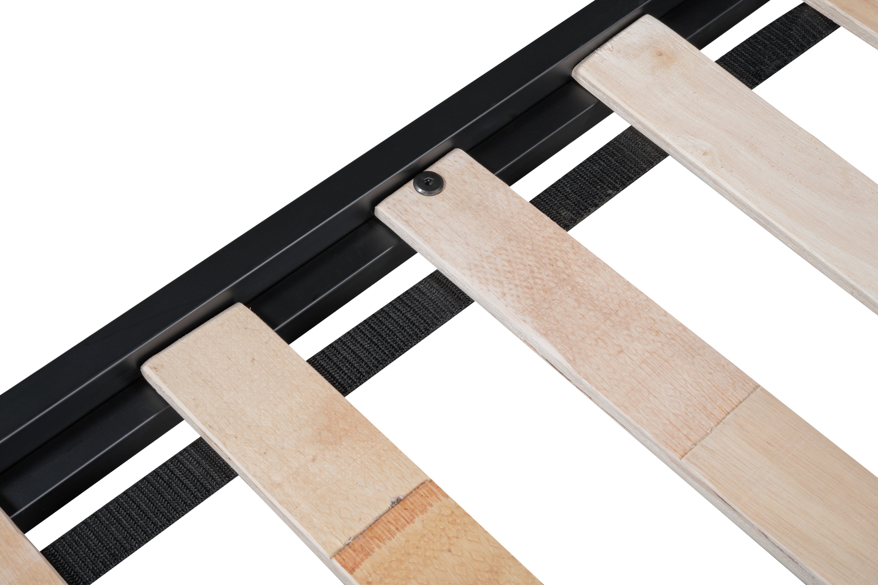 Experience the best of both worlds with our bunk bed that seamlessly blends durability and safety. The sturdy and durable metal frame, crafted from high-quality metal, serves as a fortress of strength for your bedroom. This robust framework ensures a secure and tall structure, offering a reliable foundation for a restful night's sleep. Safety is paramount with our bunk bed, featuring robust guardrails and a built-in ladder for extra security, preventing accidental falls. Successfully passing GCC (General Certificate of Conformity) tests guarantees a hazard-free and secure sleep environment, prioritizing your peace of mind. Upgrade to a whisper-quiet night's sleep with our bunk bed's noise-free wood slats with center supporting bar. The wooden slats not only enhance durability but also create a serene and noise-free atmosphere. Enjoy uninterrupted rest in a quiet sanctuary, free from the usual sounds that can disrupt your sleep. Furthermore, the combination of a low-profile design and a spacious full-size bottom bed maximizes sleeping comfort during the nighttime, making our bunk bed a comprehensive solution for a safe, durable, and peaceful sleep environment.