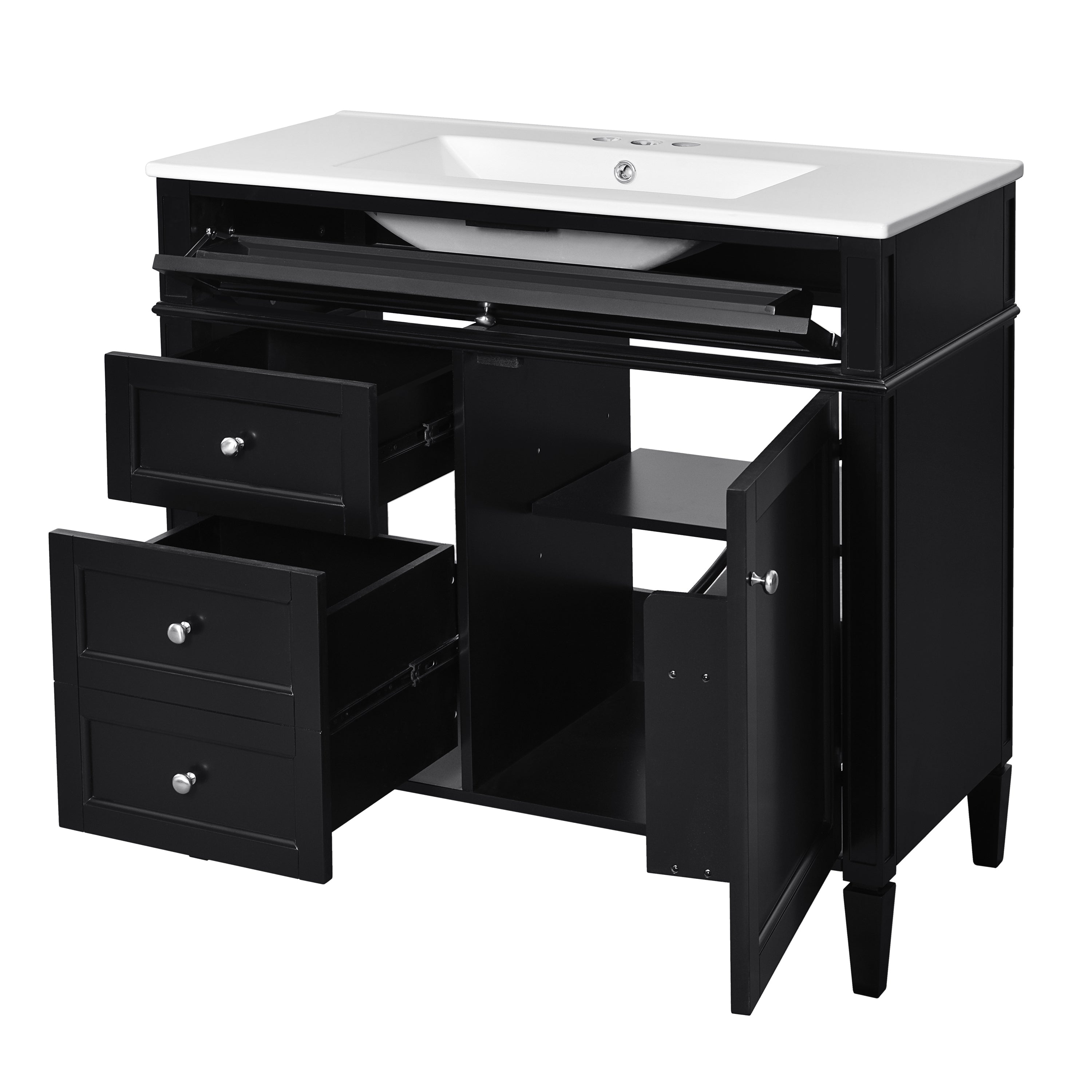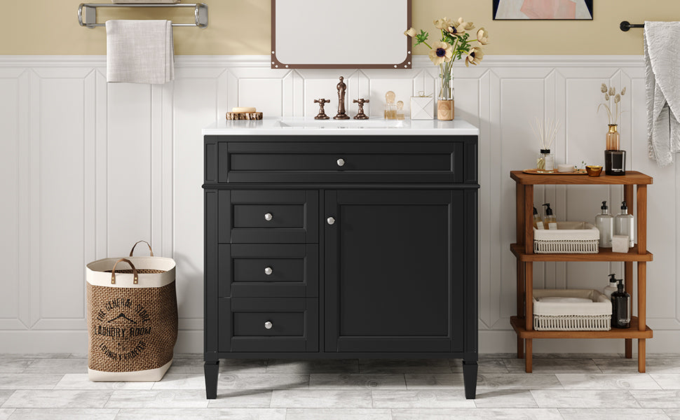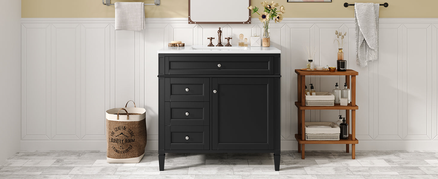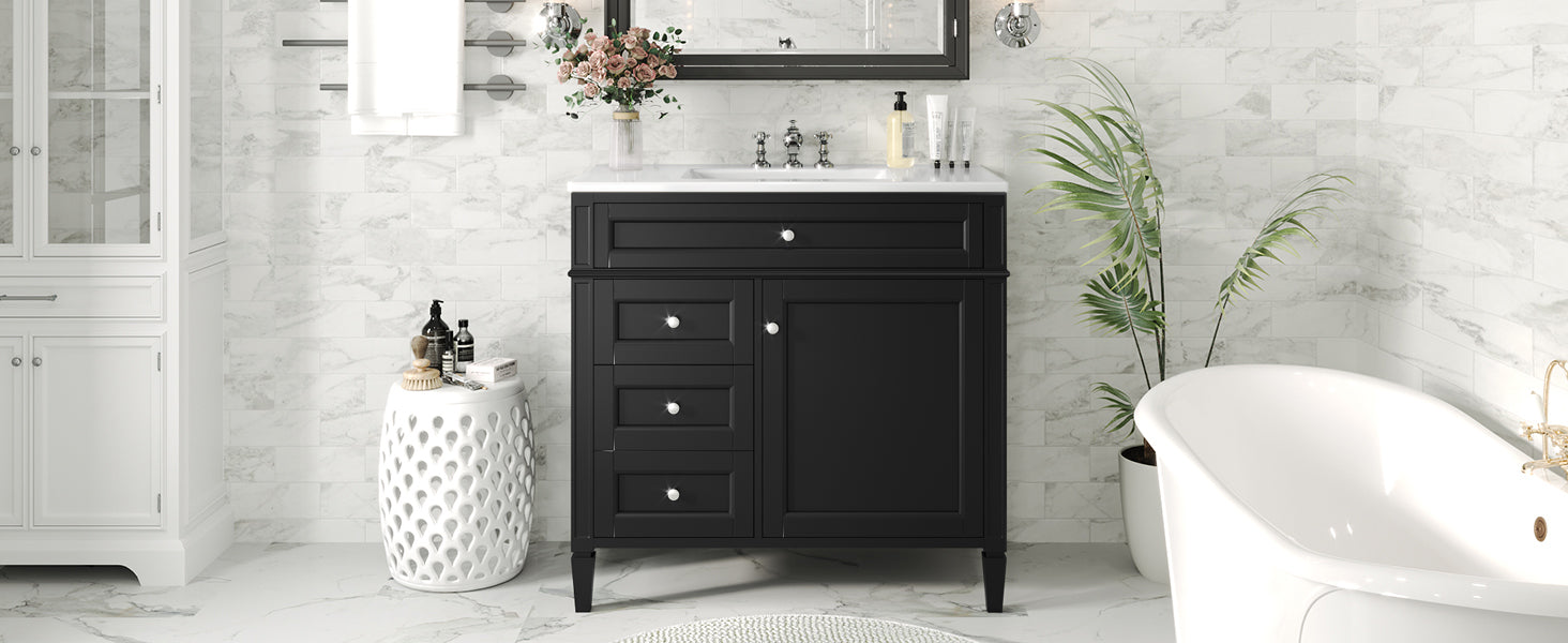 36 "Single sink bathroom dressing table, modern bathroom storage cabinet(black)