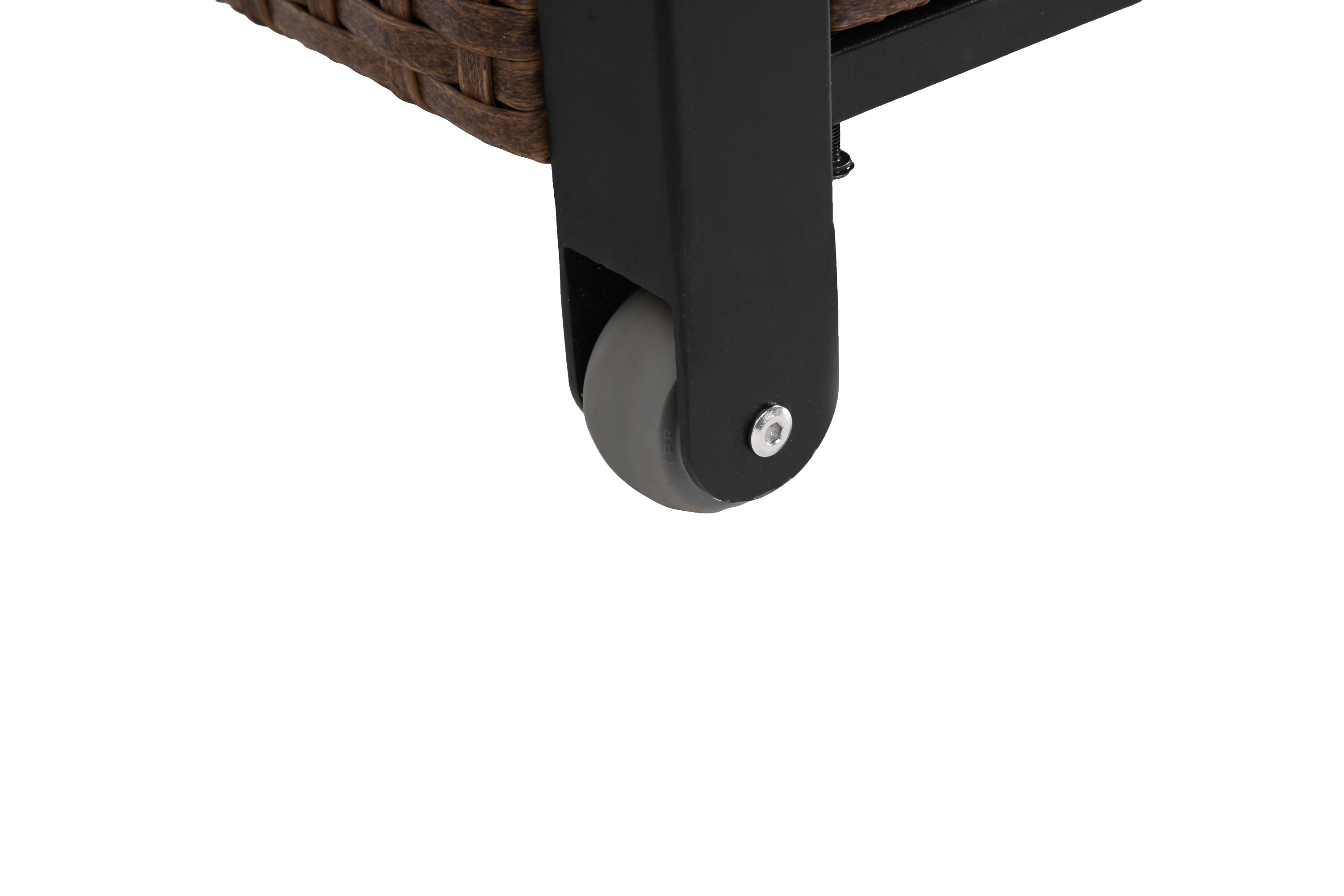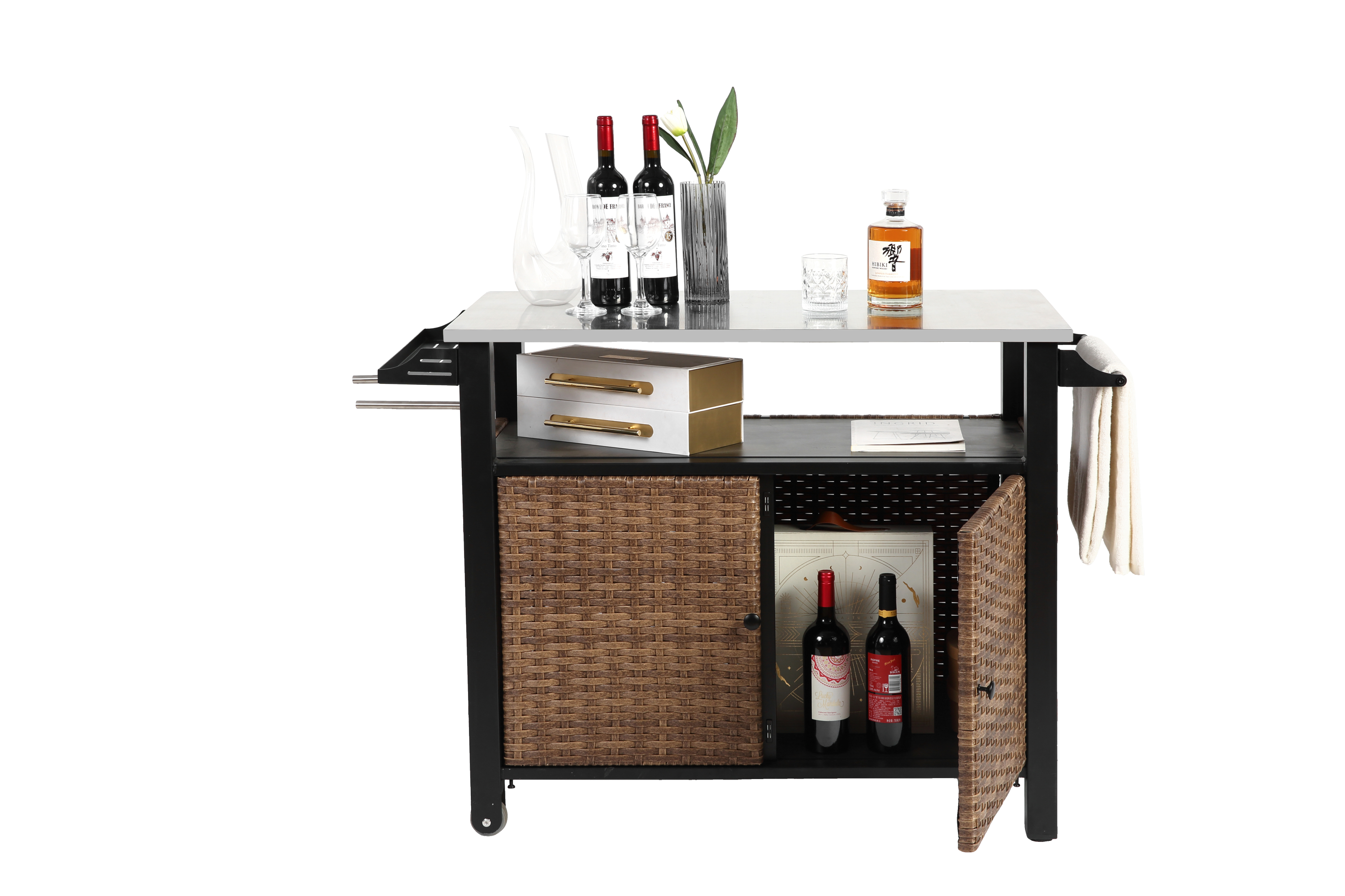 Outdoor kitchen wicker island rolling trolley and storage cabinet