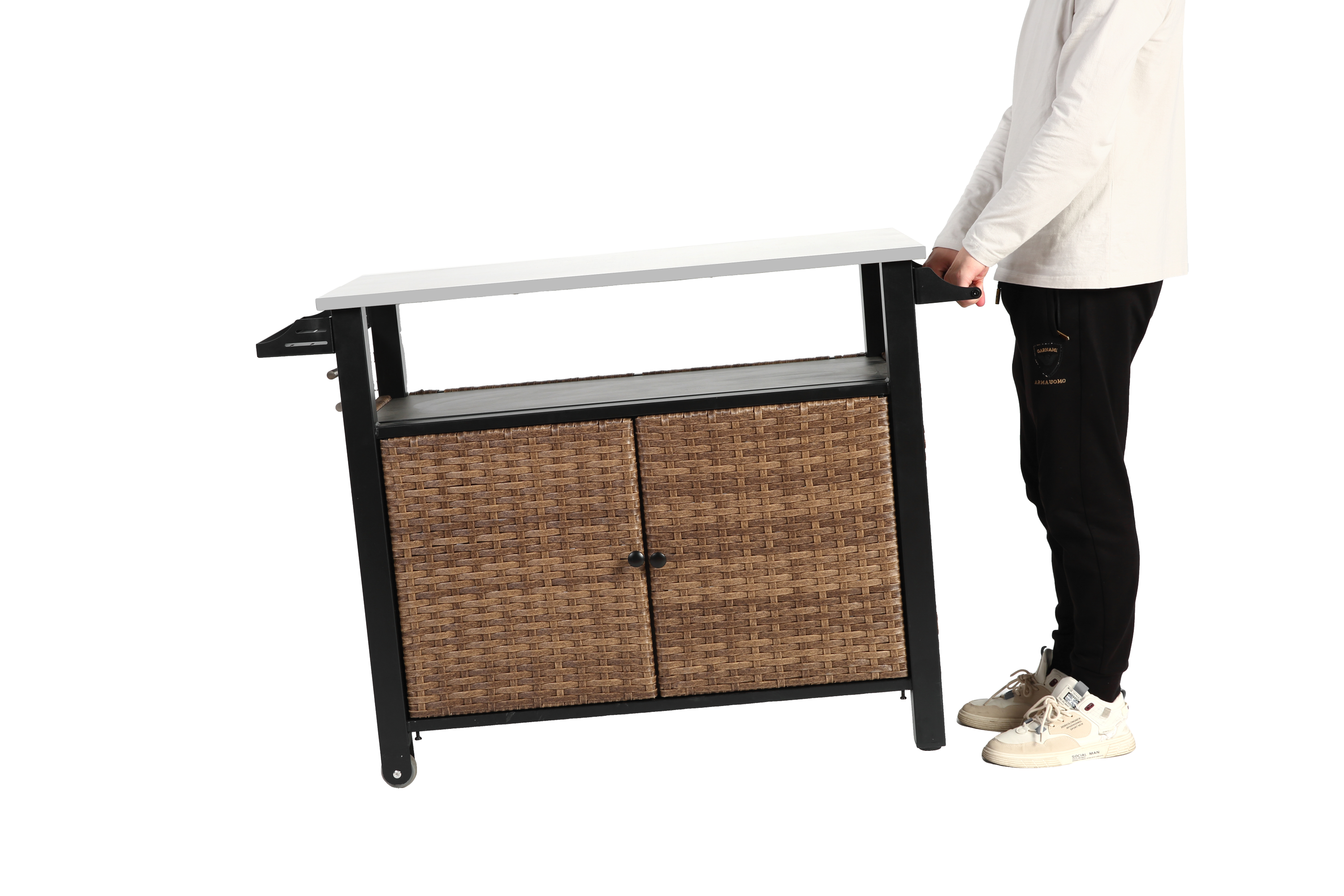 Outdoor Kitchen Wicker Island Rolling Cart & Storage Cabinet