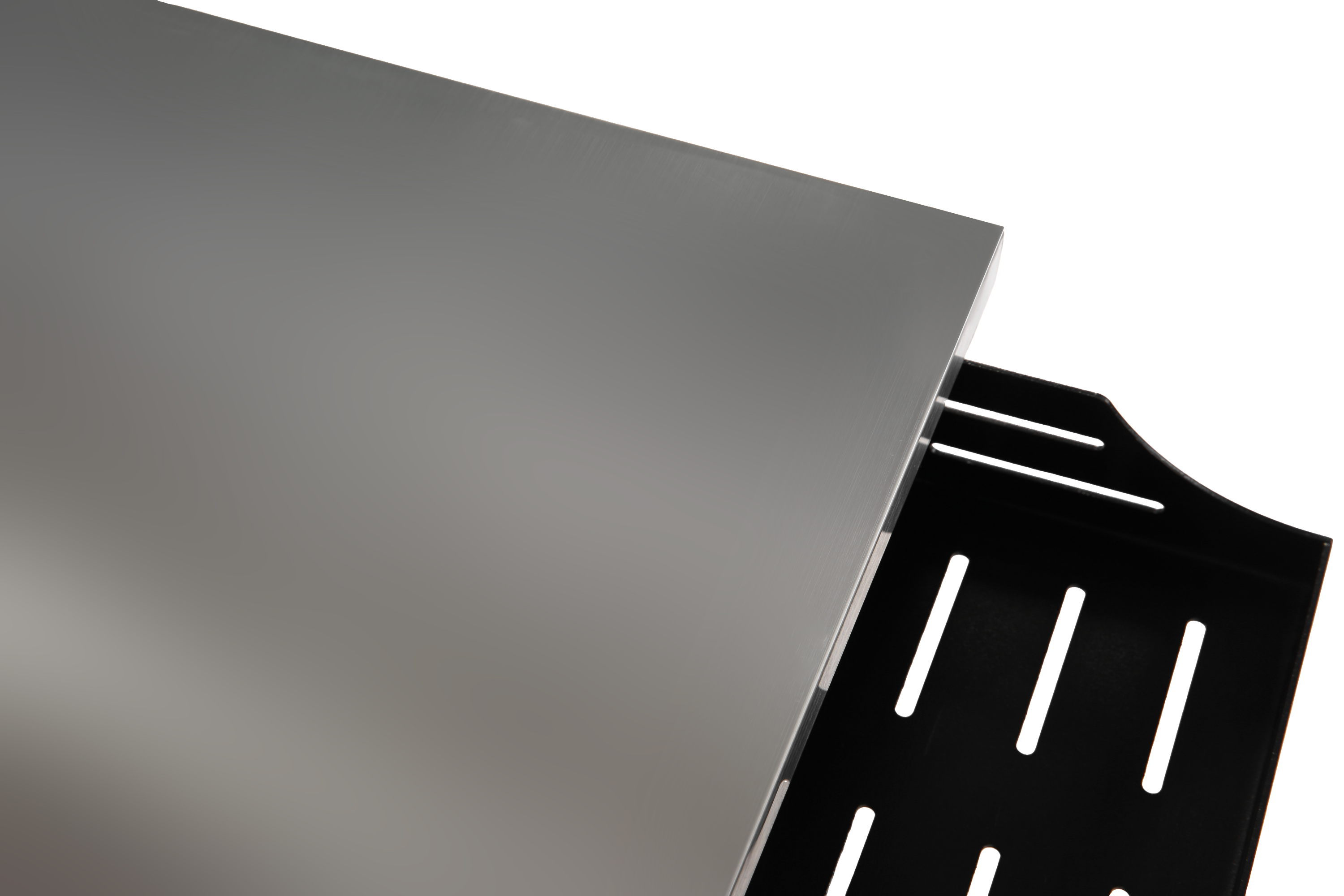 This outdoor kitchen cabinet features a high-quality stainless steel tabletop with an expandable panel on the side; The baffle can be rotated to create a two-layer shelf for additional storage; Only requires a simple wipe to clean
