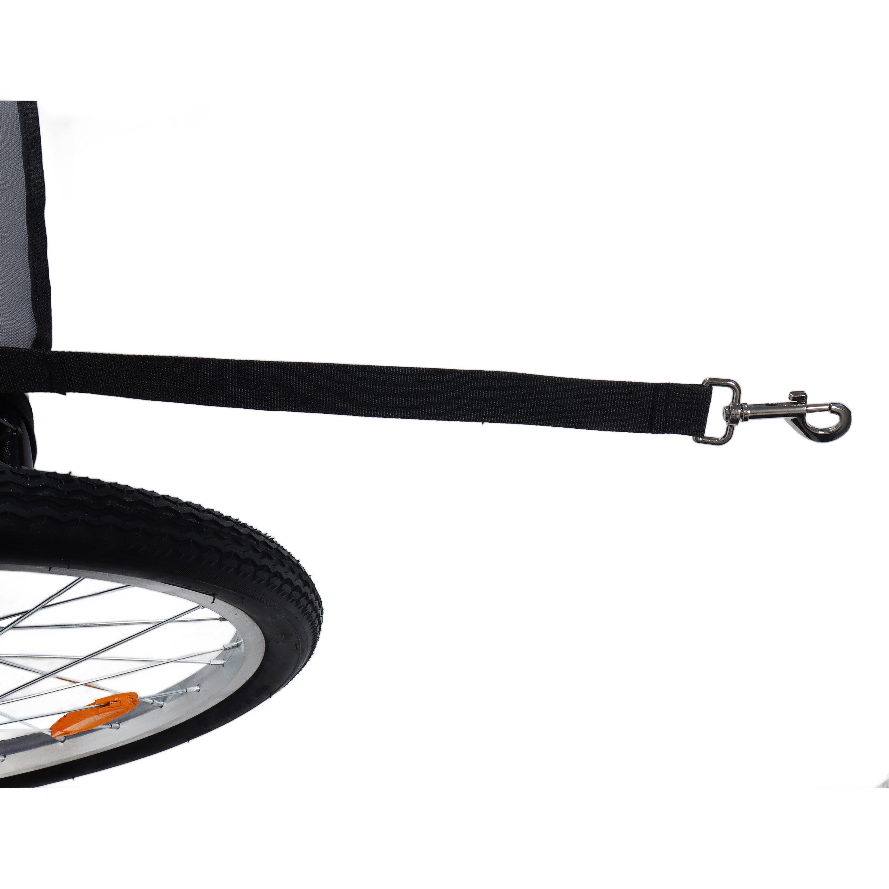 - This trailer cart features two built-in cup pockets at the rear, paired with a practical storage bag positioned directly beneath them for easy organization of essentials during transport.