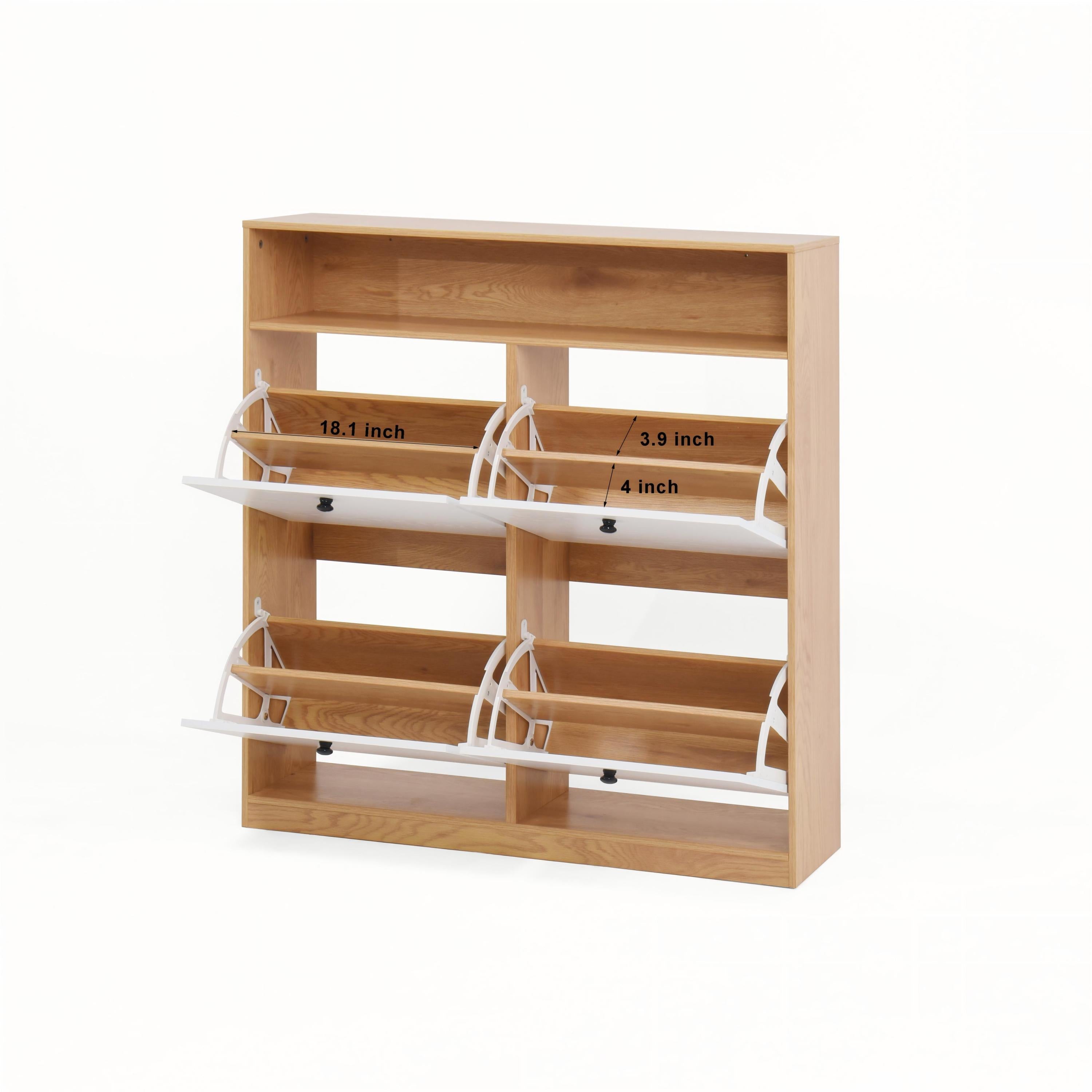 Modern independent shoe storage cabinet with 4 flip drawers (natural)