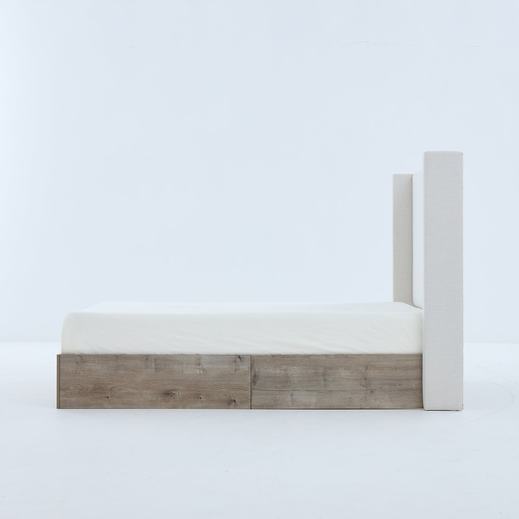 The finish is popular in modern, scandinavian, and farmhouse-style, as it gives a natural look textured ivory canvas chenille fabric that pairs well with light rustic oak color bed frame and minimalist designs Its 54” height creates a welcoming focal point for any bedroom, feels just as premium as it looks. Premium and beautifully textured off fabric - the perfect place to drift off and dream. Elegant simplicity combined with soft wingbacks headboard embracing you home. As always, your comfort and support are high priorities at us, with a sturdy wooden-slats base and metal side rails frame. Boasts elegant and classical design with the perfect finish.