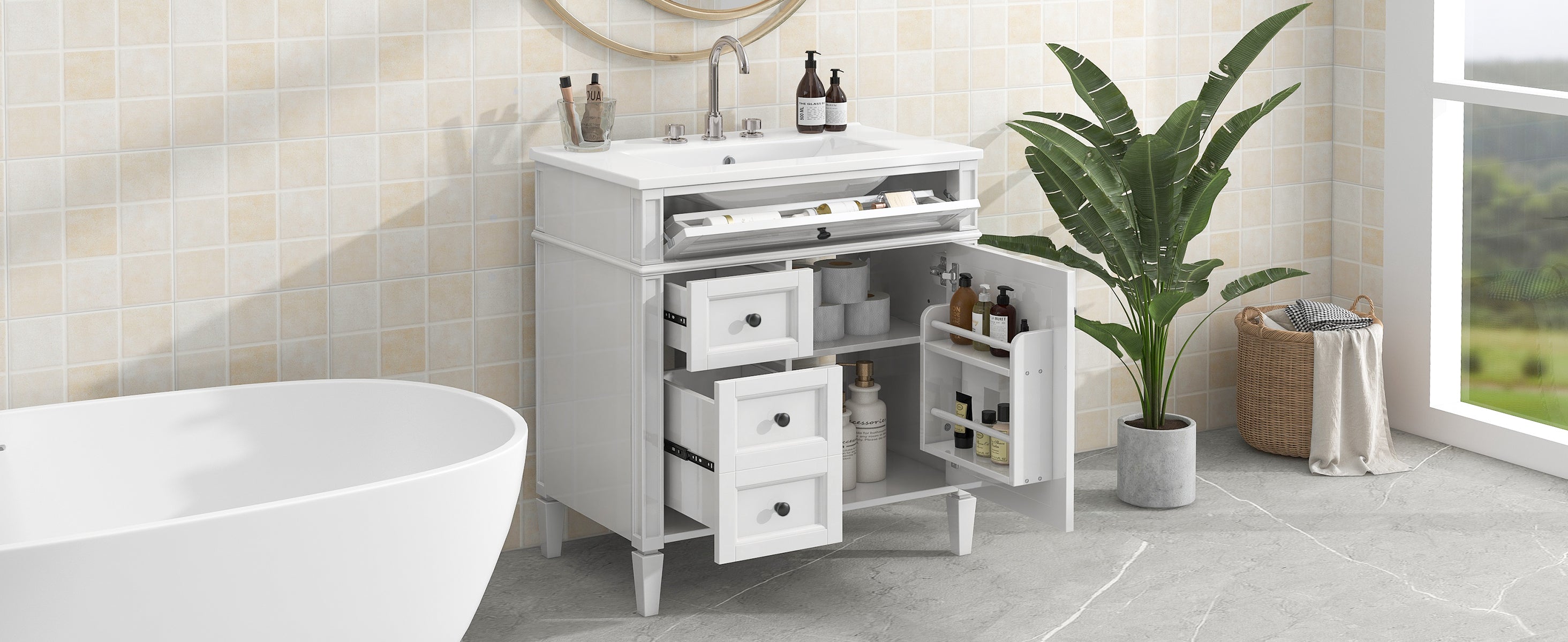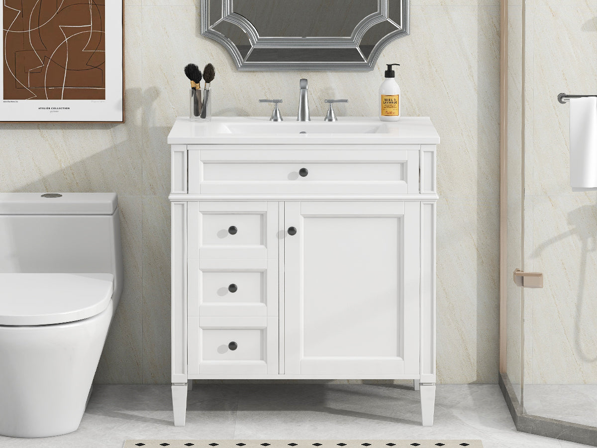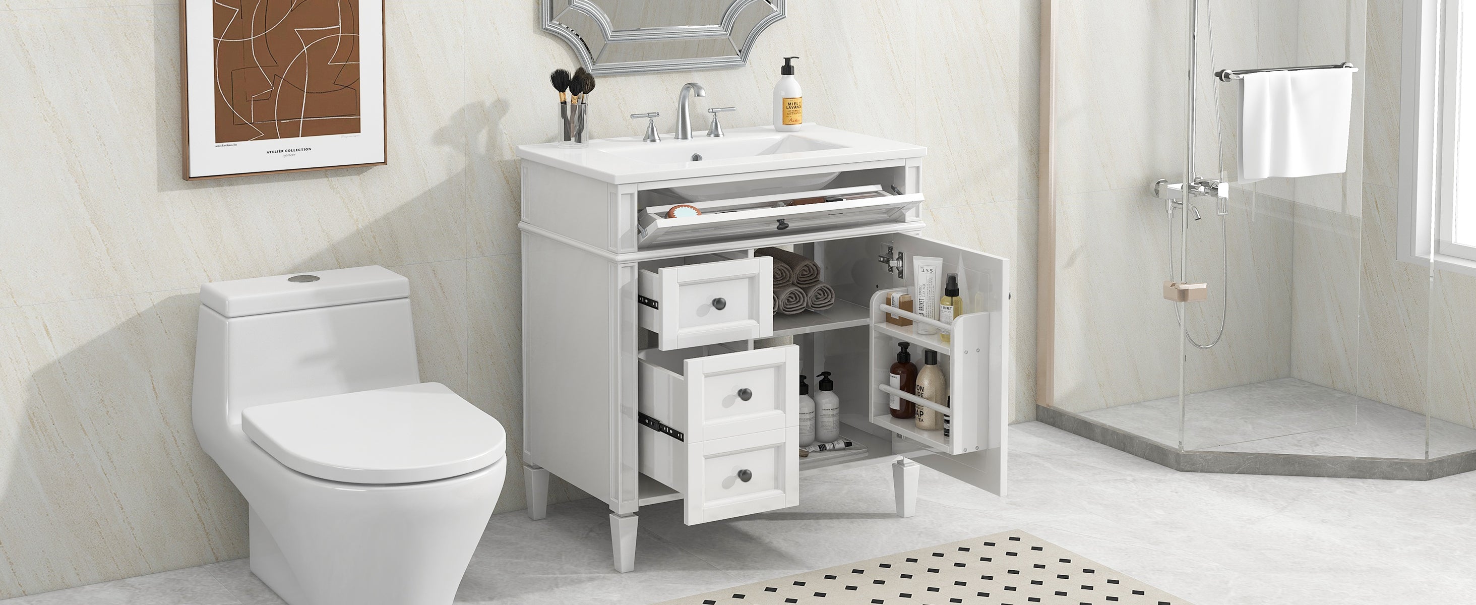 Single sink bathroom dressing table and modern bathroom storage cabinet(White)