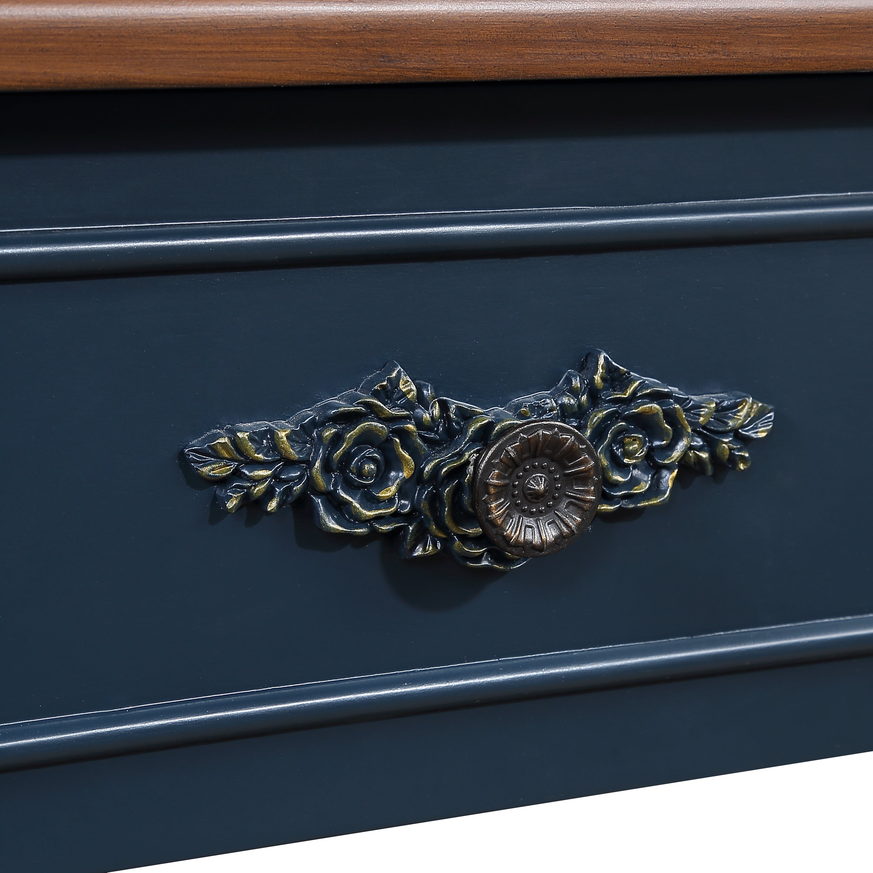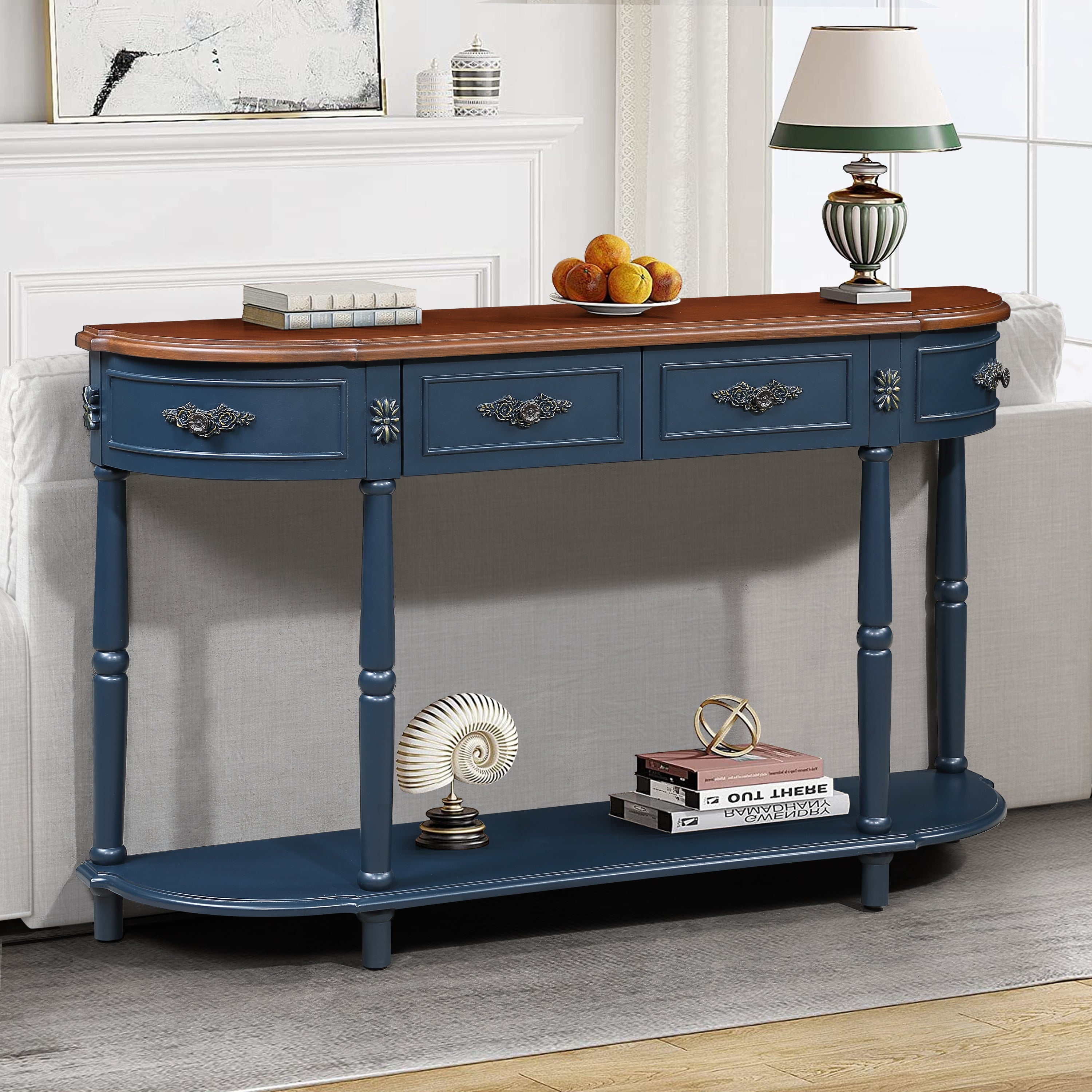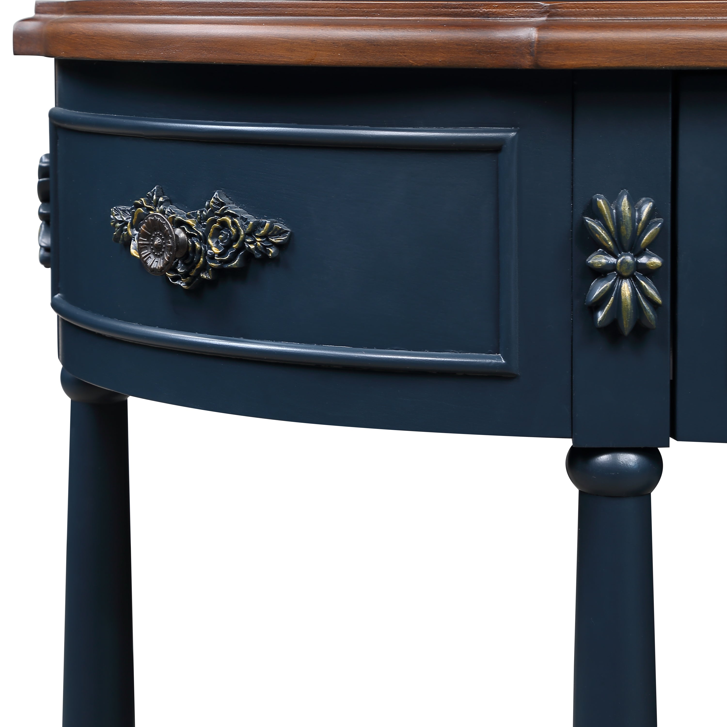 Solid wood retro arc-shaped wooden control console table( navy blue)
