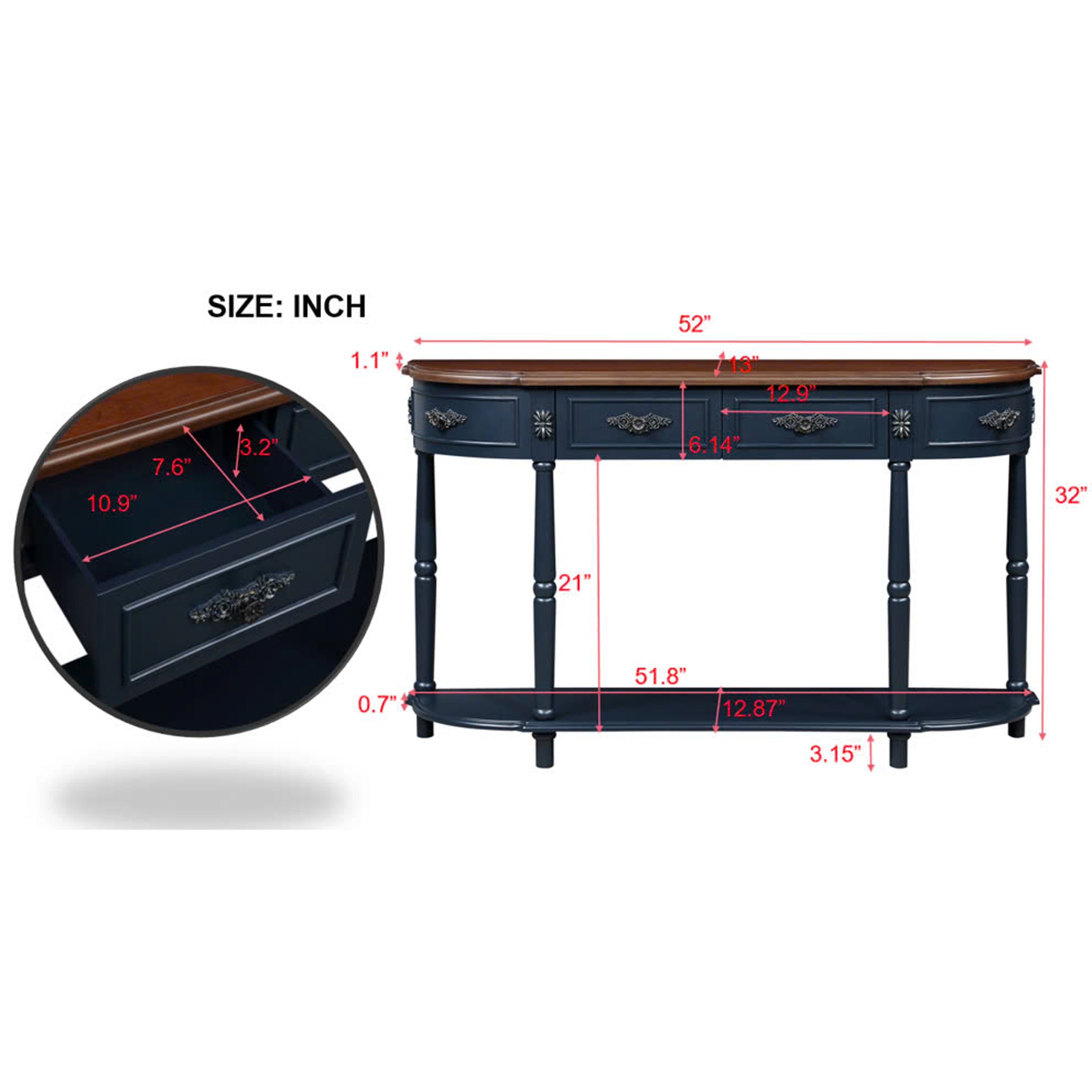 - 【Easy to Assemble】: The tabletop and drawers of this retro console table are pre-assembled, and when you receive the package, you only need to assemble the 4 legs and 1 bottom shelf to enjoy this retro elegant sofa table.