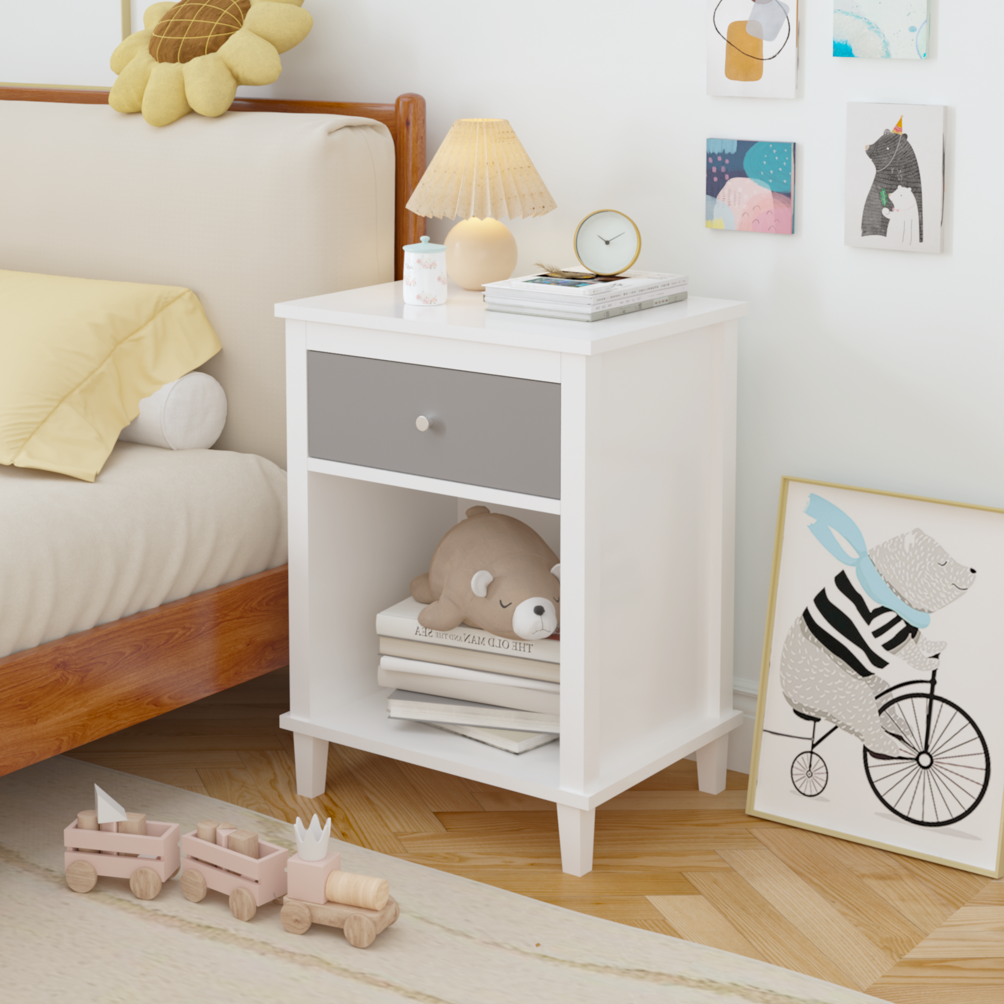 Gray+Silver handle wooden bedside table with drawers and storage cabinets