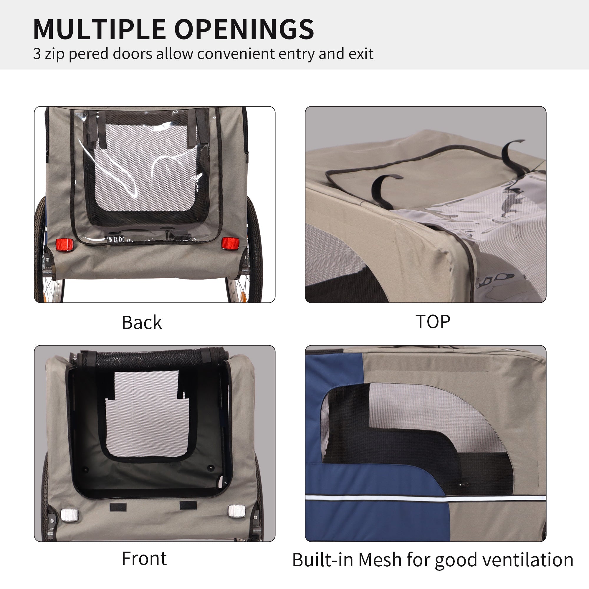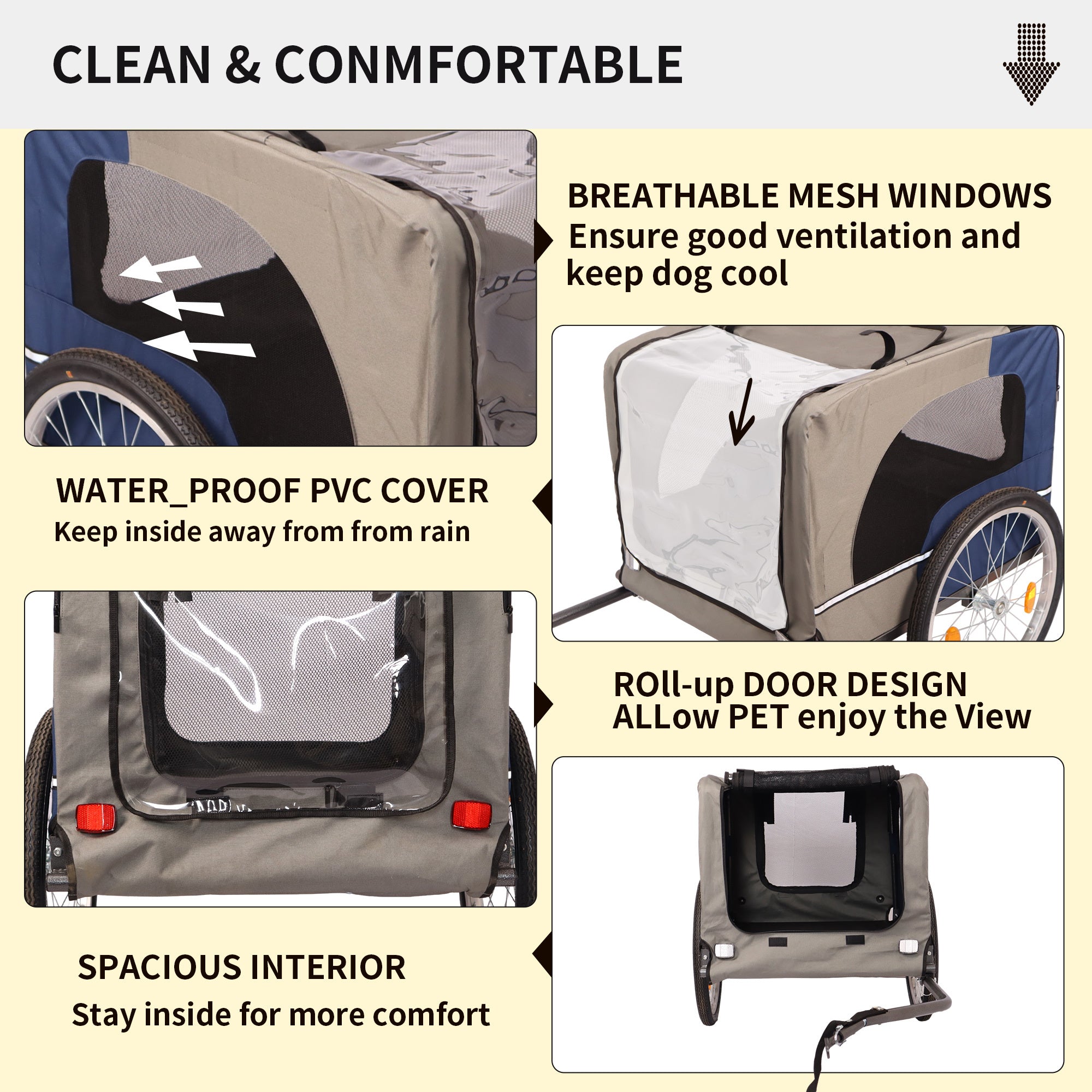 Transport pets up to 85 lbs. while riding your bike Pneumatic rubber tires ensure a smooth ride for your pooch Large front and back mesh zippered screen doors