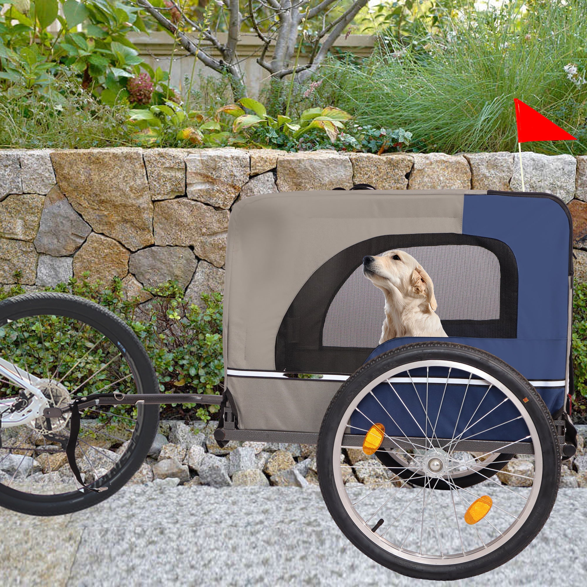 - Safety Features: Equipped with reflectors on the front, rear, and sides, plus a safety flag for enhanced visibility while on the road.Spacious & Practical: Exterior dimensions (with flag): 53.15 x 27.56 x 31.50 / 44.49 inches (L x W x H); Interior space: 29.53 x 24.41 x 19.69 inches (L x W x H), providing a roomy and comfortable area for your pet.