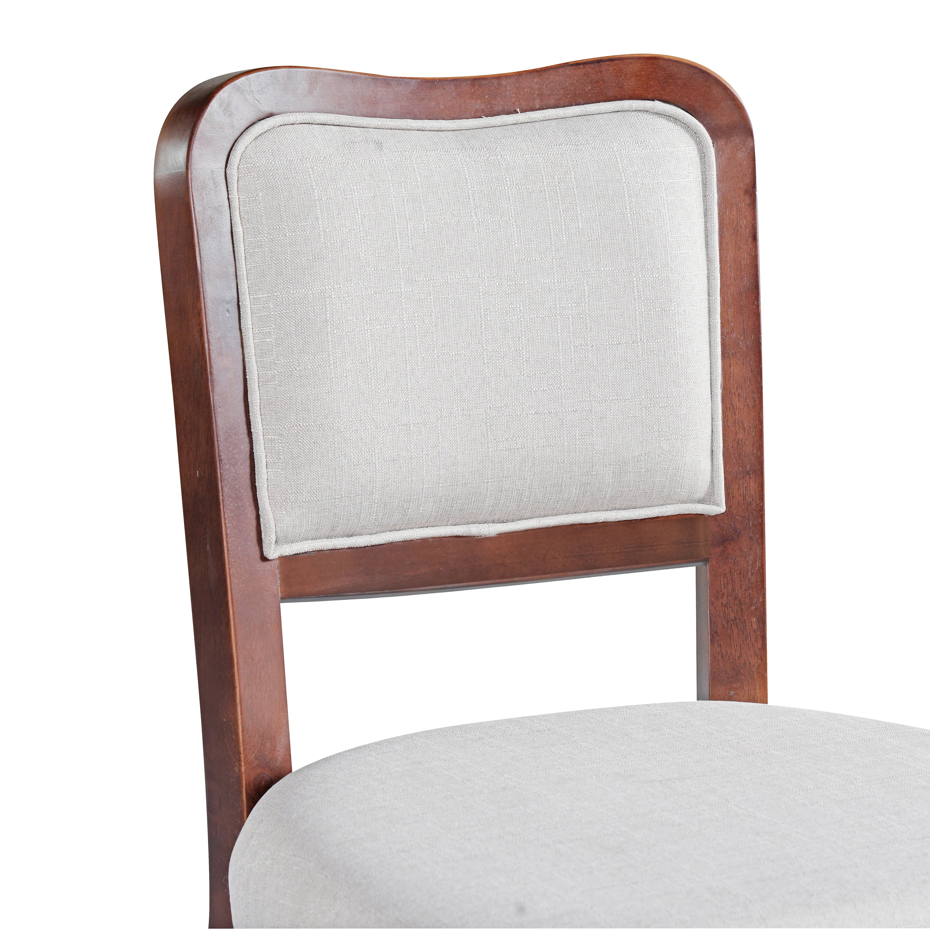 Two traditional and elegant walnut-finished upholstered dining chairs(beige,walnut)