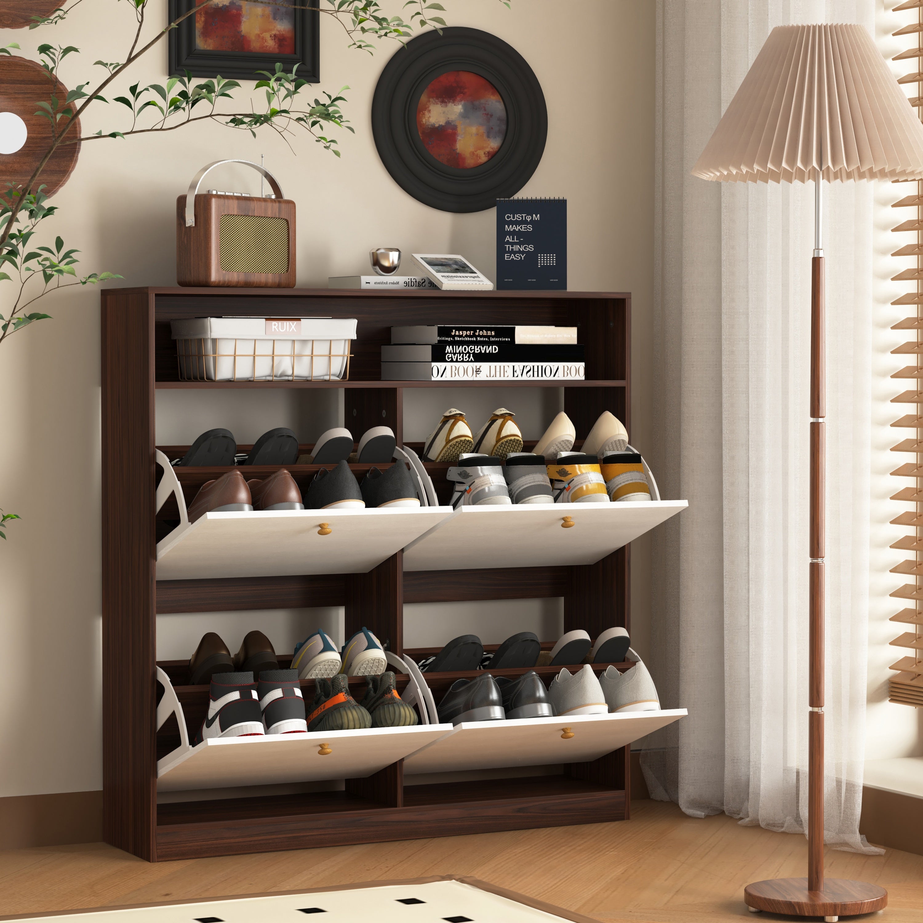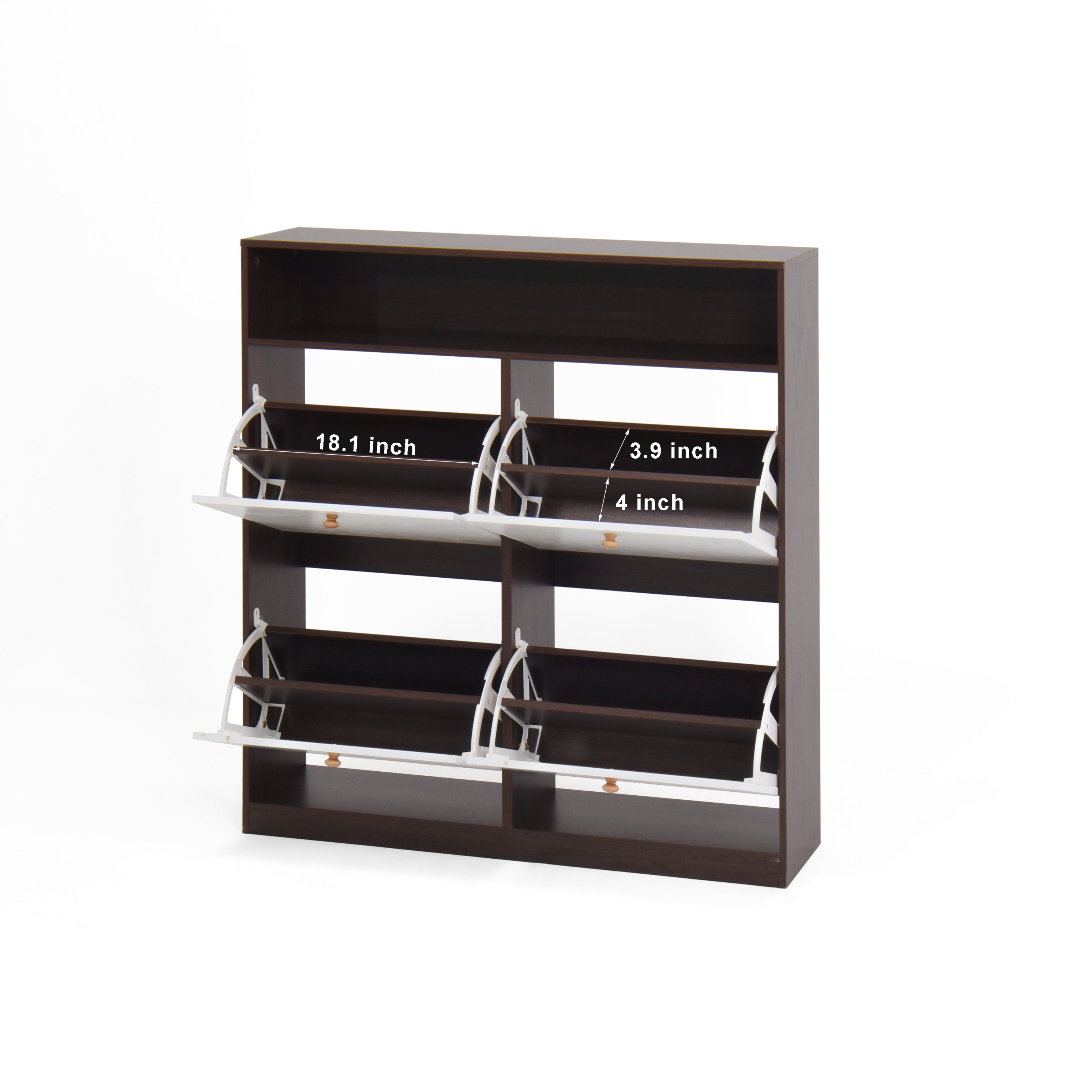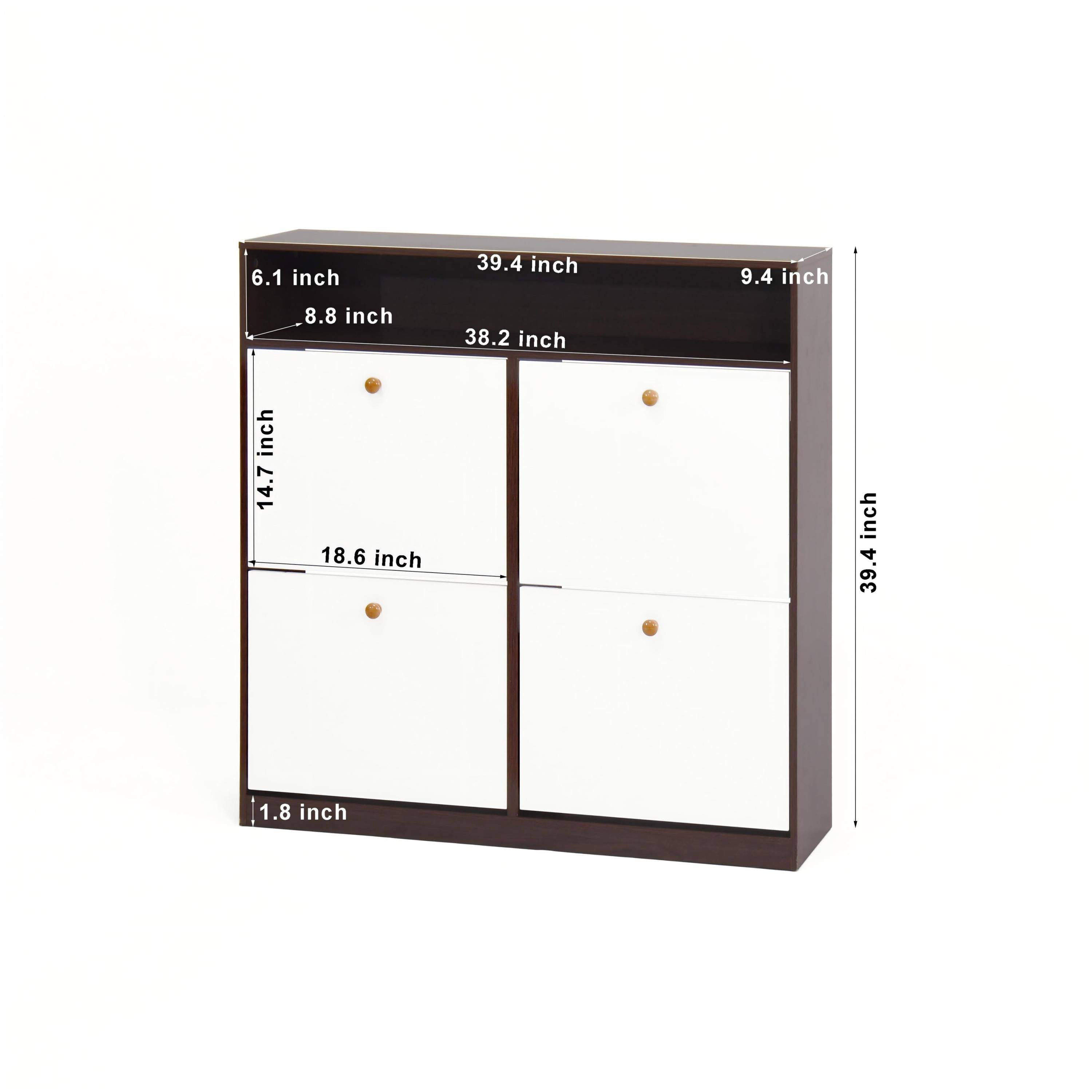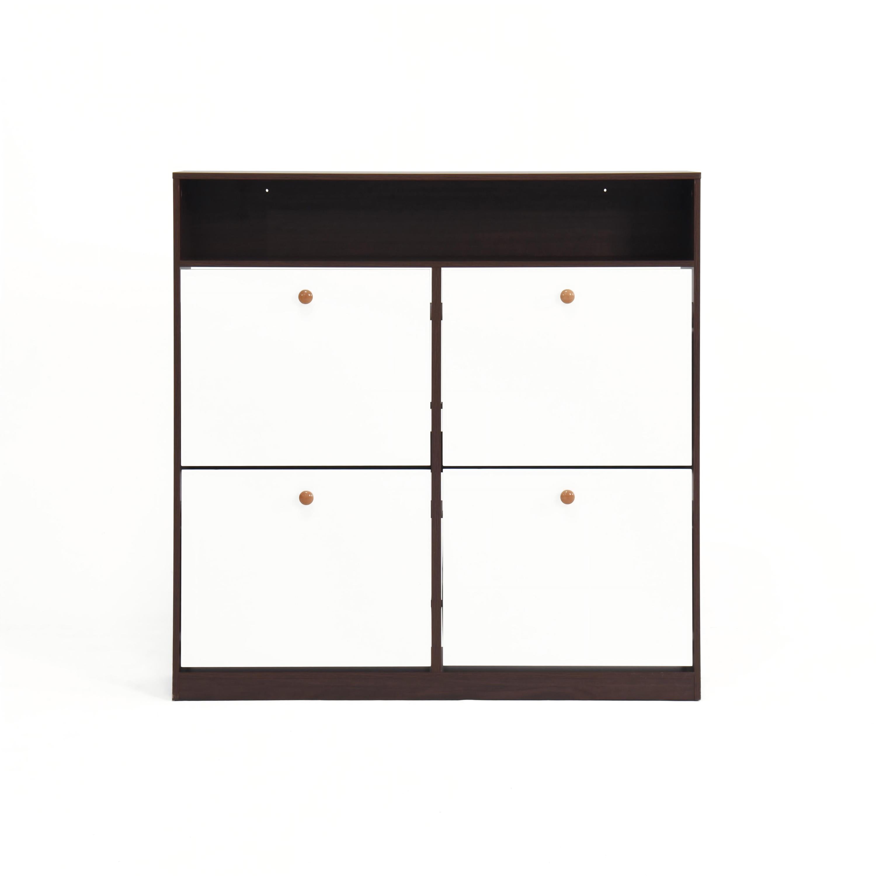 Modern independent shoe storage cabinet with 4 flip drawers (walnut )