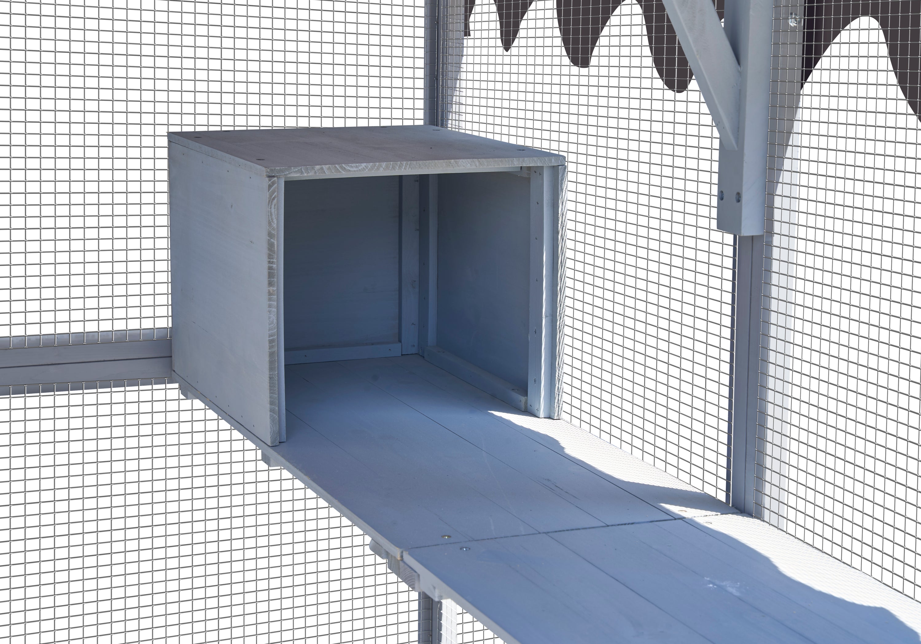 - WEATHERPROOF COVER ROOF: The modern outside cat house is perfect to stand in your garden or backyard to offer a weatherproof sanctuary and sunbathing.
