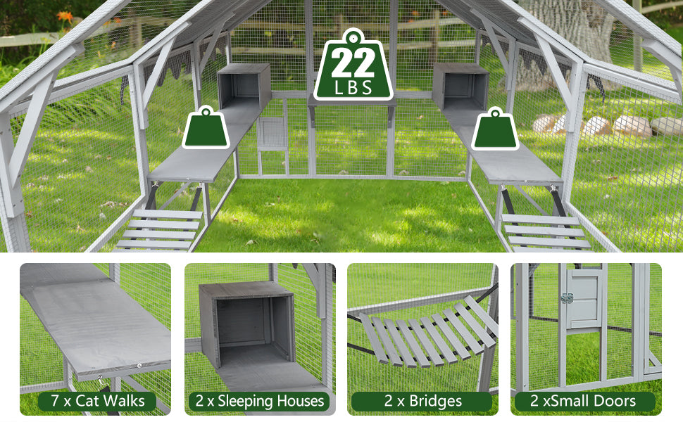 - COMFORT & FUNNY: Large room with with 2 x Bridges, 2 x Sleeping houses, 7 x Cat Walks will become a comfortable sanctuary for your furry family.