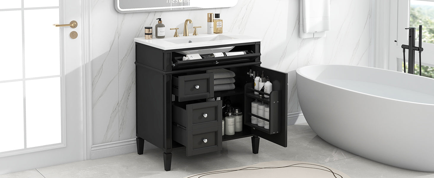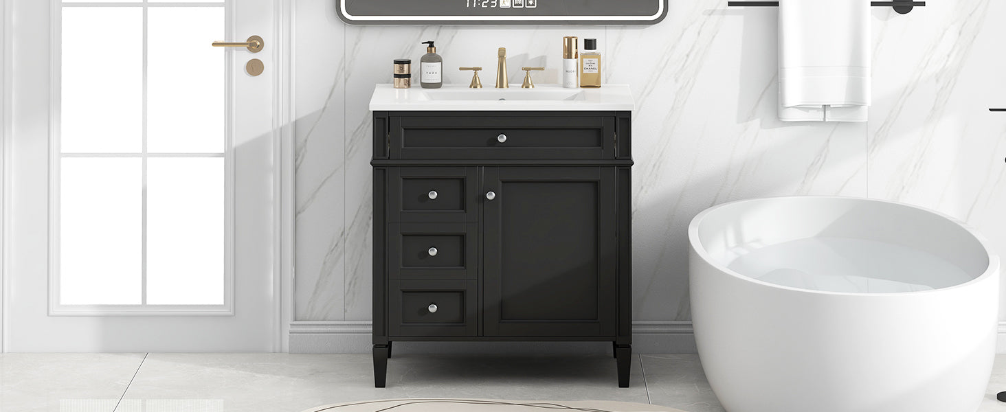 Single sink bathroom dressing table and modern bathroom storage cabinet(Black)