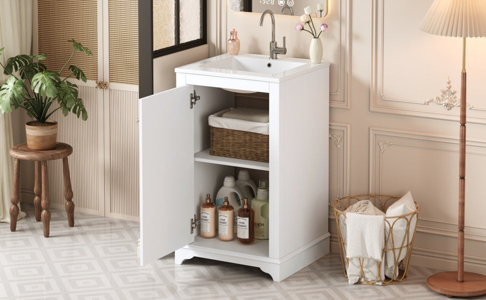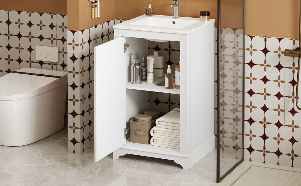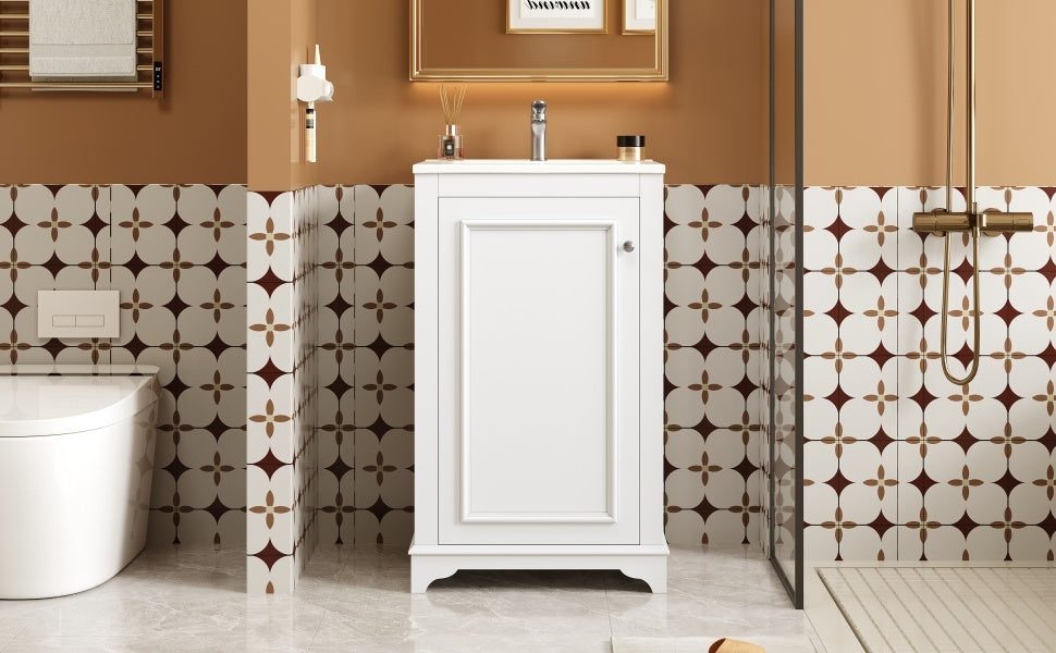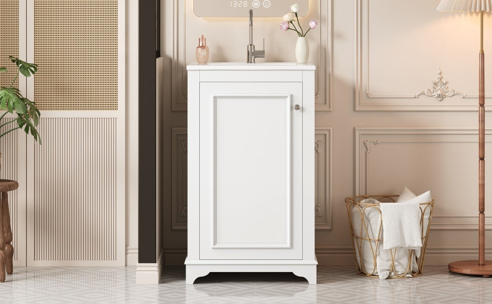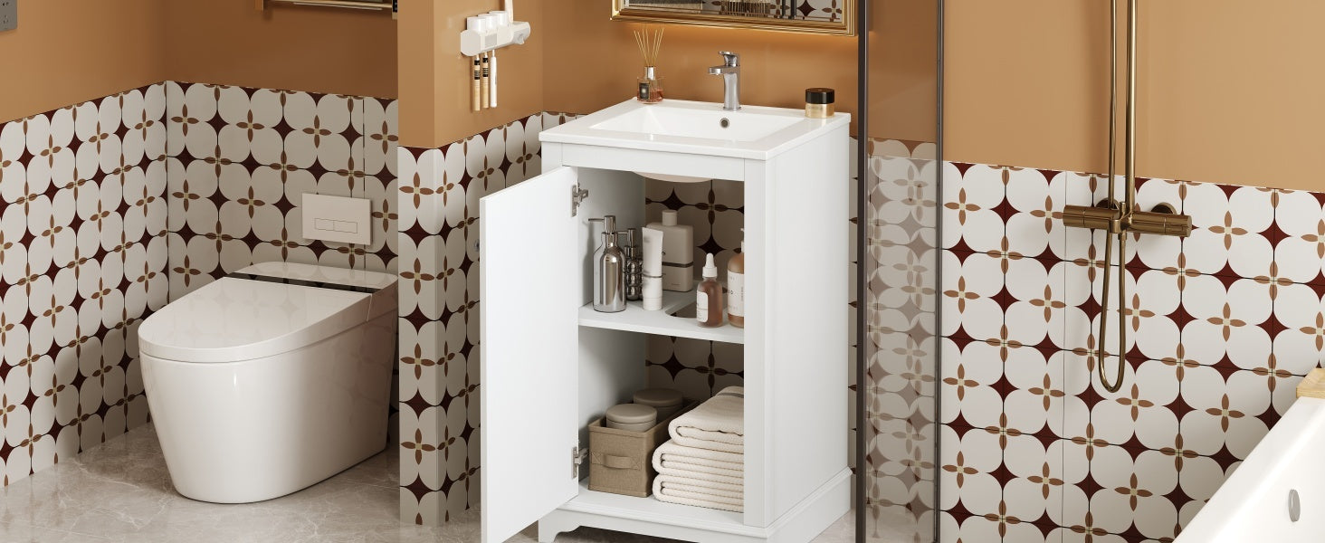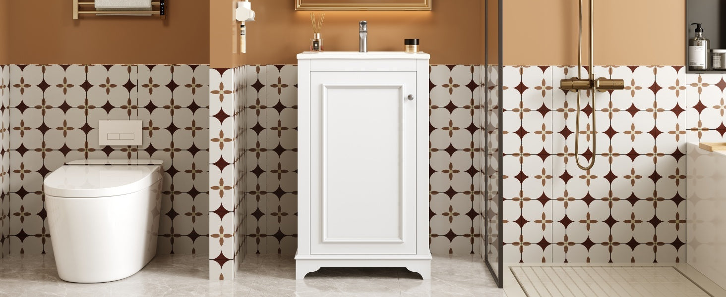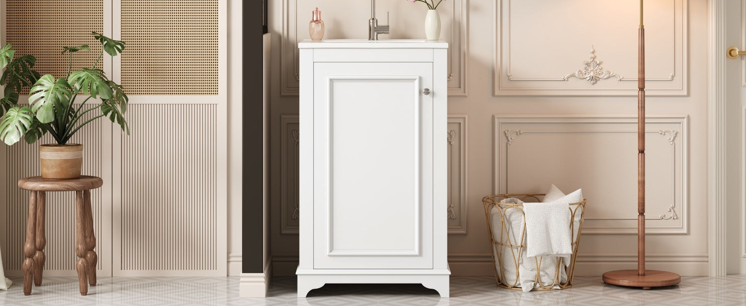 - 20.1' x 18.4' x 33.8' Shaker-style bathroom vanity for organizing your small bathroom or powder room. It offers a sleek and modern solution without sacrificing functionality and fits seamlessly into any corner or tight space.