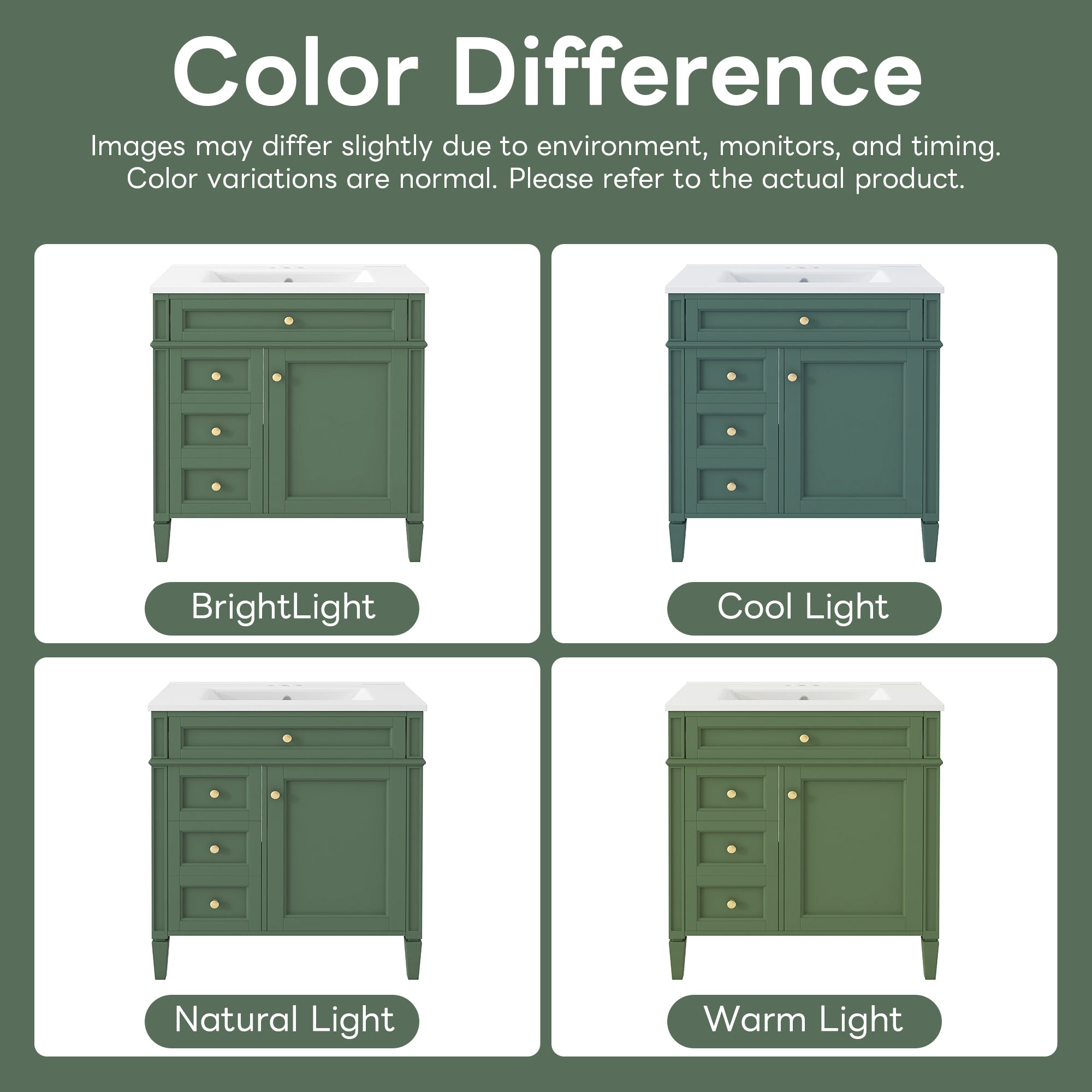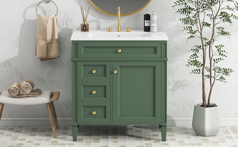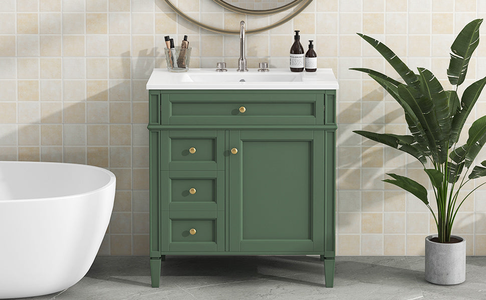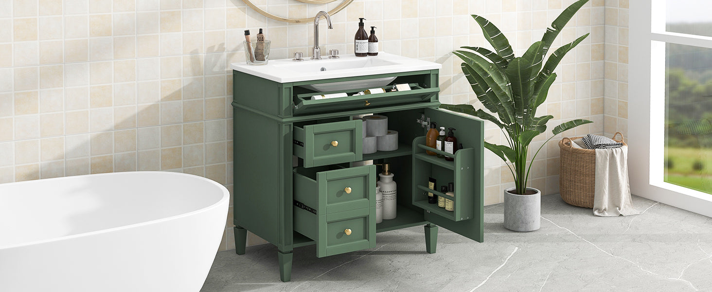Single sink bathroom dressing table and modern bathroom storage cabinet(Green)