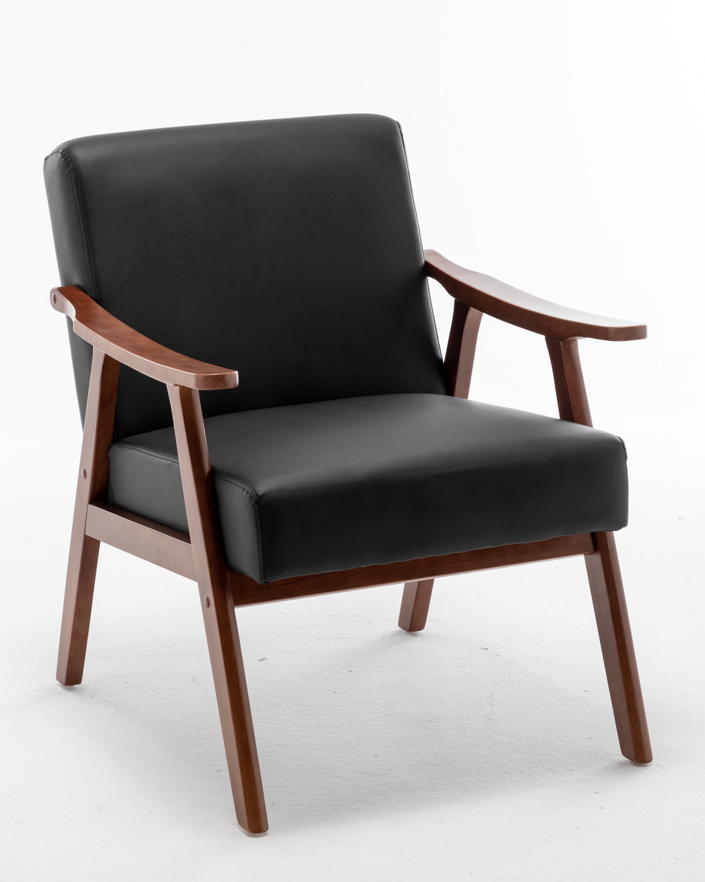 - 【Premium Materials】: Constructed with a robust rubber wood frame, this chair is engineered for longevity. The high-density sponge cushions are exceptionally plush and welcoming, while the PU leather cover introduces a subtle texture and a warm, friendly ambiance. You'll experience no wobbling as you indulge in the comfort of this accent chair. Its maximum weight capacity reaches 300 lbs.