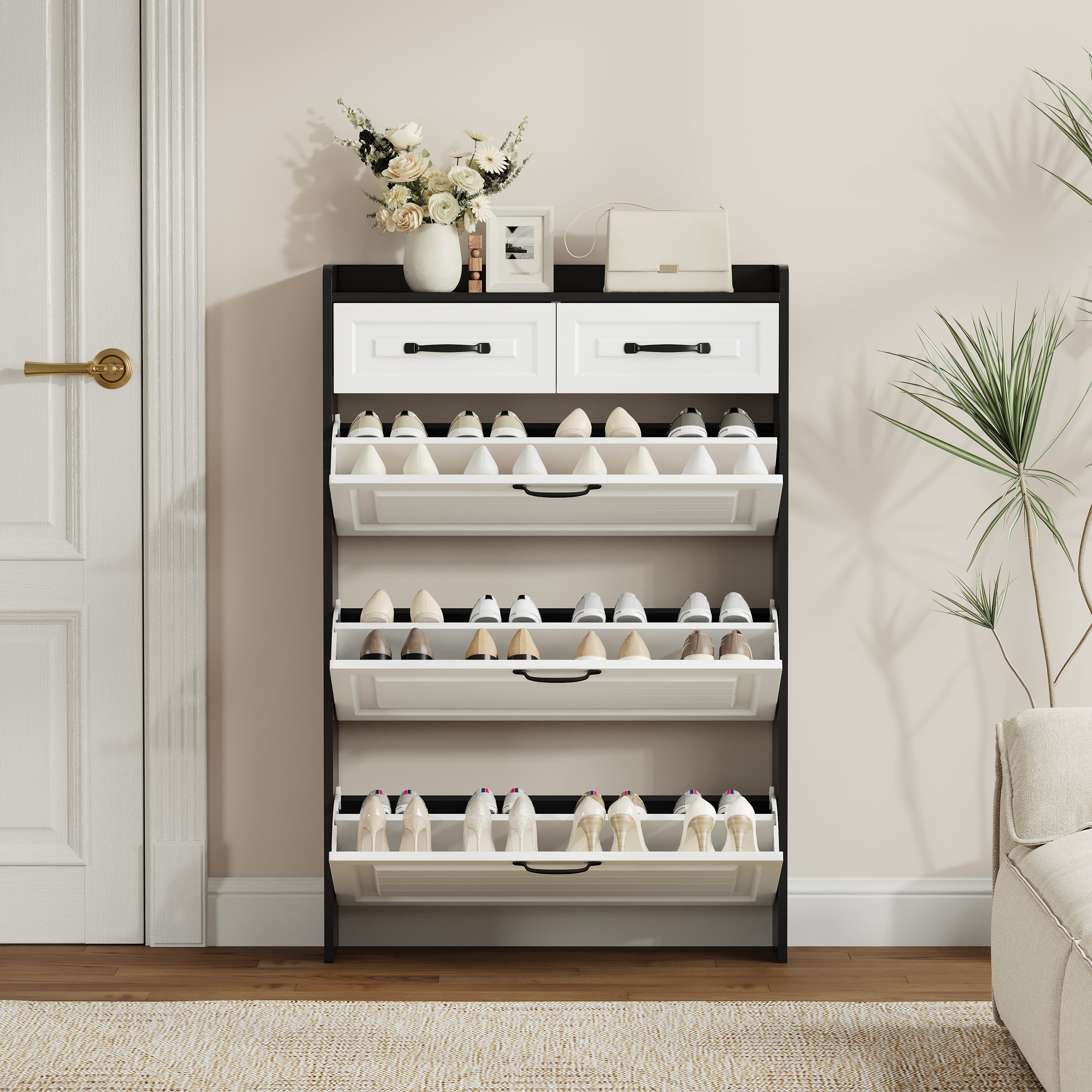- Entrance shoe cabinet, black shoe cabinet with 3 flip drawers, concealed narrow shoe rack cabinet, independent shoe cabinet storage box, suitable for entrance passages and corridors