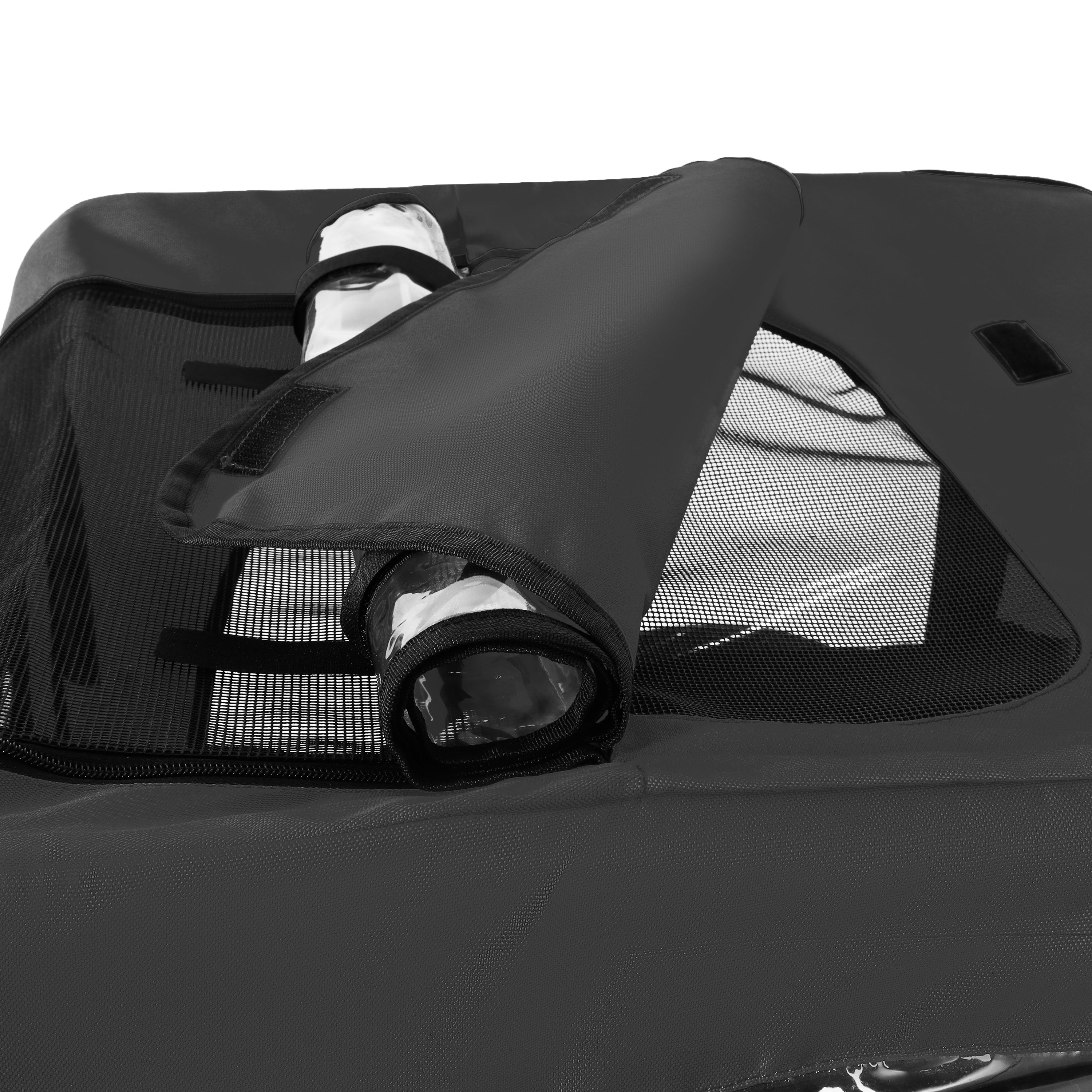 - All-Weather Protection & Ventilation: Equipped with a waterproof front curtain to block rain and wind, paired with fine mesh side panels that keep insects out while promoting airflow. Your pet stays dry, cool, and engaged with the surroundings—no compromises on comfort or safety.