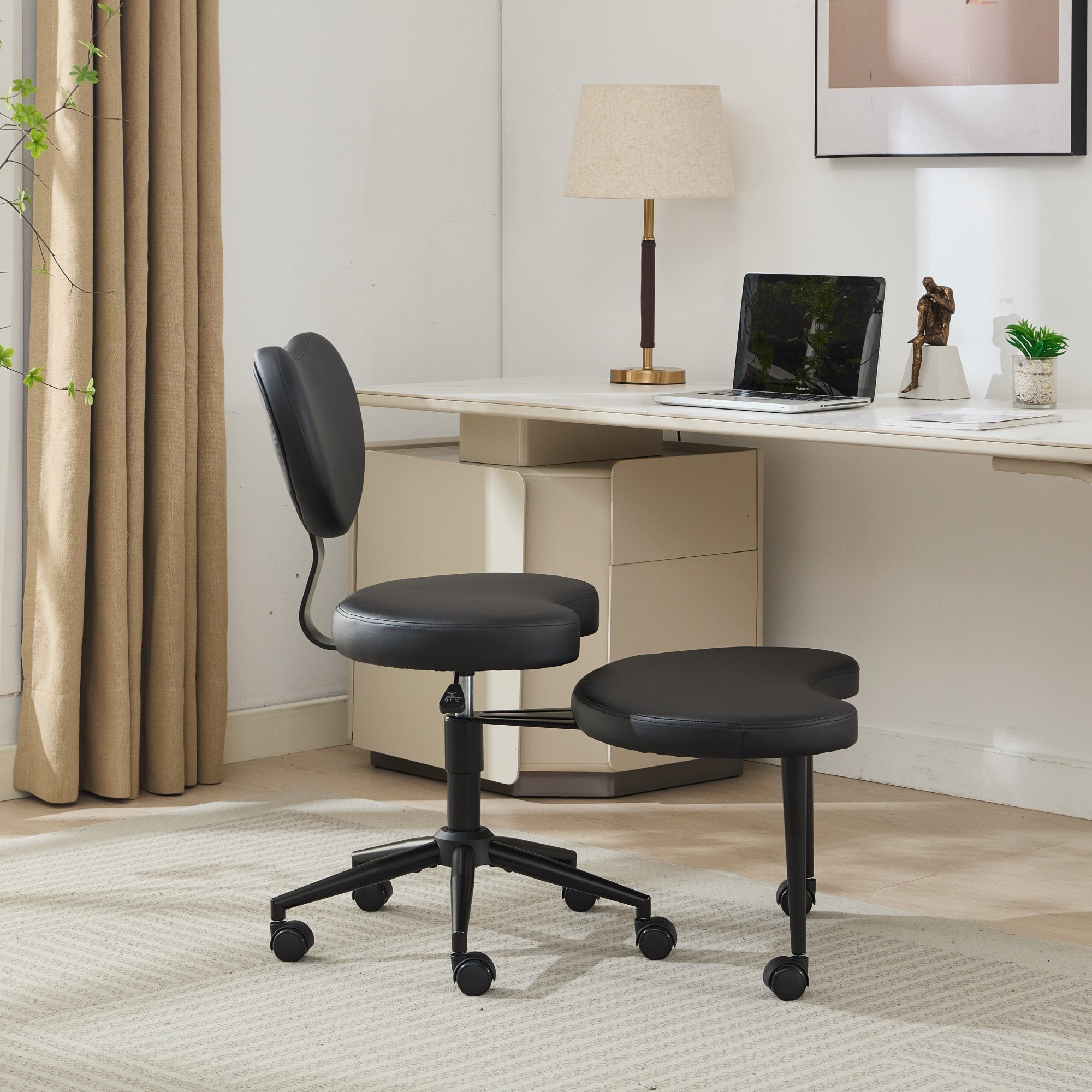 Crossed tables and chairs with wheels, waist support and adjustable stools(Black)
