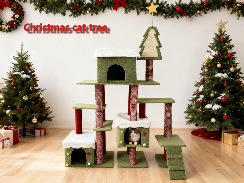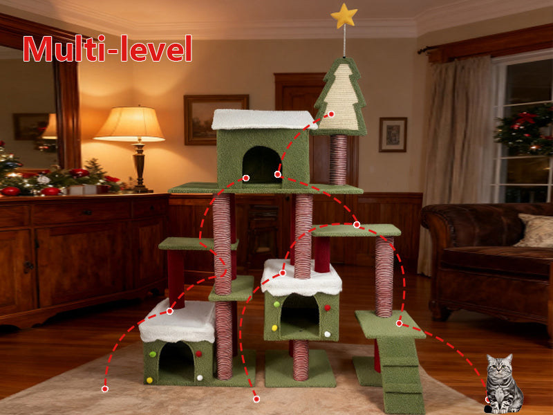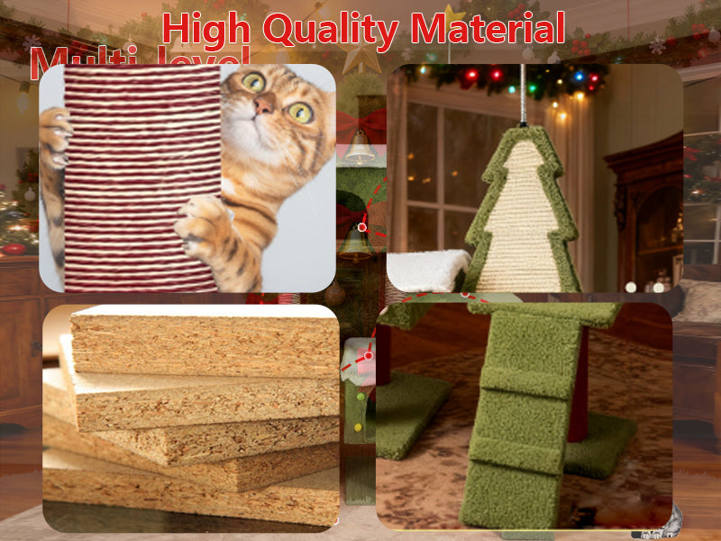 - Sturdy & Scratch - Friendly Construction: Built with robust materials, this cat tree ensures stability even as your cat jumps and plays. The scratching posts are covered with durable sisal rope, which not only withstands vigorous scratching but also helps keep your cat's claws healthy, saving your furniture from being scratched during the Christmas festivities and beyond.