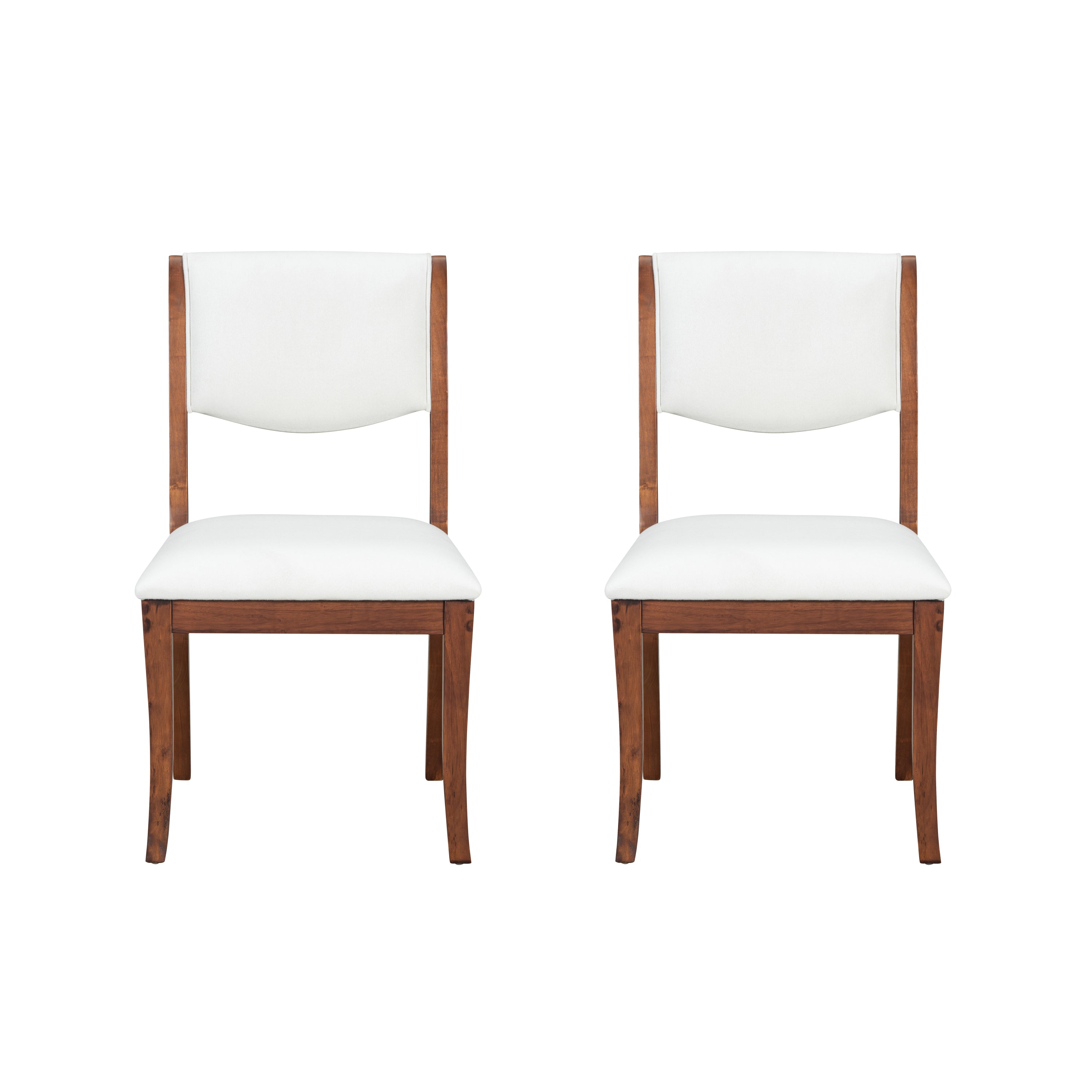Two elegant curved upholstered dining chairs(white+walnut)