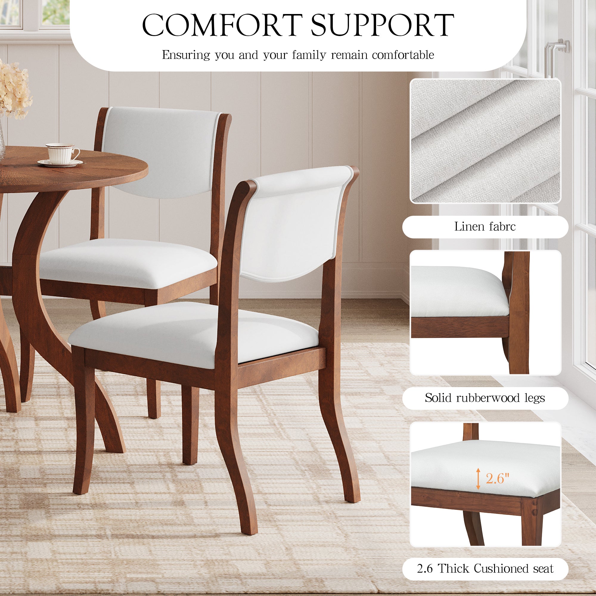 - Thick Padded Seat Cushions & Ergonomically Curved Backrest - Provides all-day comfort during family dinners or formal gatherings.