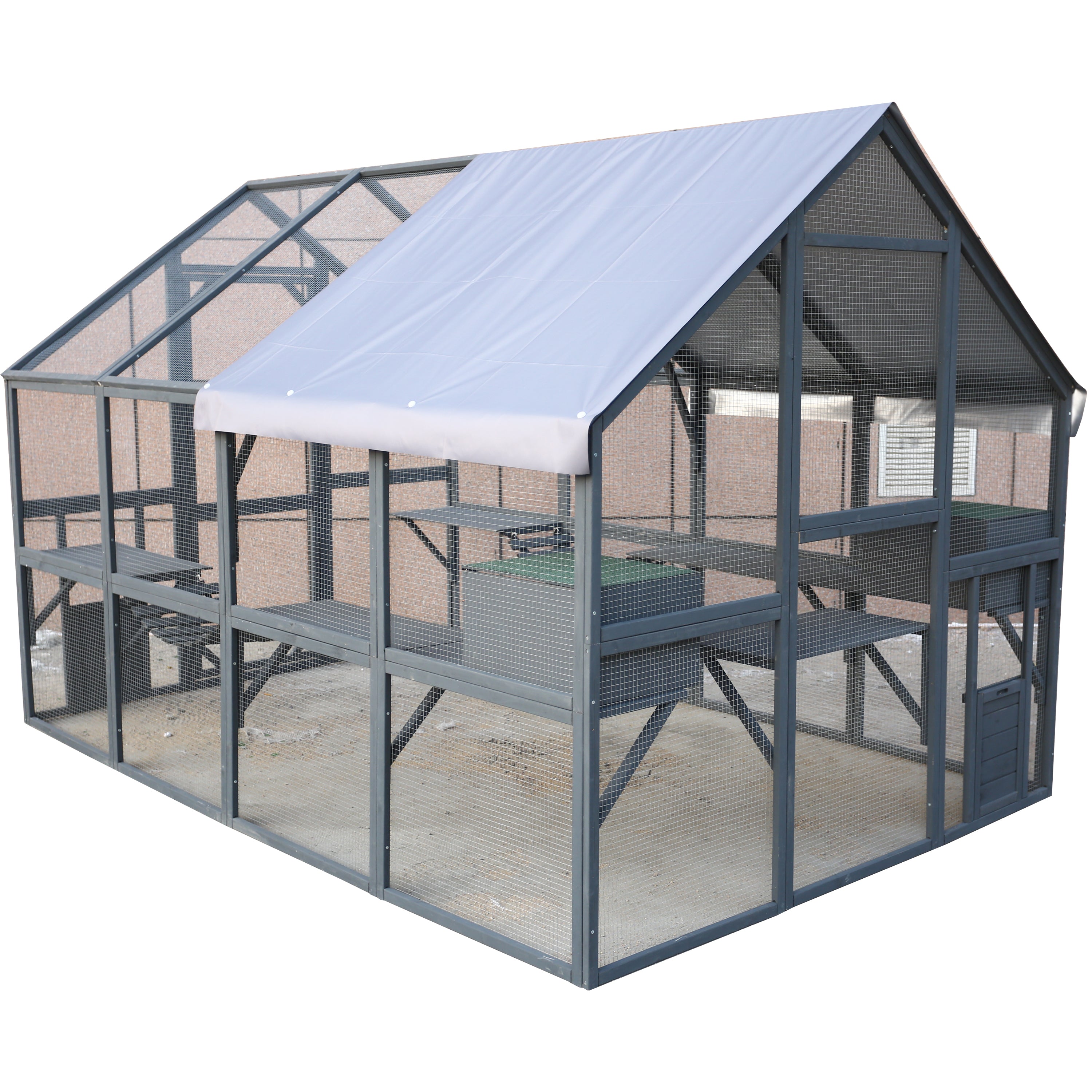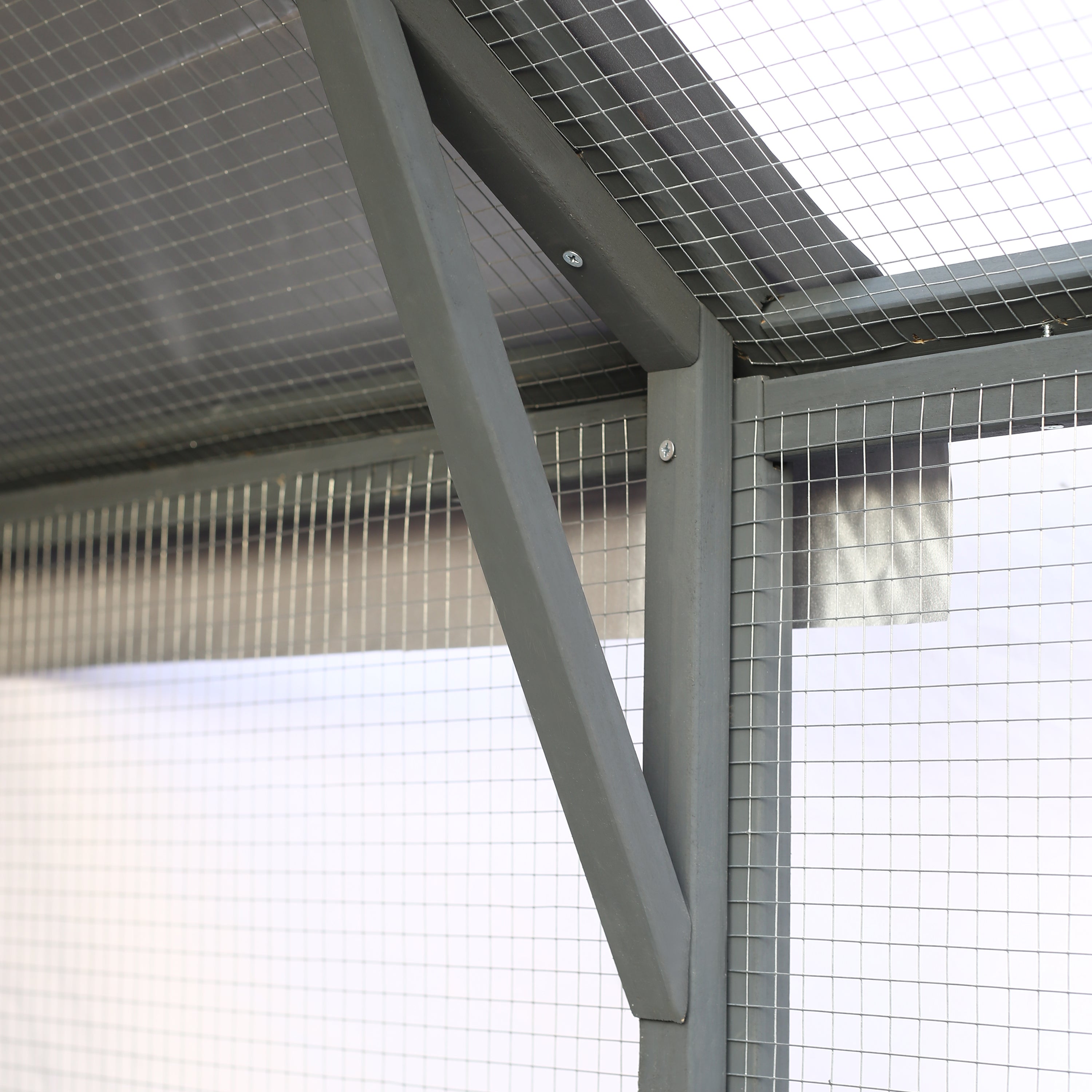 - Spacious Outdoor Play Area Give your cats a dream playground with a 56.54 ft² outdoor enclosure. This large space is perfect for running, jumping, and playing freely. It’s even roomy enough for you to step in and join the fun or simply relax and watch your pets enjoy themselves.