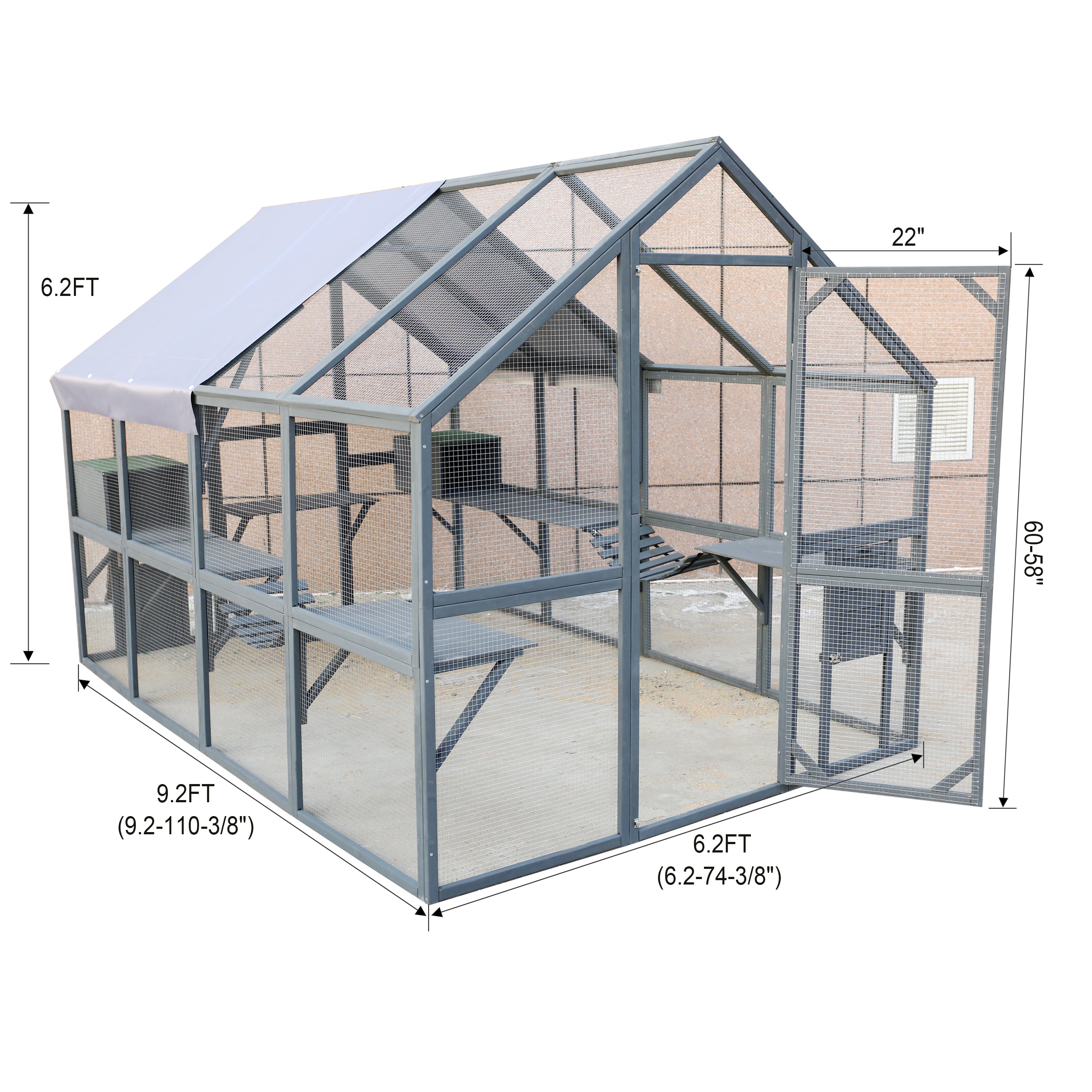 - Convenient Walk-In Design The 60' tall walk-in entrance lets you step inside easily to interact with your cats, feed them, or clean the space. The wire mesh design ensures your cats can enjoy full visibility of their surroundings while satisfying their curiosity.