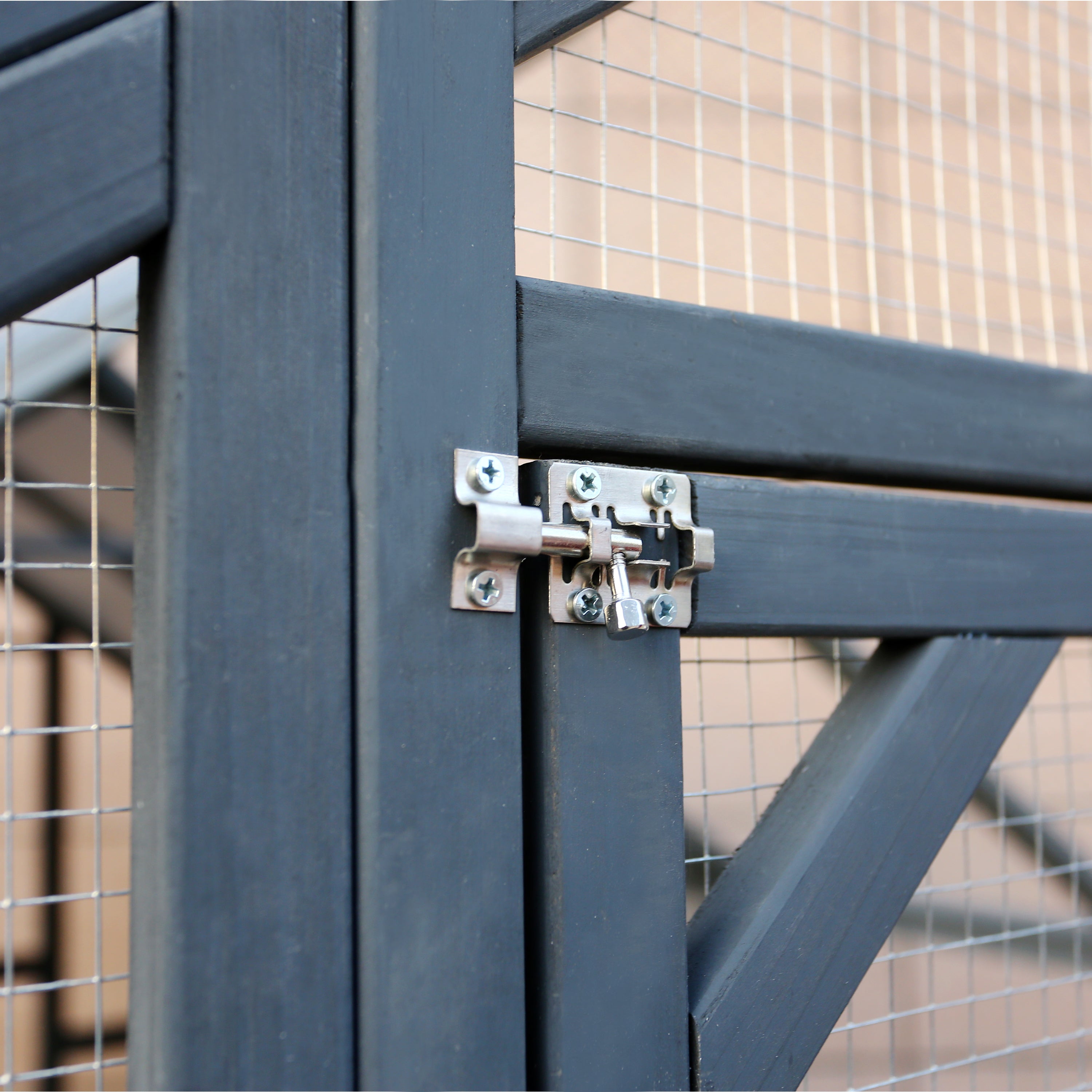 - Safety and Weather Protection Crafted with safety in mind, the galvanized wire mesh features a small 0.5' opening, while sliding bolt locks provide additional security. A removable waterproof roof cover shields your pets from wind and rain, keeping them safe and comfortable in any weather.