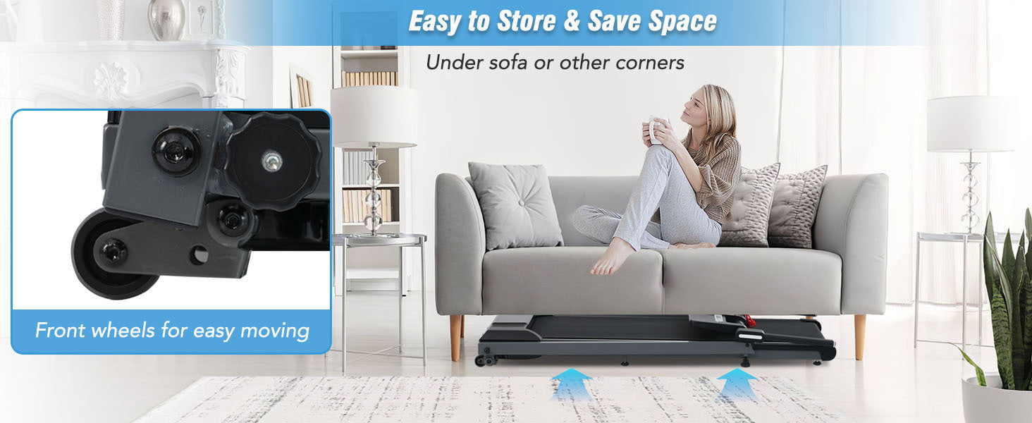 New Treadmill for Home - The lightweight, foldable design of this folding treadmill makes it easy to fold, move and store, perfect for walking, jogging and running at home/office/apartment, making it the perfect choice for home workouts. 2.5HP Powerful Motor - Featuring a powerful 2.5HP ultra-quiet motor that ensures stable operation of the machine and also provides a quiet movement environment. Adjustable speed of 0.5-7.5 mph, supports up to 265 lbs. capacity and operates at no more than 55 decibels. Larger Running Area - The 15.55' x 39.76' running belt provides plenty of space for exercise and a safer, more comfortable experience for your run. It's not just a regular treadmill either, it's also suitable for your family and pets. Fitness Tracking Display -- Our portable Treadmill is designed with a LED display to show speed, distance, time, and calories burned, allowing you to visualize your exercise and maintain motivation. You can control the speed or stop the treadmill by pressing the remote control. Protect Your Knees -- 5 layer anti-slip belt of this desk treadmill is designed to absorb the force of your step, to protect your joints and ligaments from damage. Manual Incline Without Tools: Effortlessly activate adjust incline in just 2 seconds. Compared to regular walking pad, its 3% incline design enhances fat-burning efficiency by up to 30%! Tested for short workouts during work or home breaks, it provides a simulated hill-like exercise experience, effectively shapes the glutes and legs.