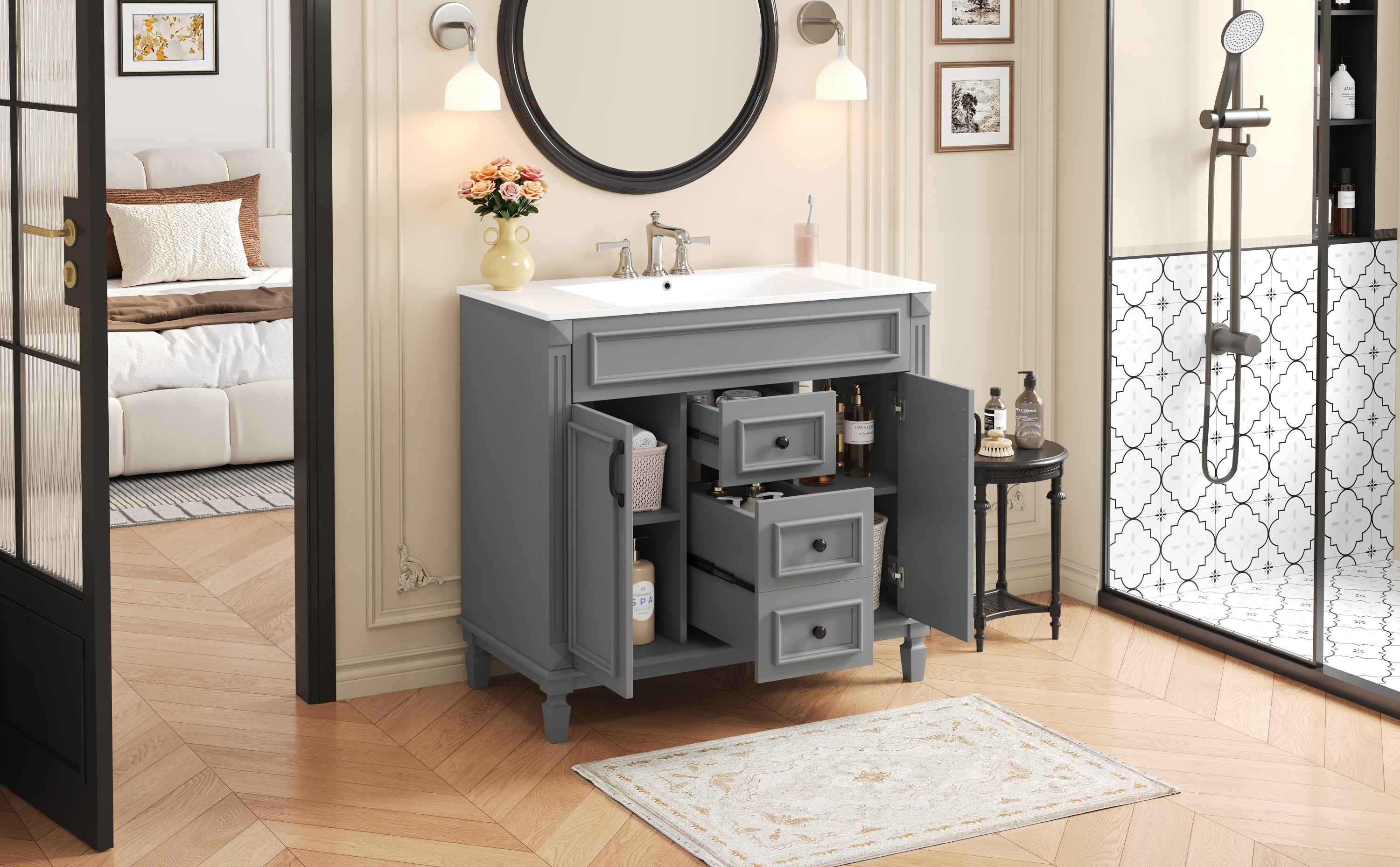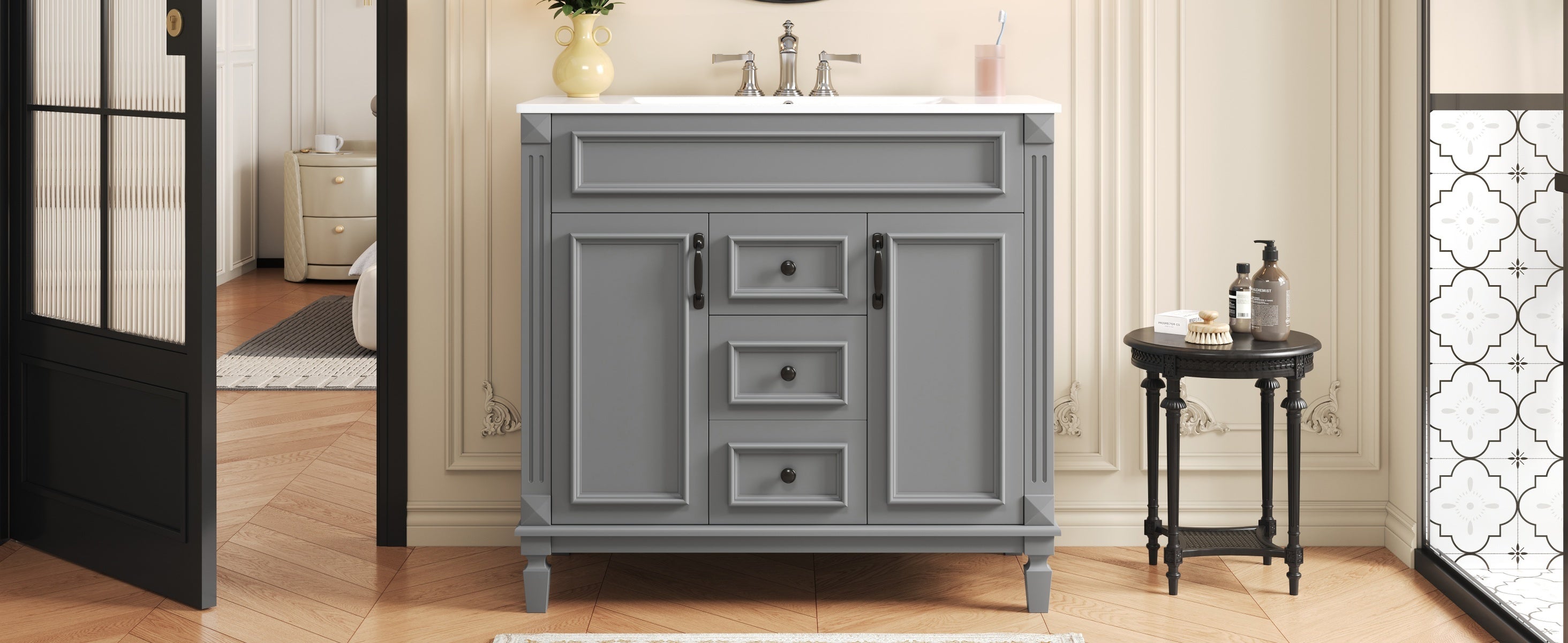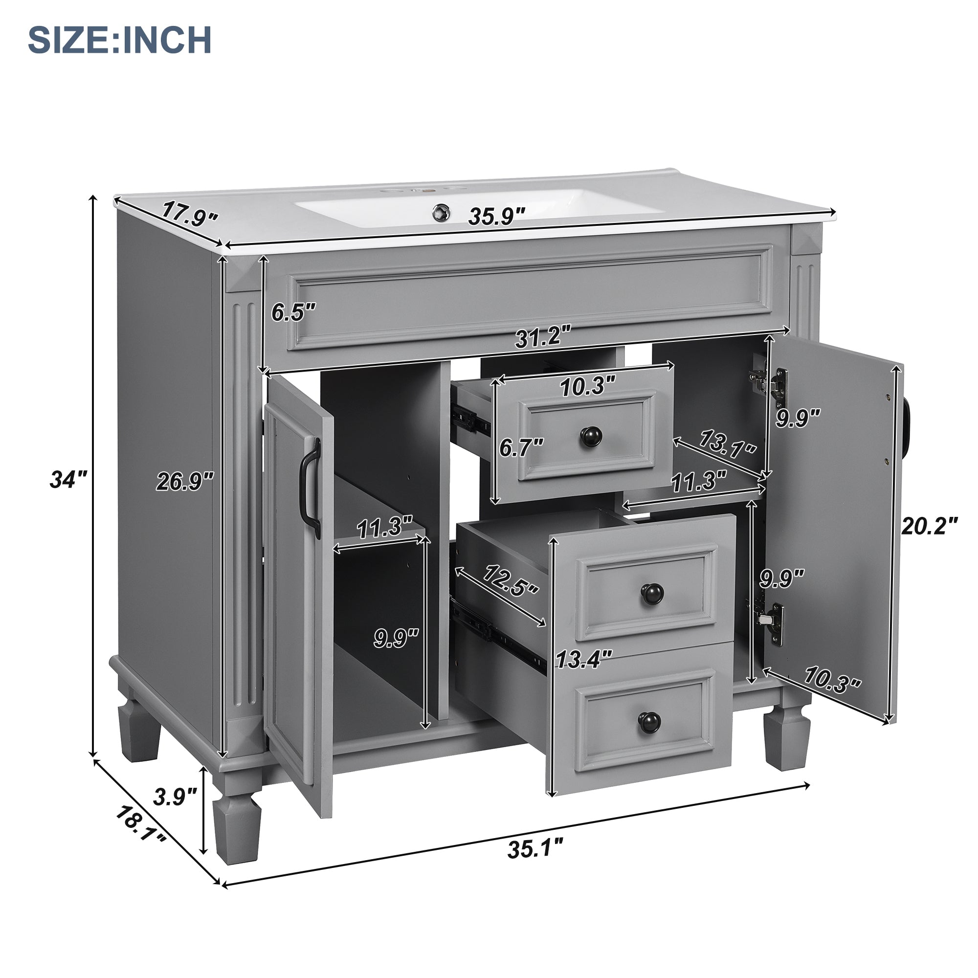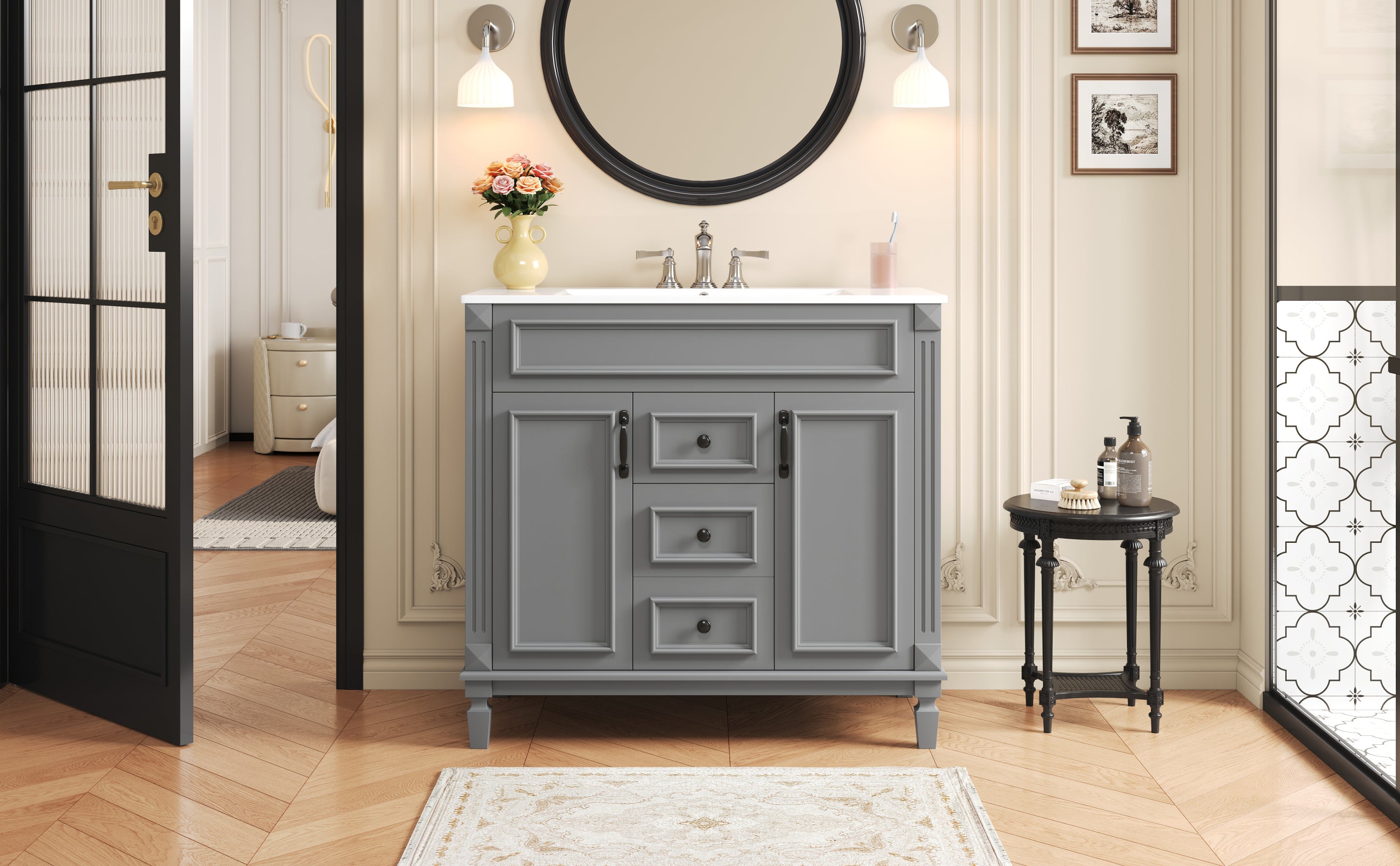 36'' Bathroom Vanity with Top Sink, Modern Bathroom Storage Cabinet with 2 Soft Closing Doors