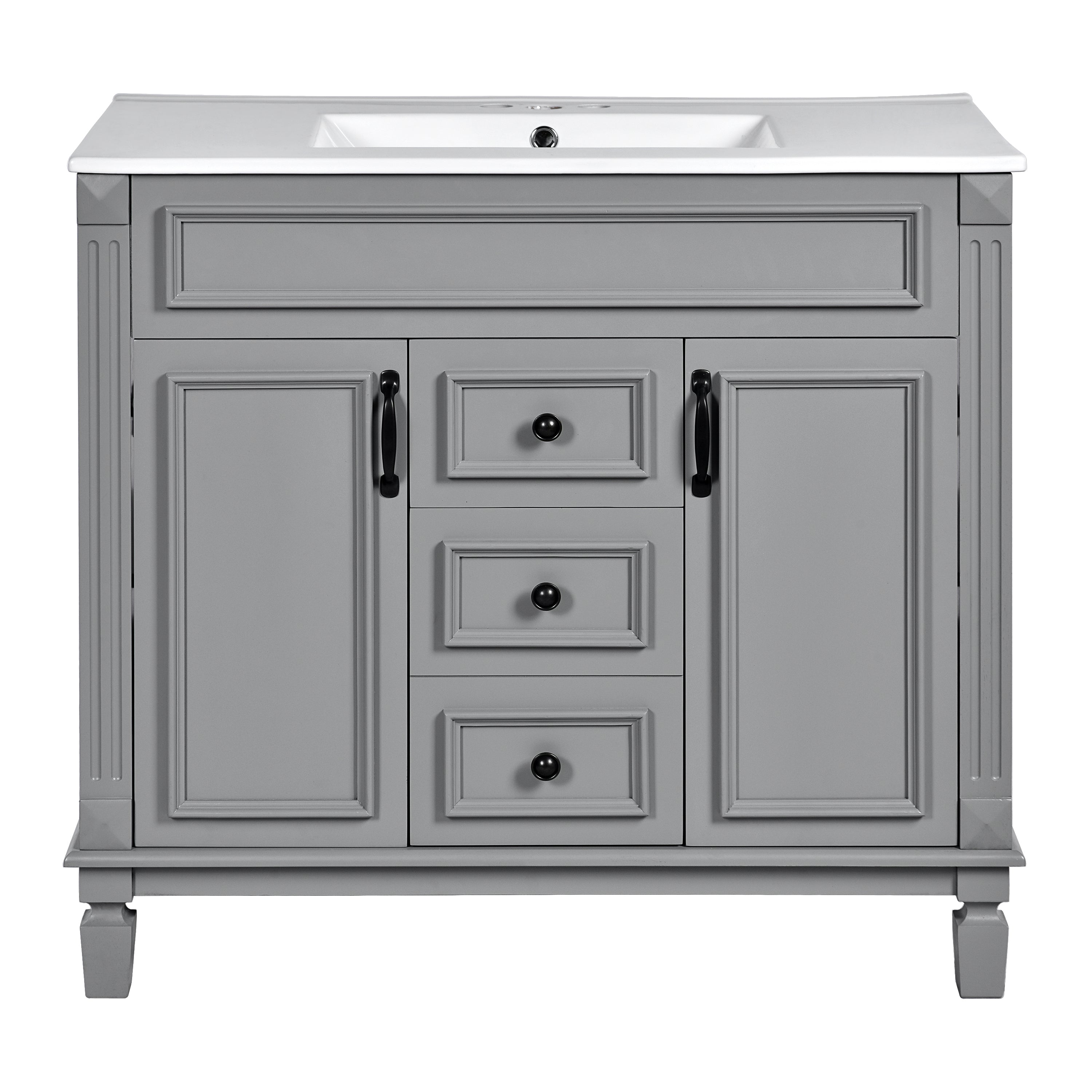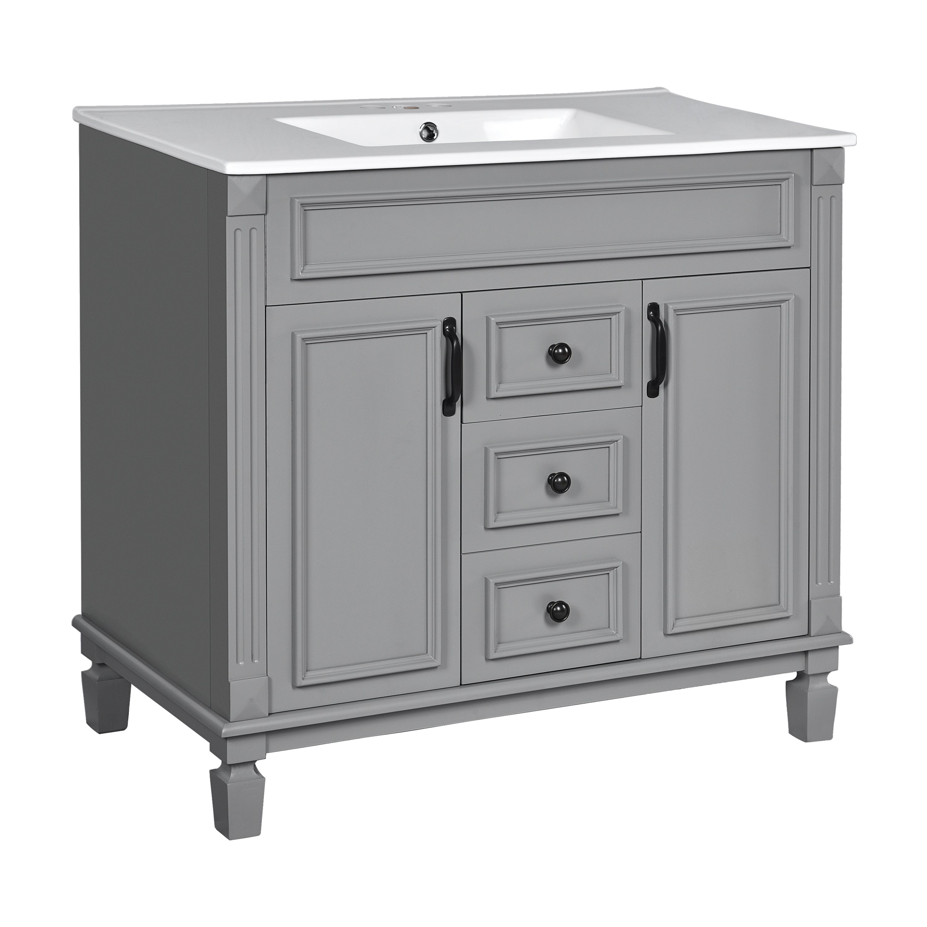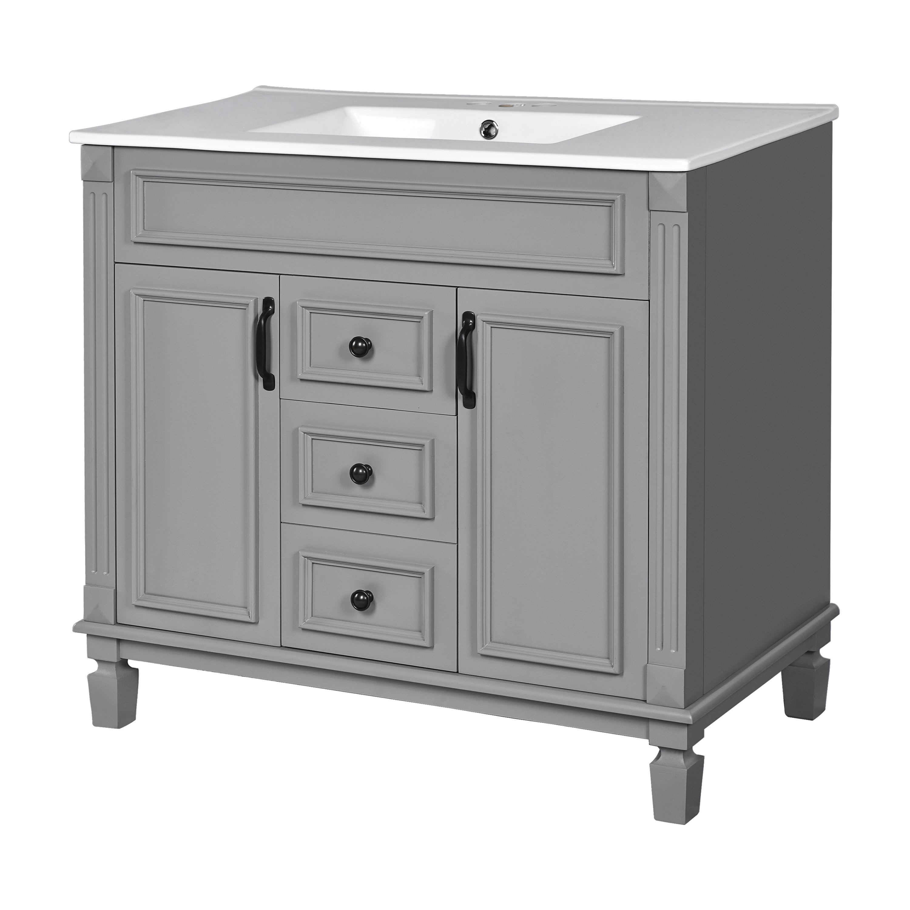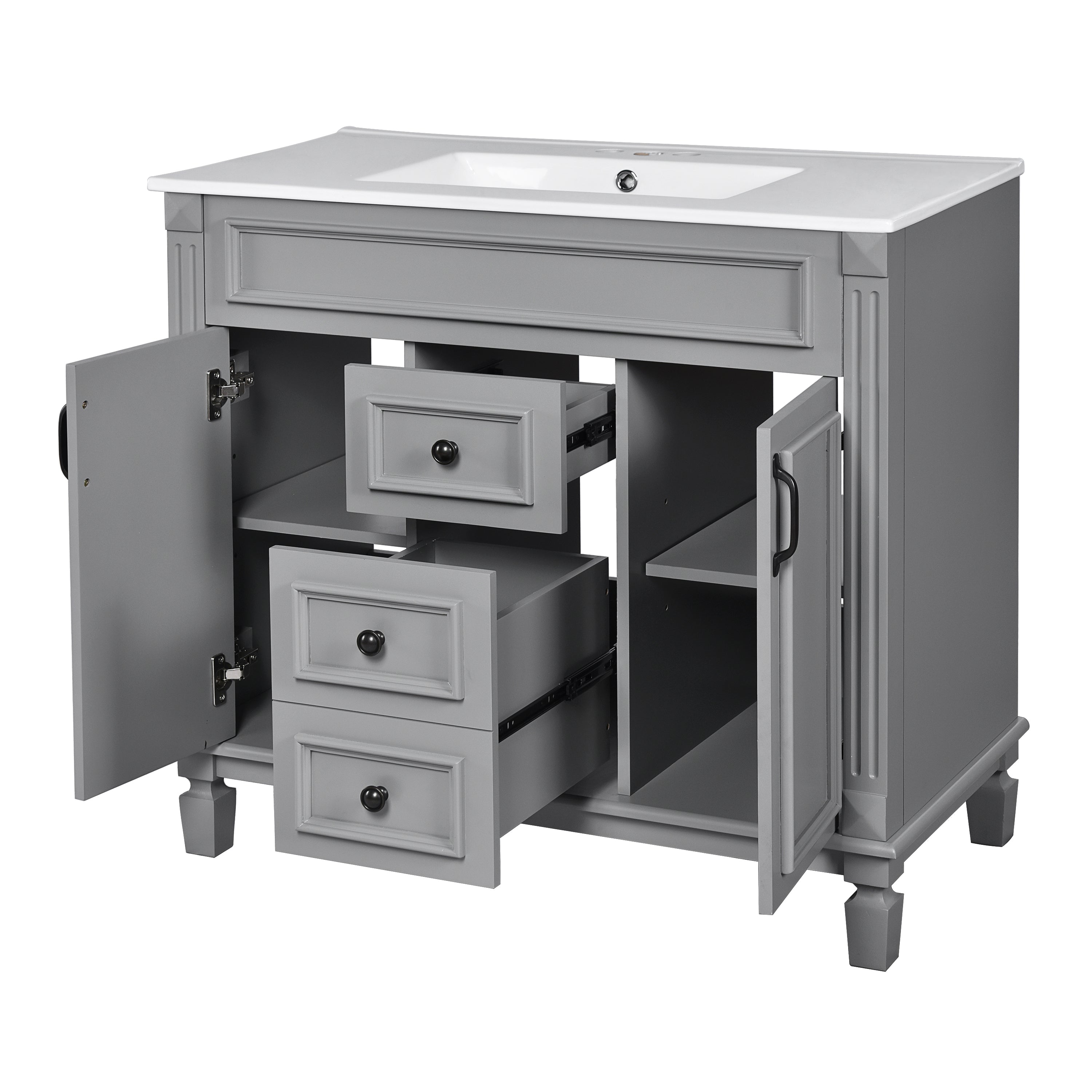 36'' Bathroom Vanity with Top Sink, Modern Bathroom Storage Cabinet with 2 Soft Closing Doors