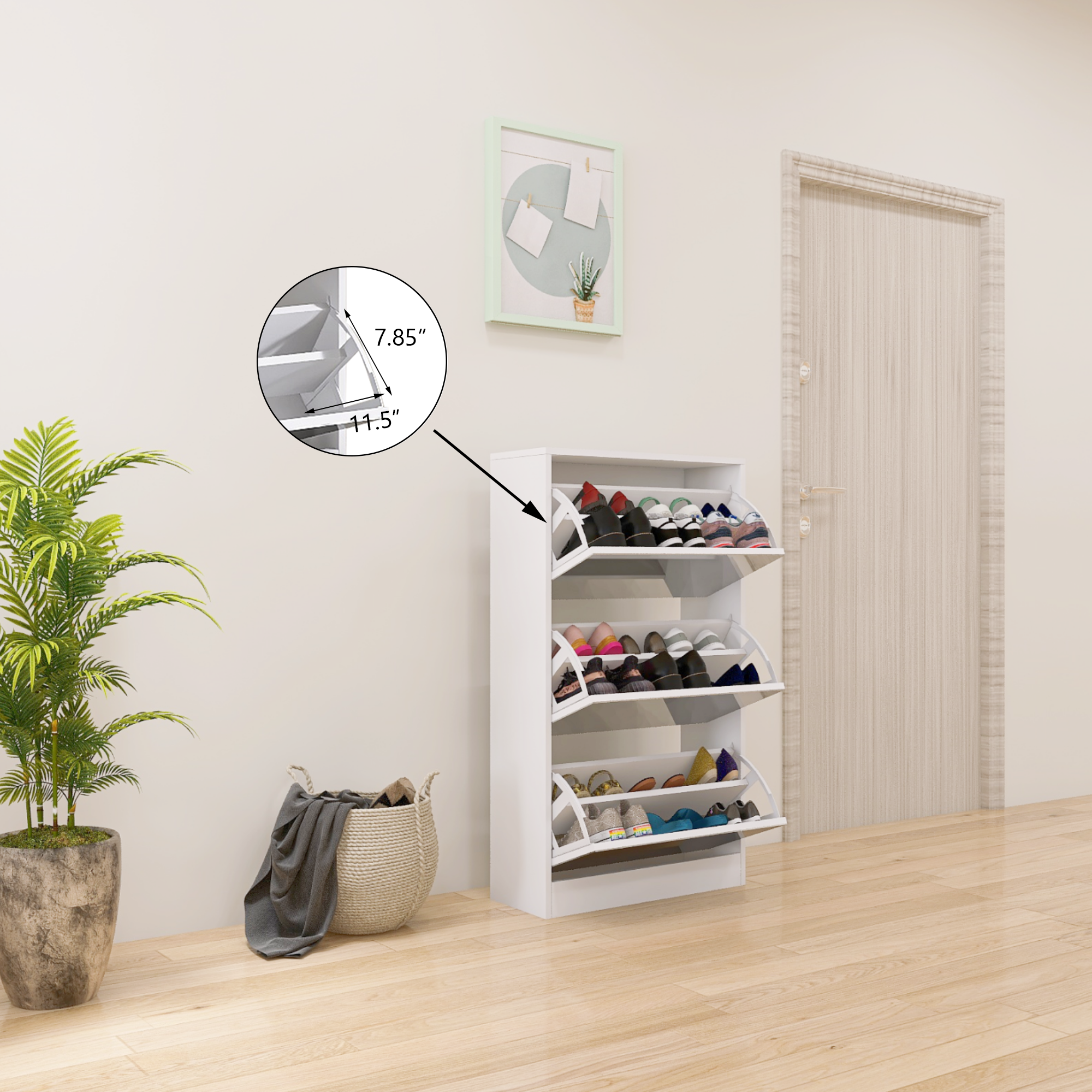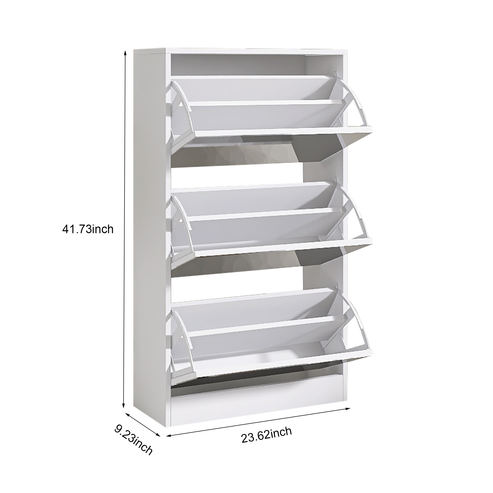 Slender white mirror shoe cabinet, a three-layer wooden shoe organizer