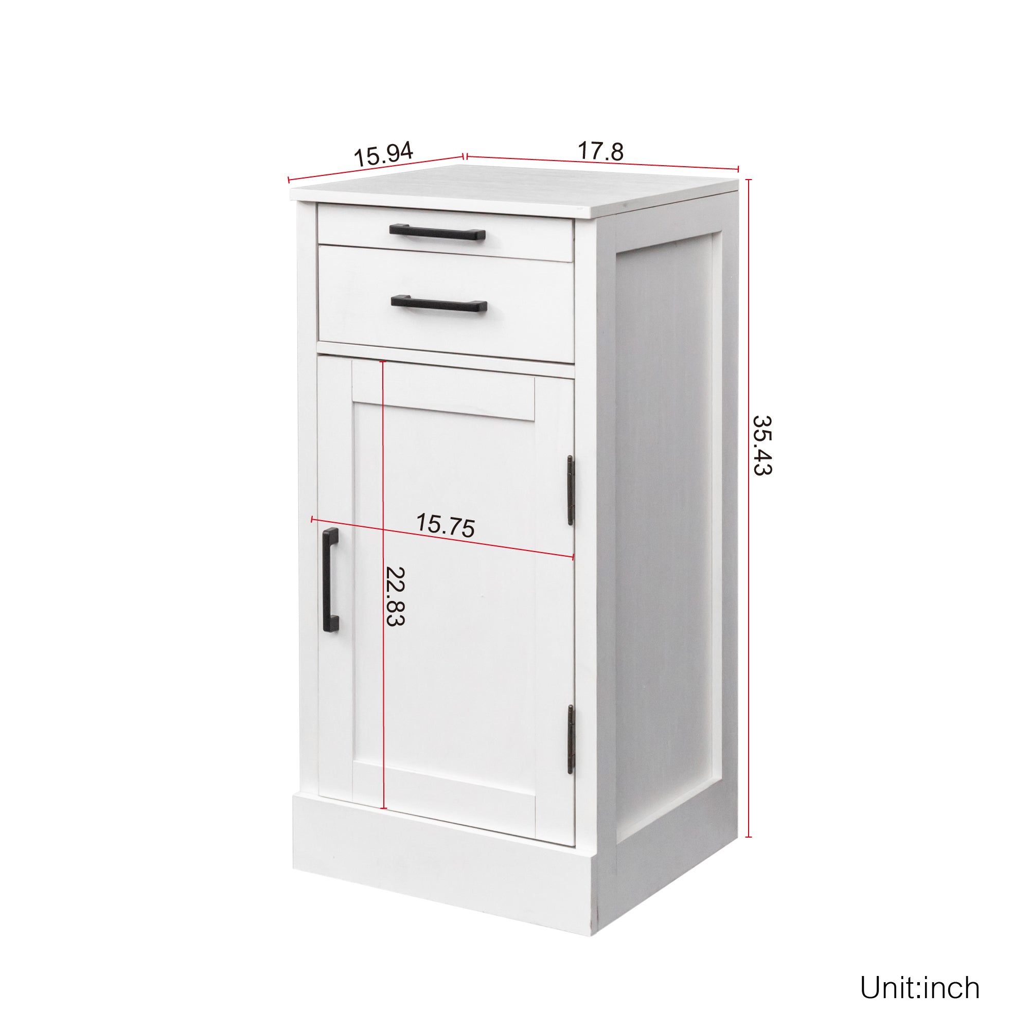 The cabinet provides spacious single drawer for your accessories, storage shelf and a cupboard. You can used it as storage cabinet and wine cabinet in the living room to display crafts, books,wine,wine glass and decorations, Or just as bookcase in the office to store files and magazines... Take advantage of its large capacity to keep the bedroom, living room, hallway or study away from chaos.Dimensions: 17.80'L x 15.95'W x 35.43'H .Material:Material is 15mm particle bpard,back board is 3mm MDF.