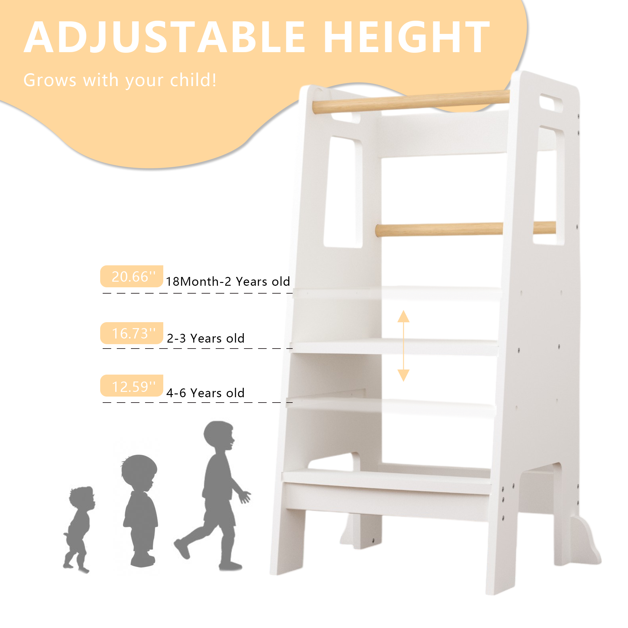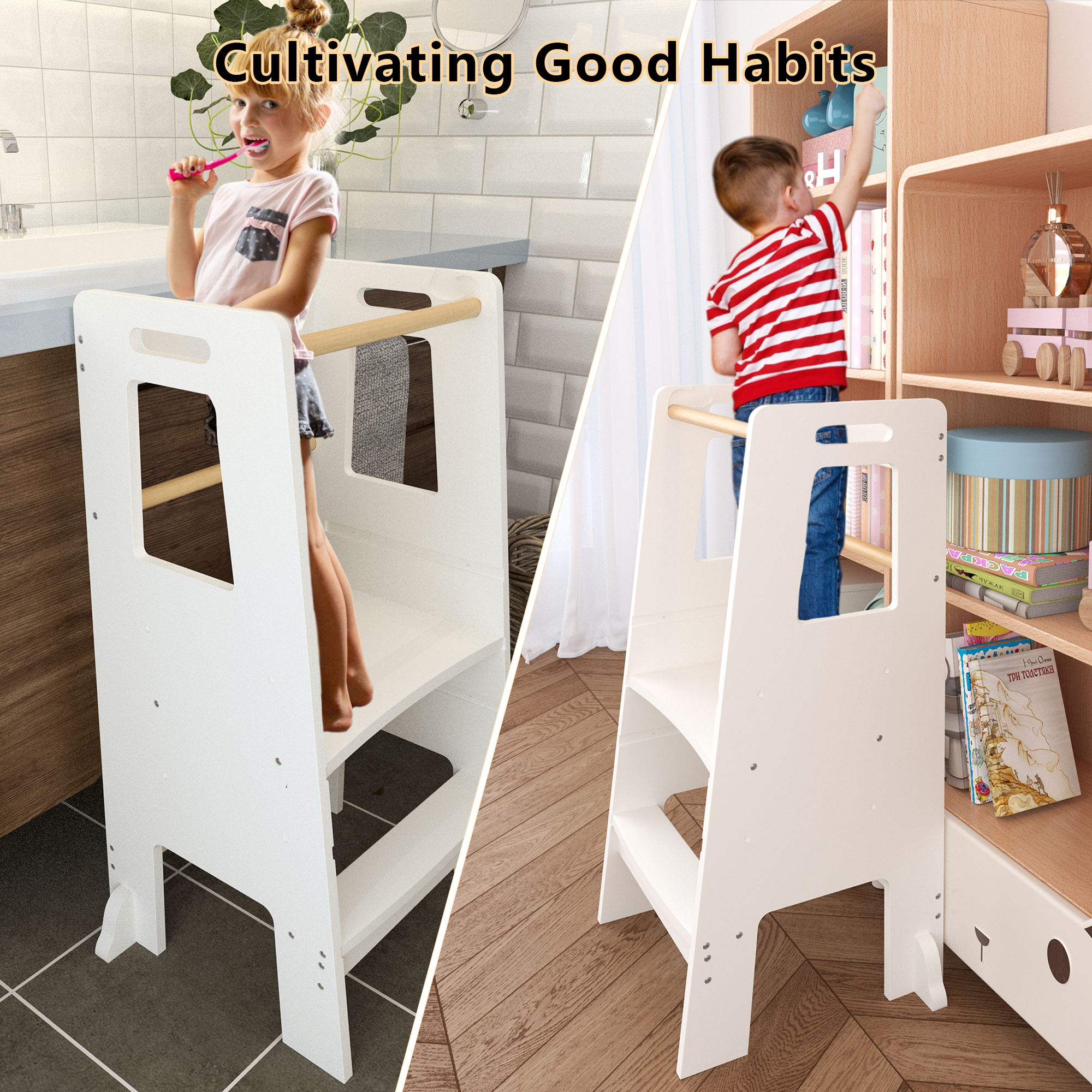 · Not only is "standing assistance stool", but also is "handwashing stool" to help children reach the washbasin; As a "kitchen observation stool", it allows children to safely watch their parents cook. Serve as a "bookshelf stool" to help children carry the upper layer of picture books. Even as a "play stool", children can sit on the steps to play jigsaw puzzles or read picture books. One stool is suitable for multiple scenarios such as bathrooms, kitchens, and children's rooms.