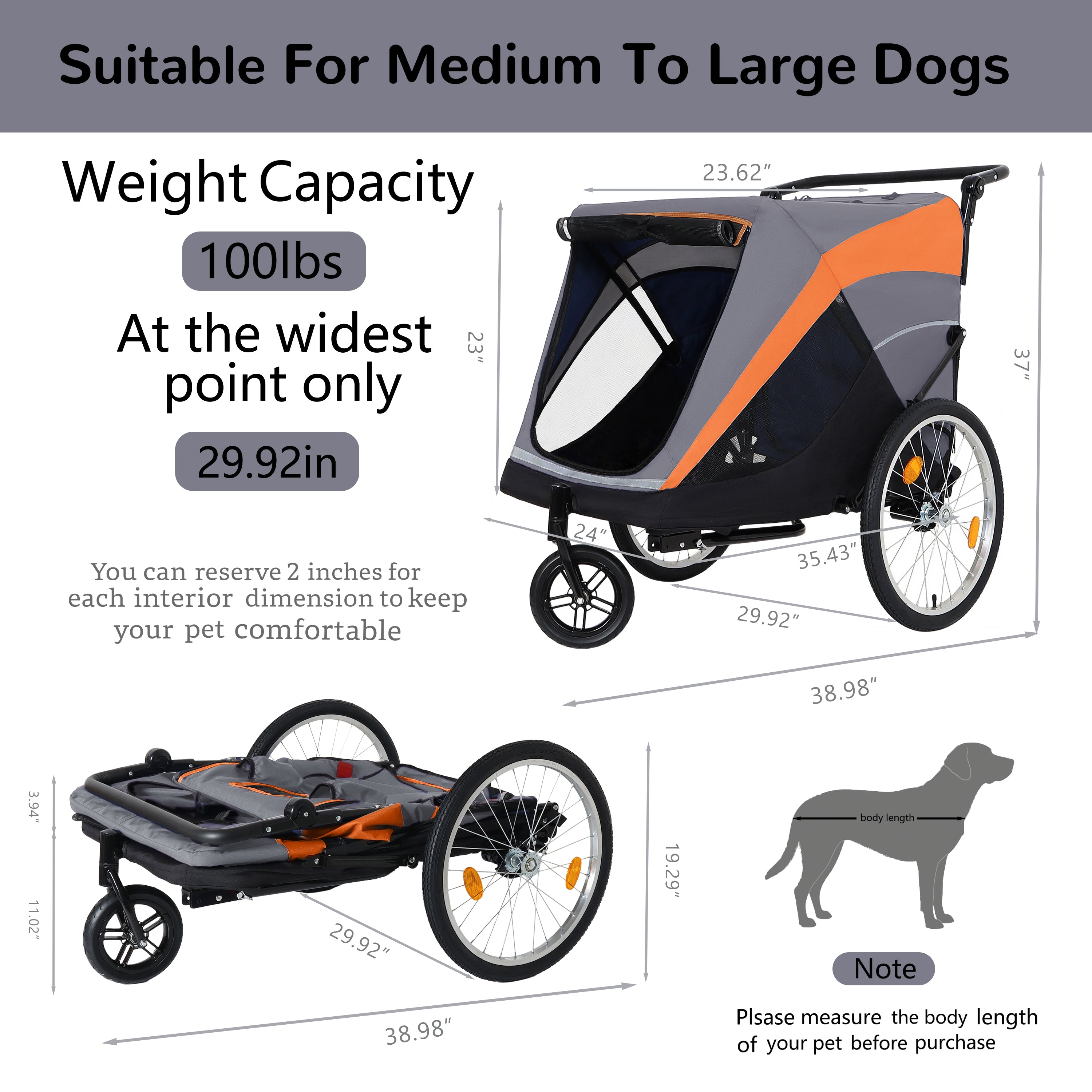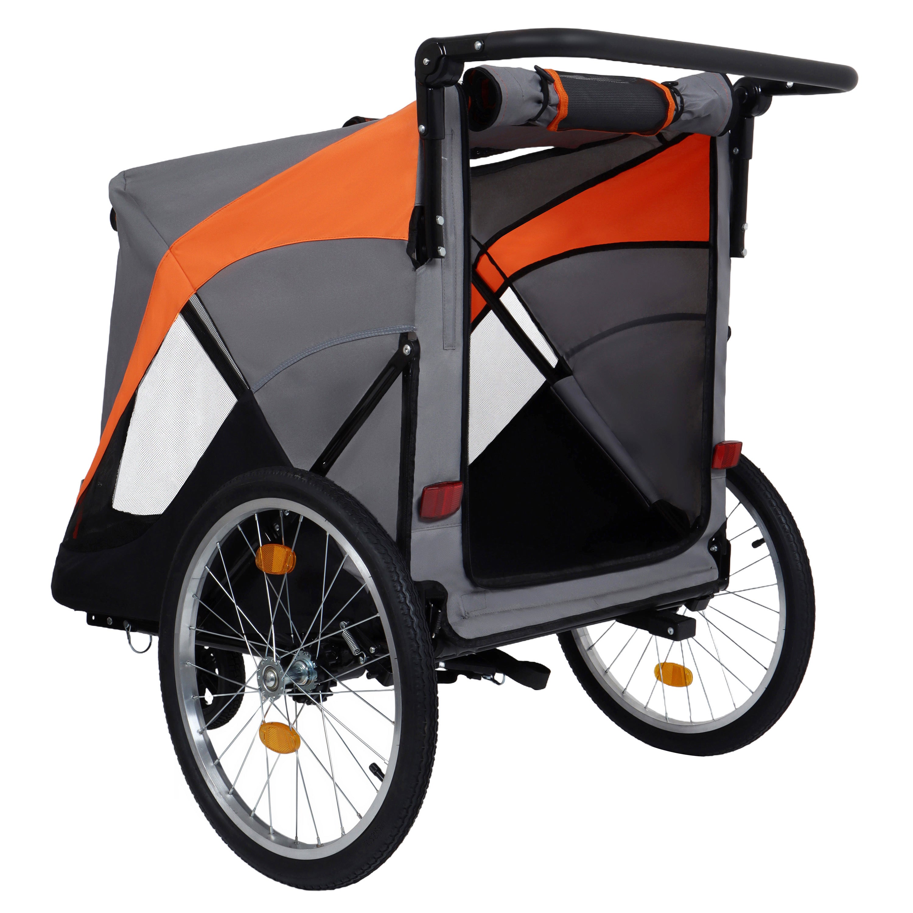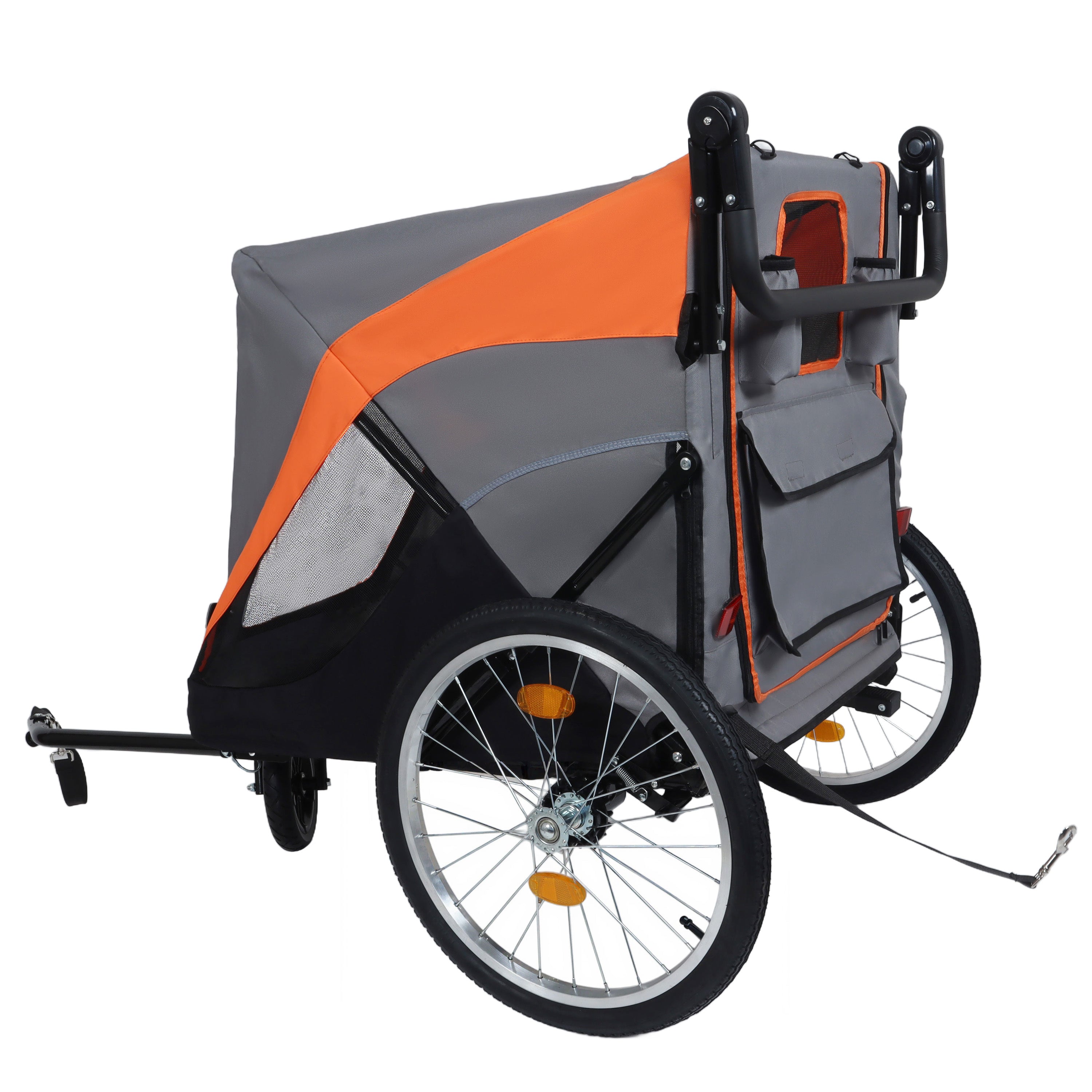 Detachable 2-in-1 pet bicycle trailer and stroller(Black+Grey,Orange)