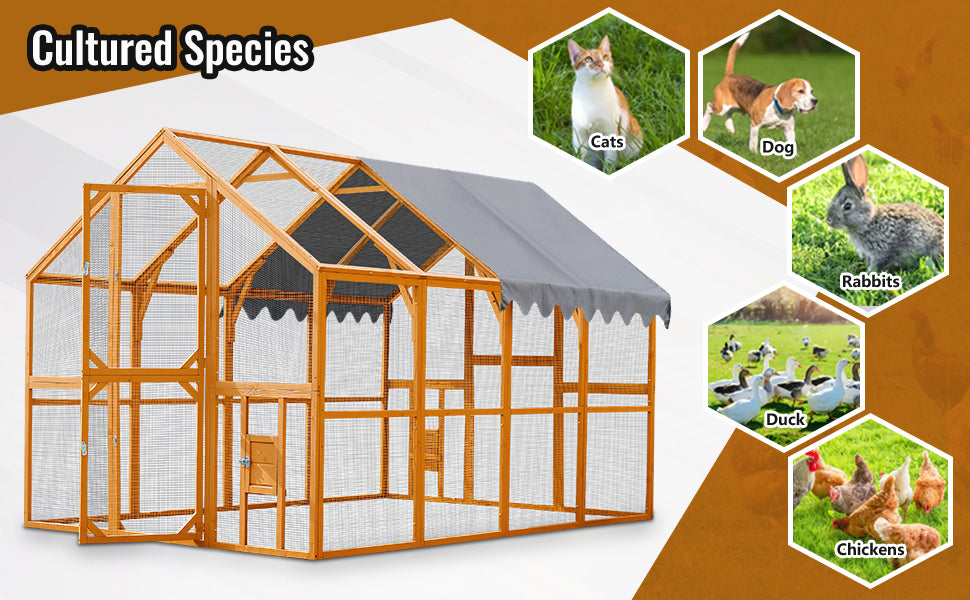 - 【Waterproof Cover】 Chicken run with removable waterproof cover provide a dry and comfortable space for your pets at wind & rainy Day.