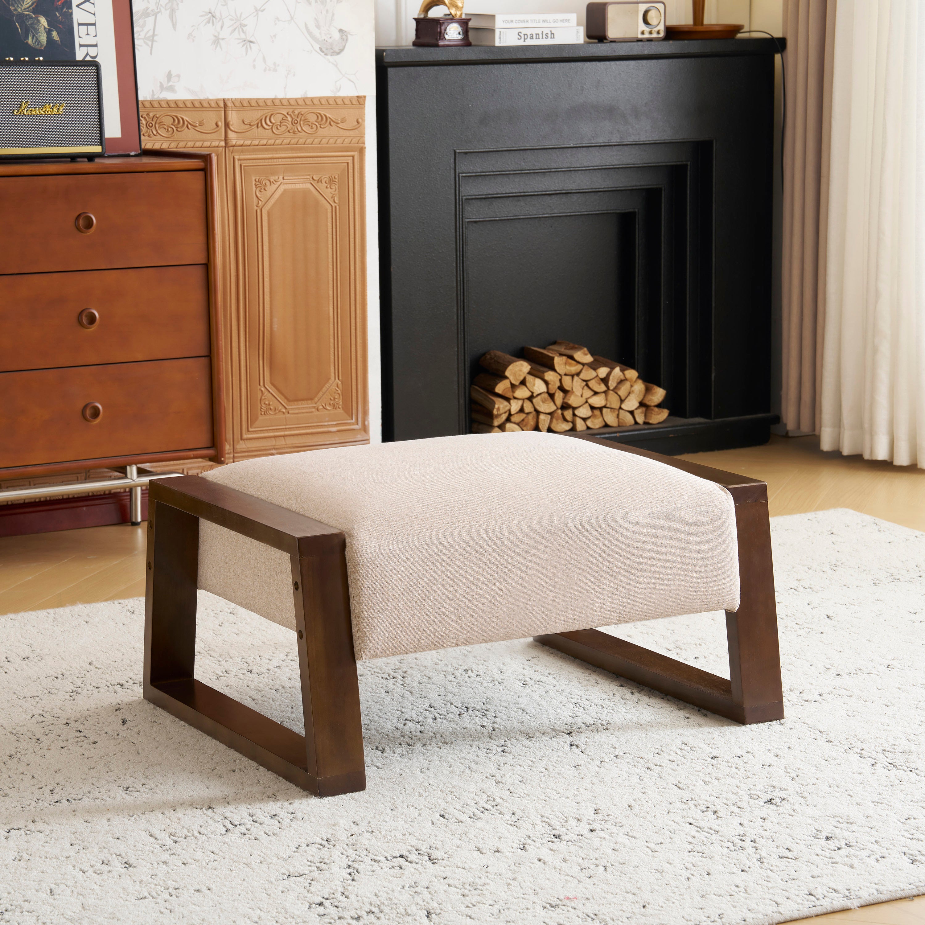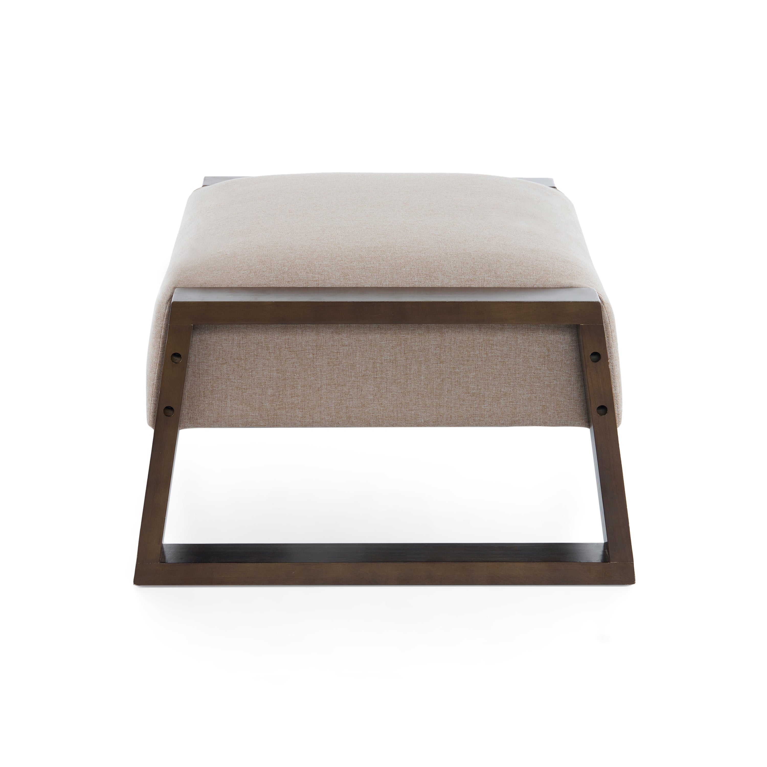 - Built with a reliable frame and brown rubberwood legs, this ottoman is designed to withstand heavy use. The legs are not only strong but also enhance the overall stability, ensuring a safe and secure seating or footrest option. With a maximum weight capacity of 300 pounds, it can accommodate different body weights without compromising its structural integrity.