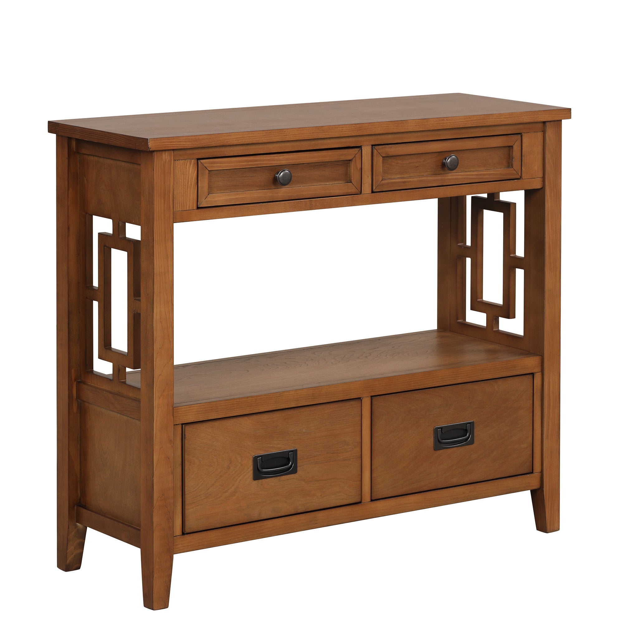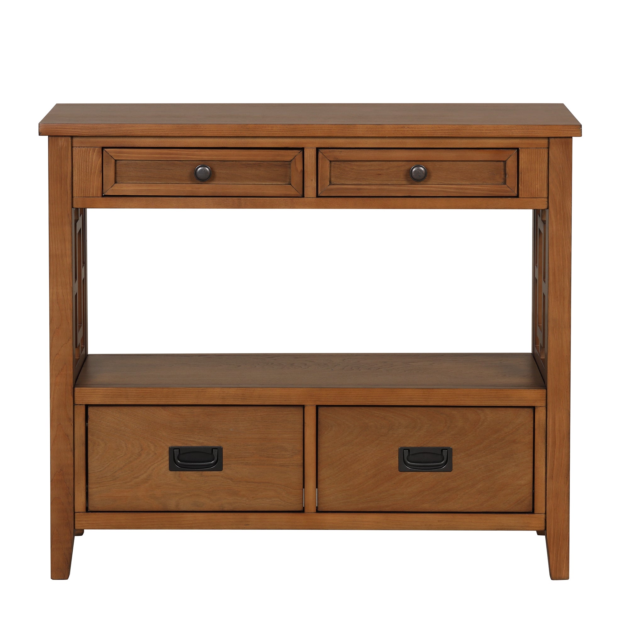 Sincerely recommend this console table to you for the following reasons: Bring a retro vibe to your modern life. Solid pine and high-quality MDF material ensure the table will last longer. There are two drawers on the top and two on the bottom to keep your daily essentials organized. the spacious shelf provides a suitable place for your decorations, baskets. The four drawers are equipped with 2 different handles - retro round handle and modern hidden handle, giving you a different experience.