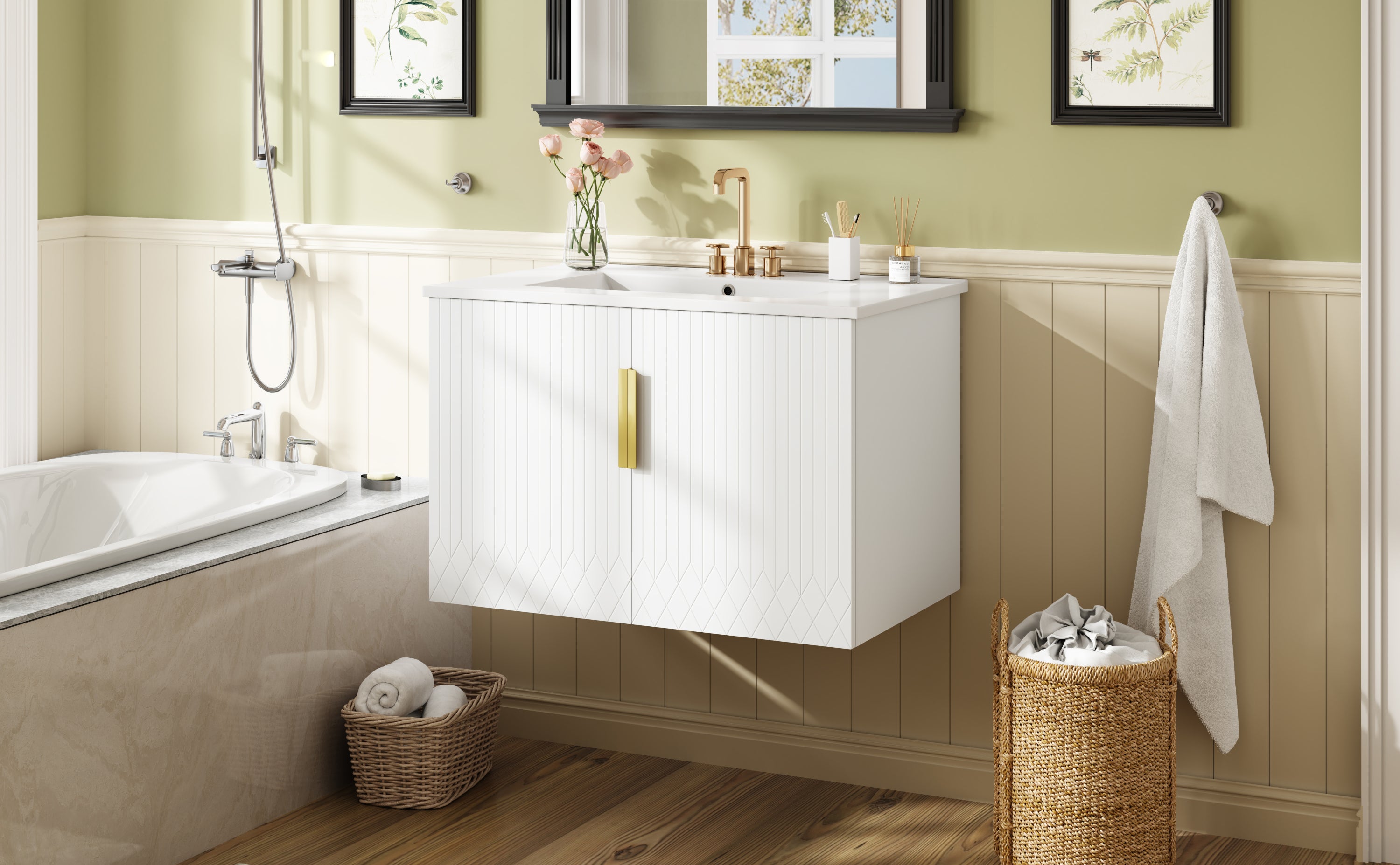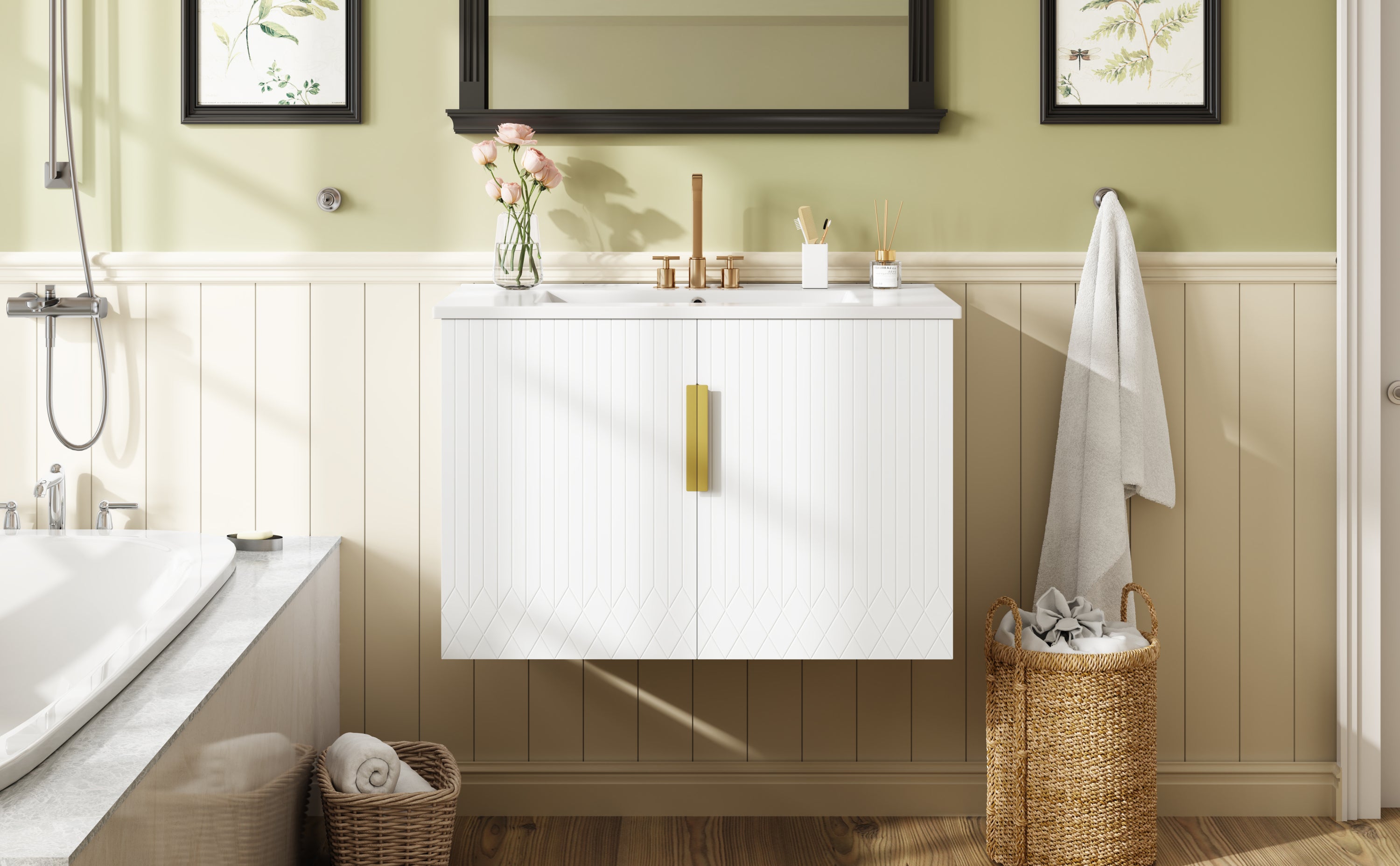 - [Premium Construction for Longevity] Crafted from high-quality MDF and solid wood, this bathroom vanity ensures exceptional durability. The scratch-resistant finish and premium hardware combine sturdiness with an elegant aesthetic.
